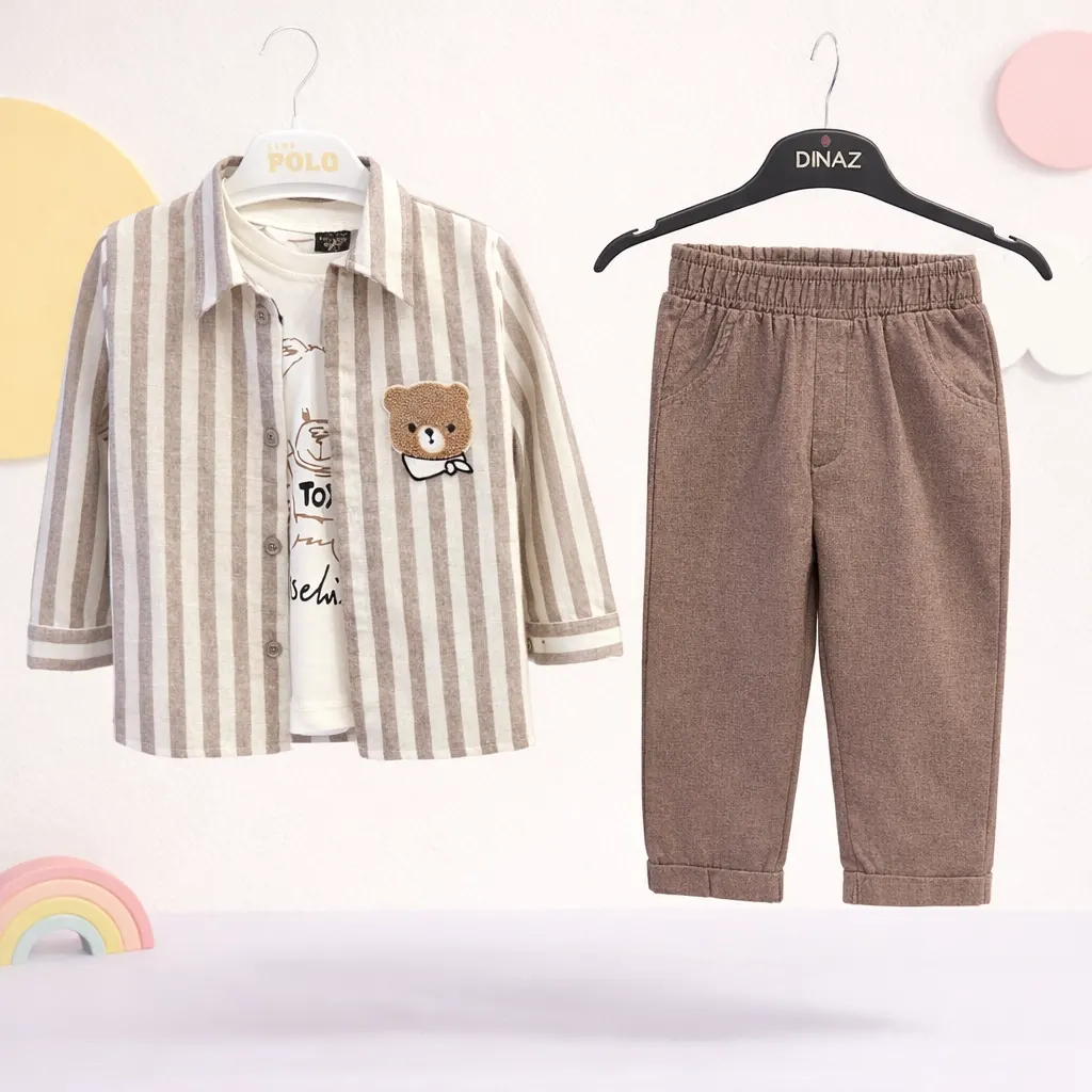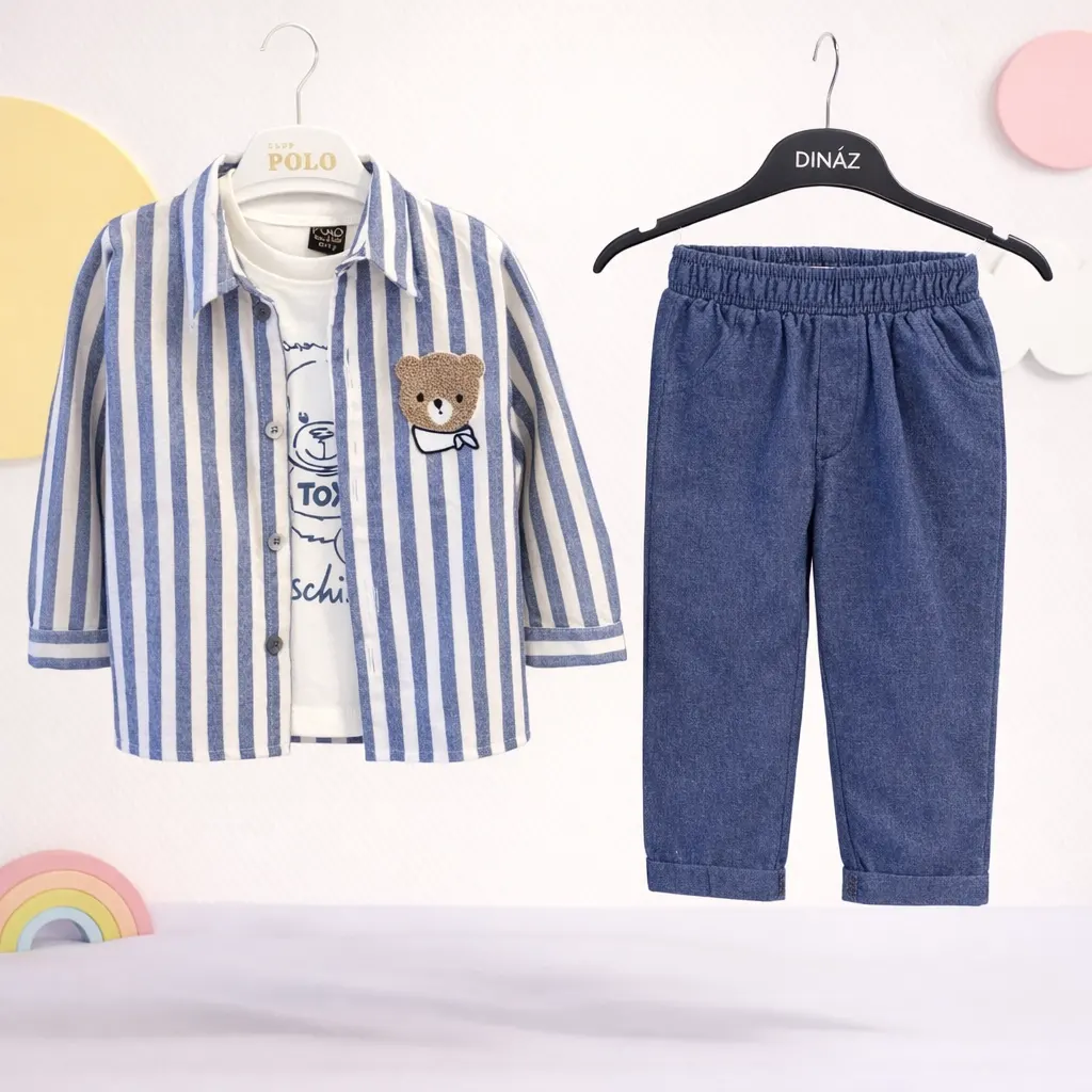Çizgili Ayıcık Gömlek Üçlü Takım 9/24 Ay