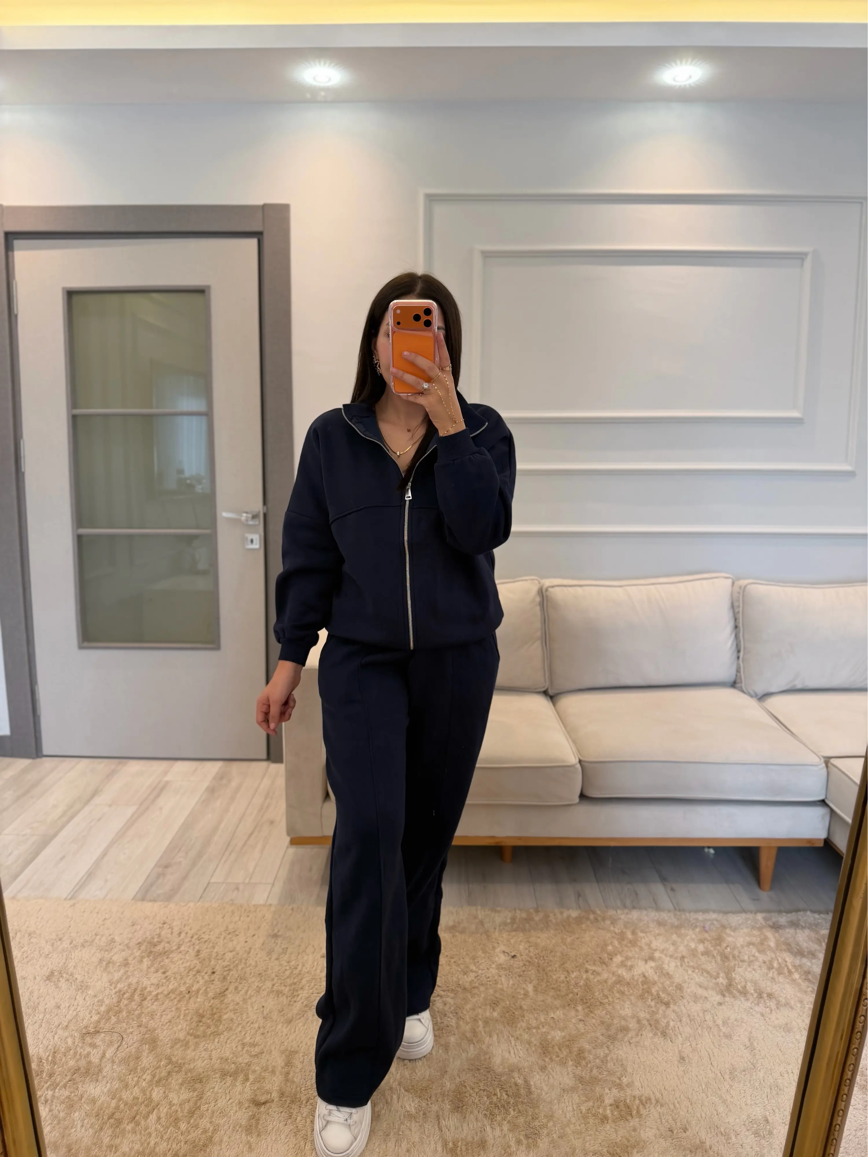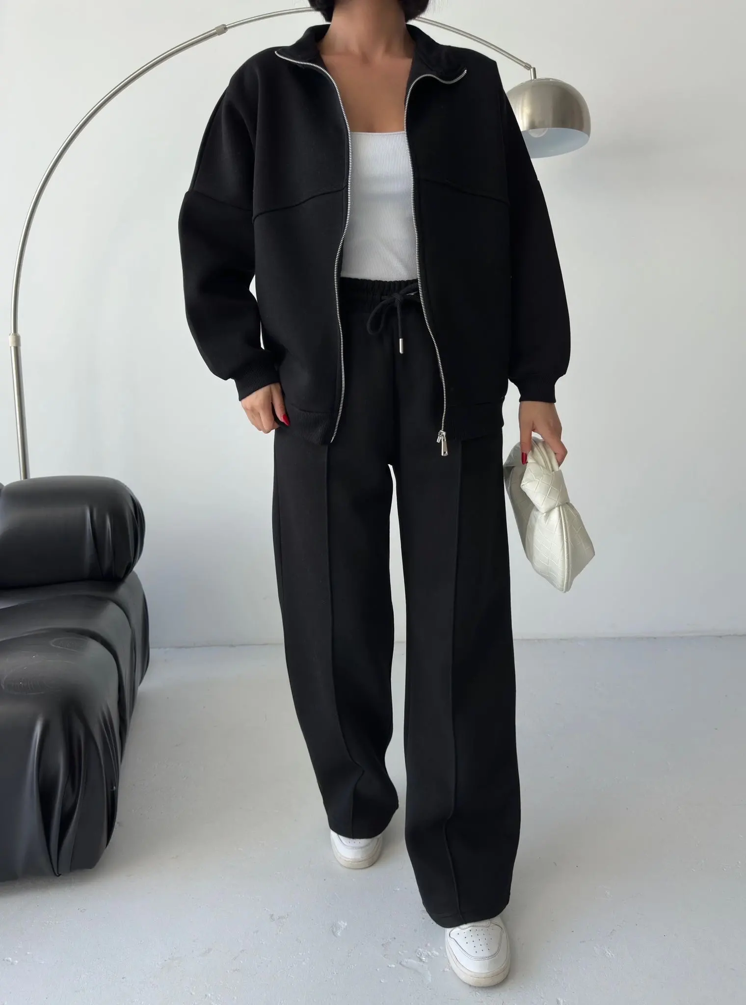 Crov Üç İplik Fermuarlı Sweatshirt Ceket Eşofman Takım