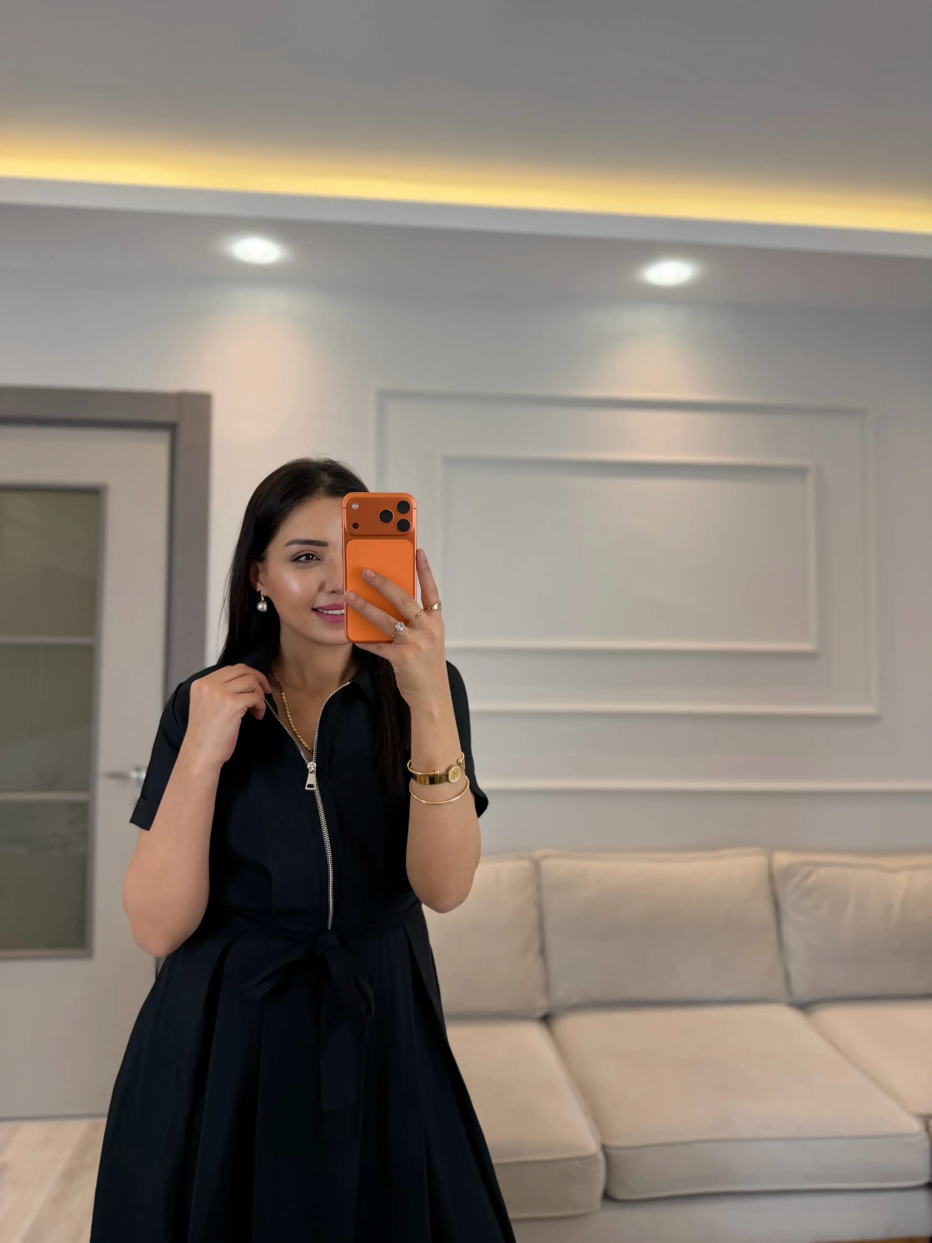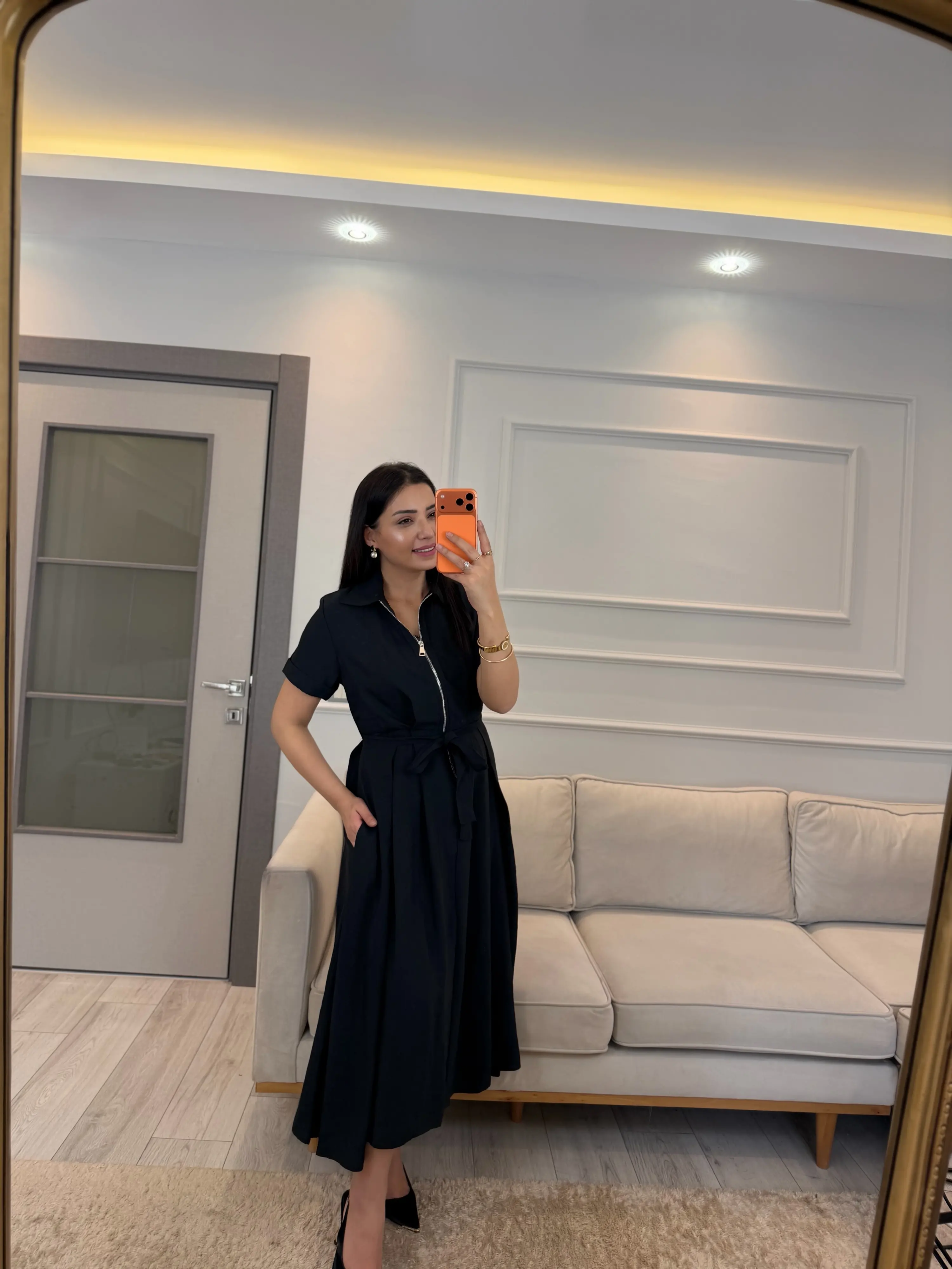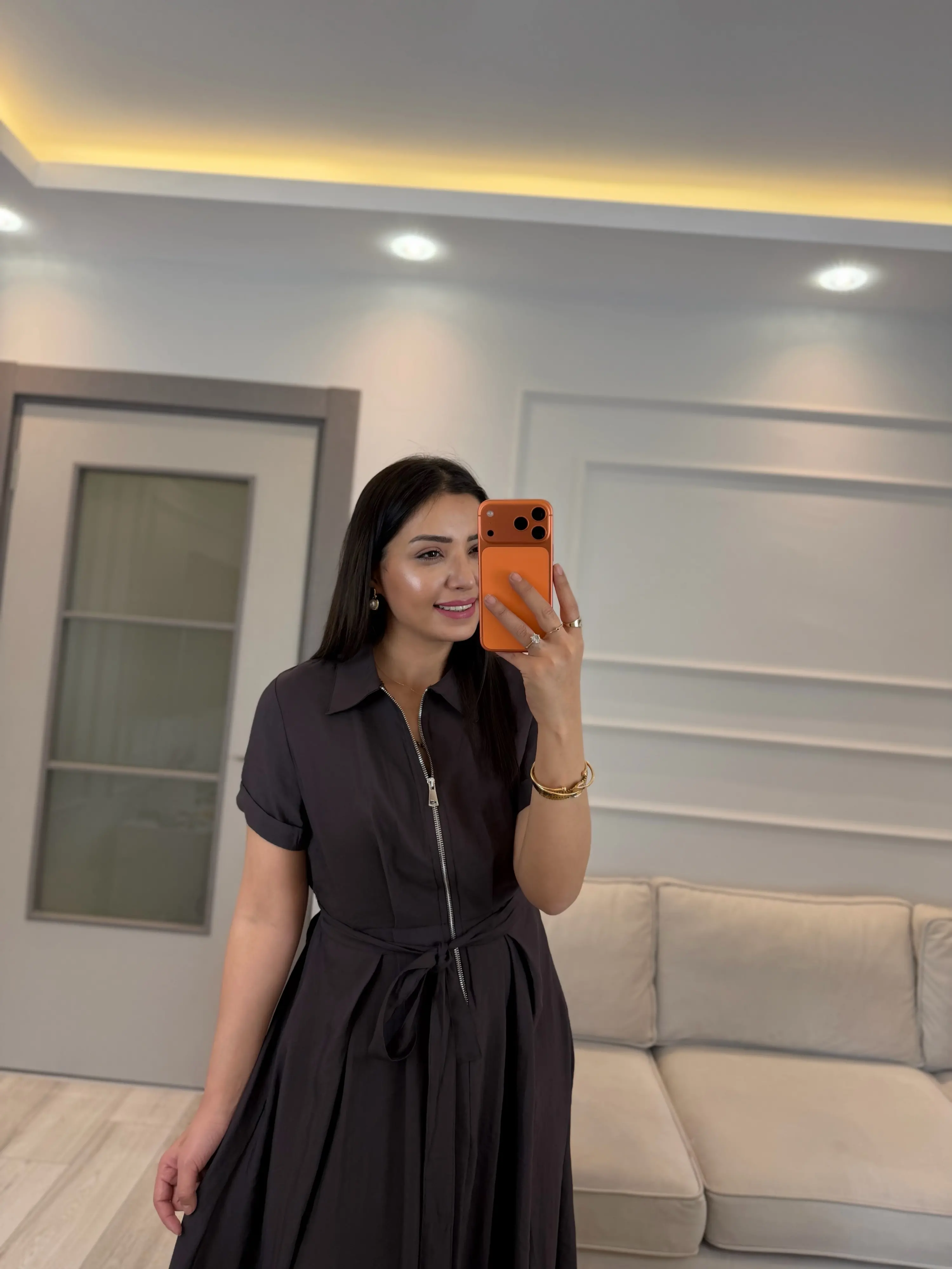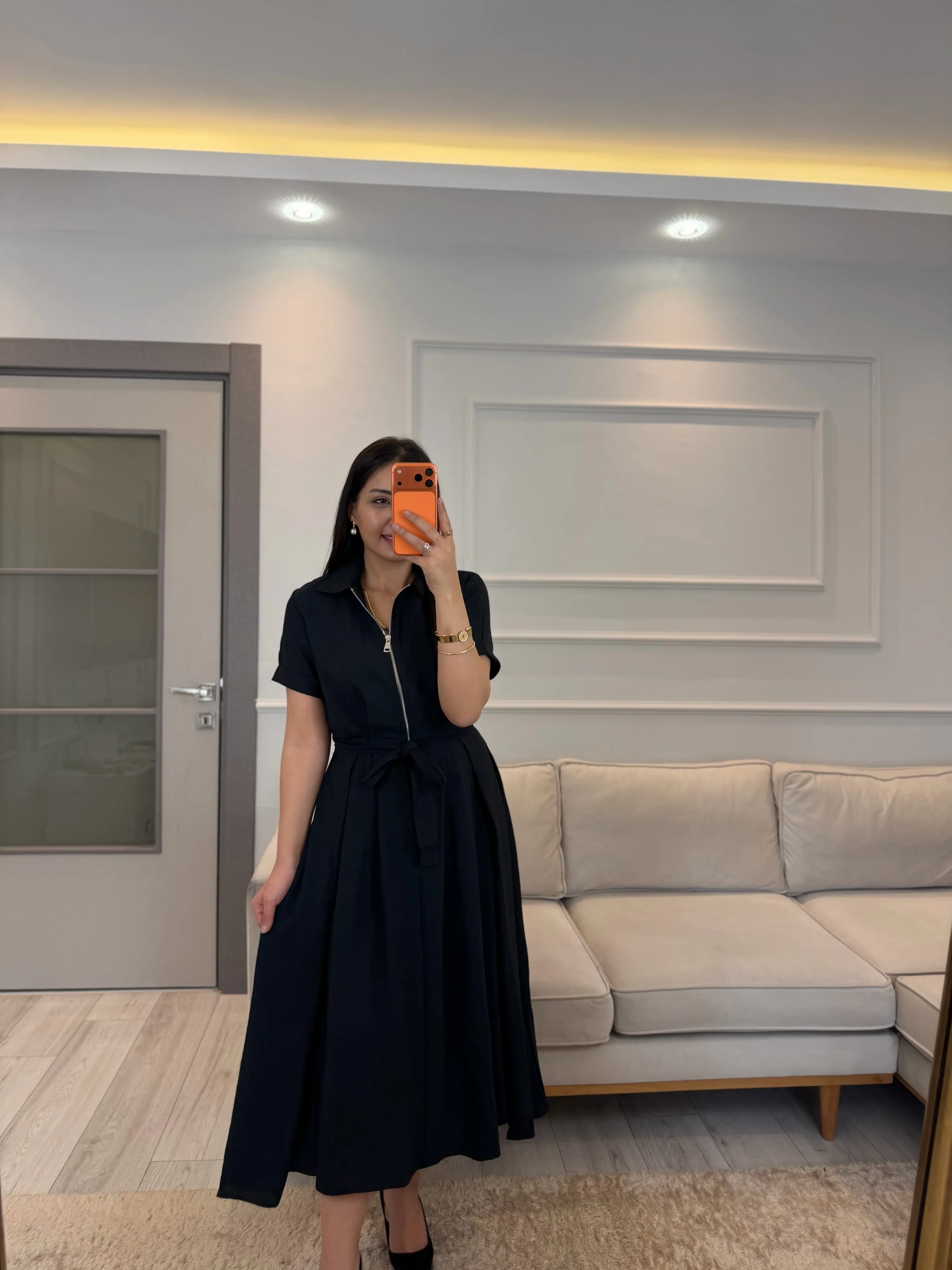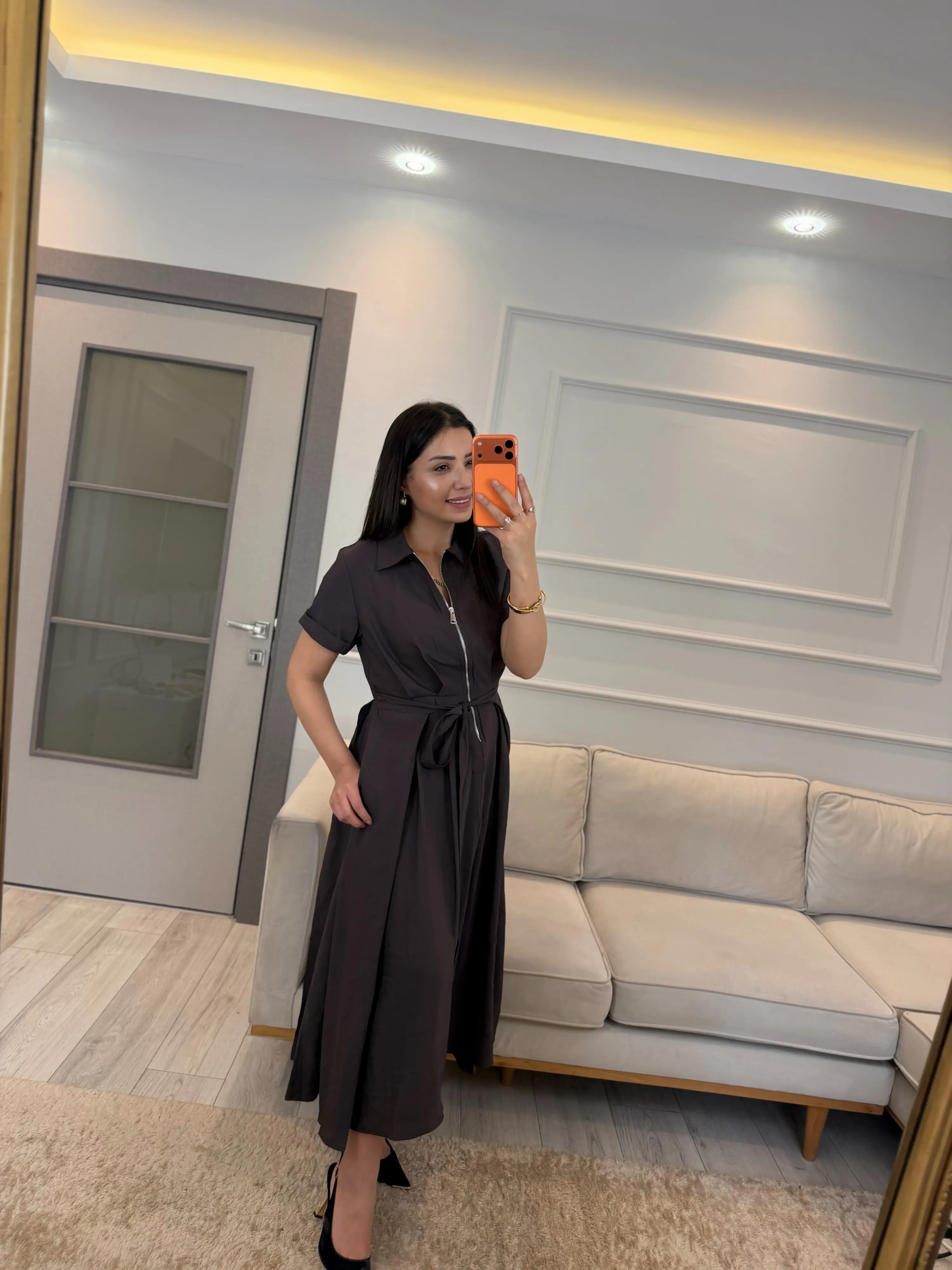Fermuar Detaylı Bağlamalı Elbise