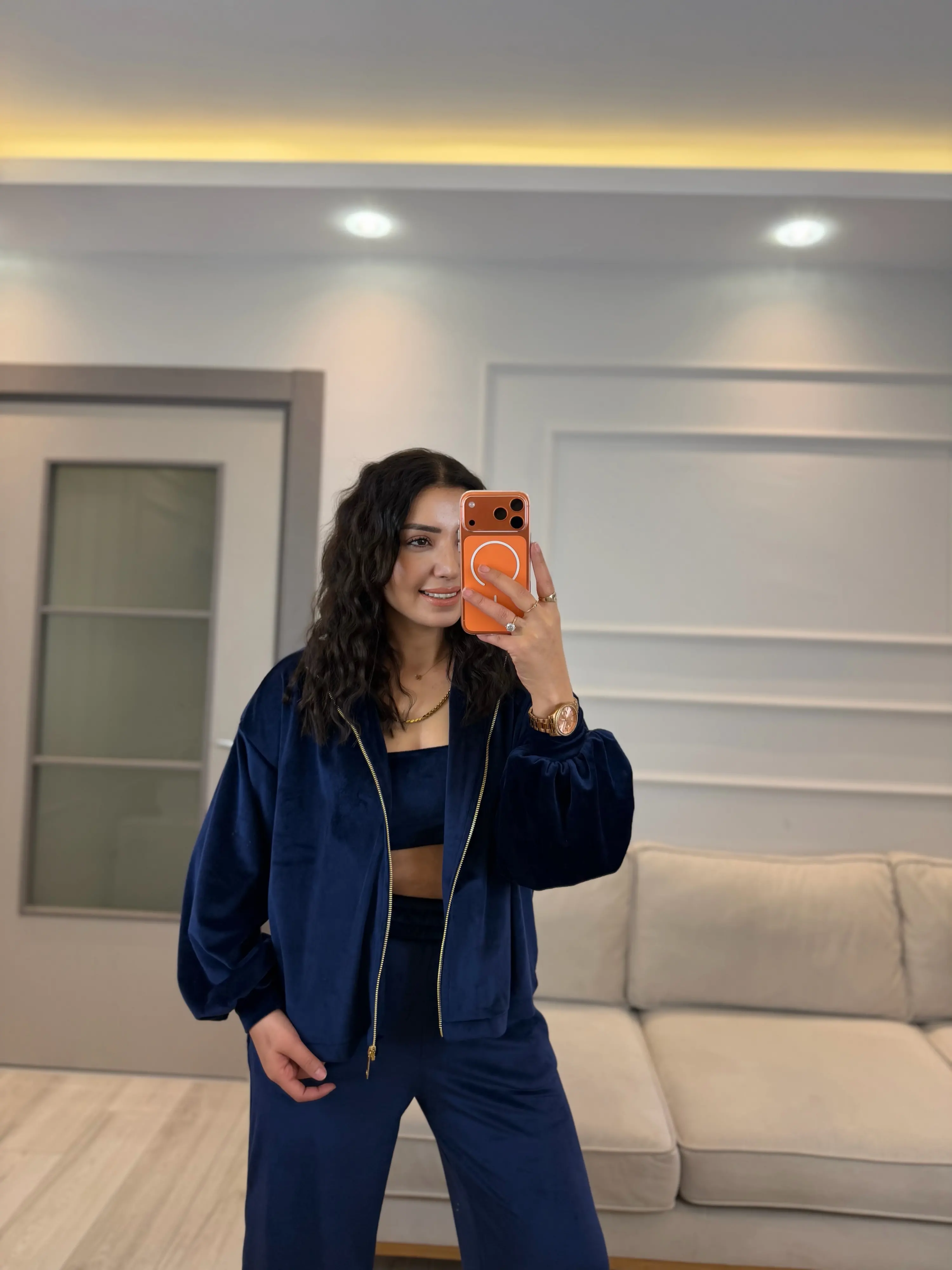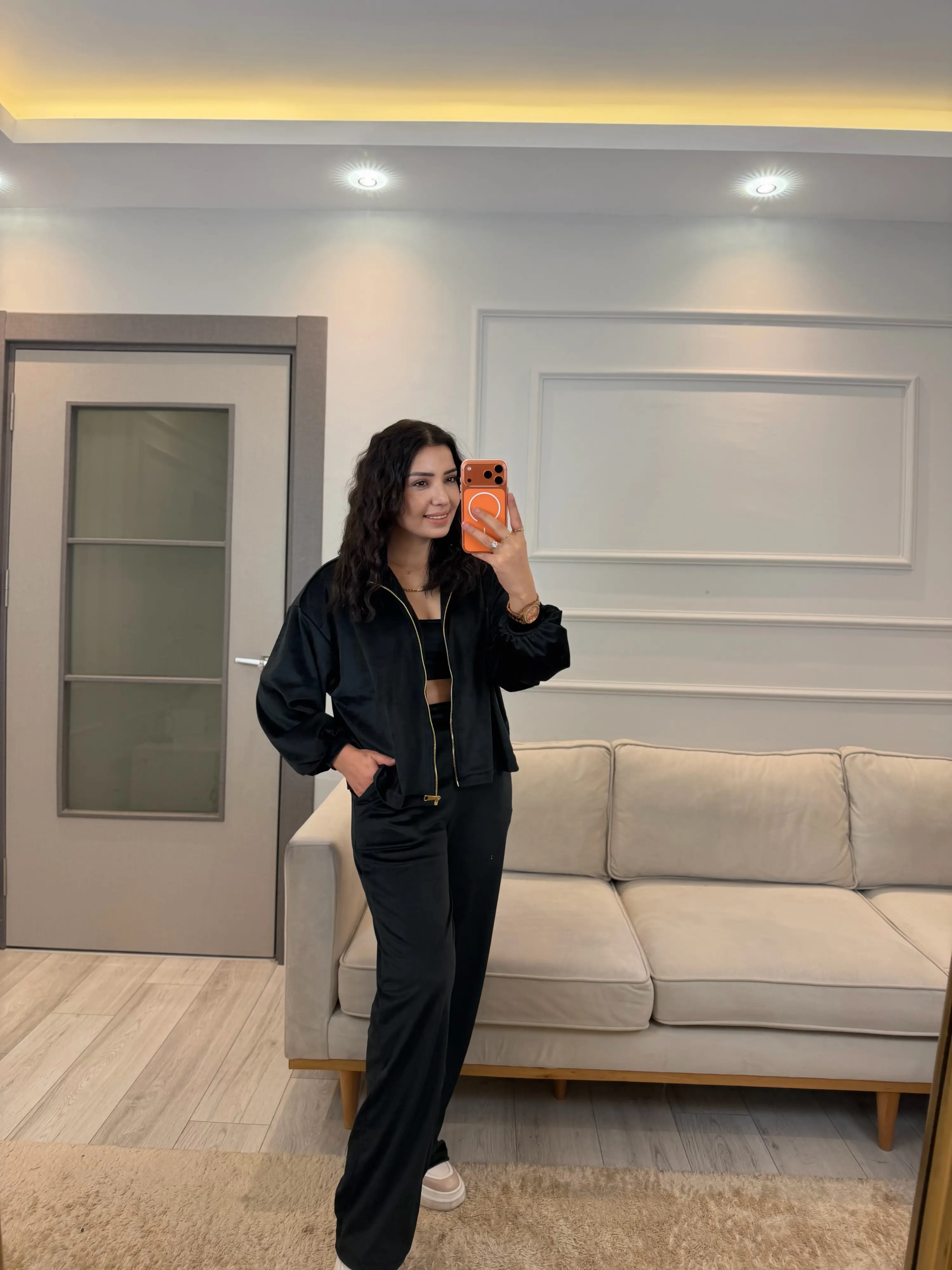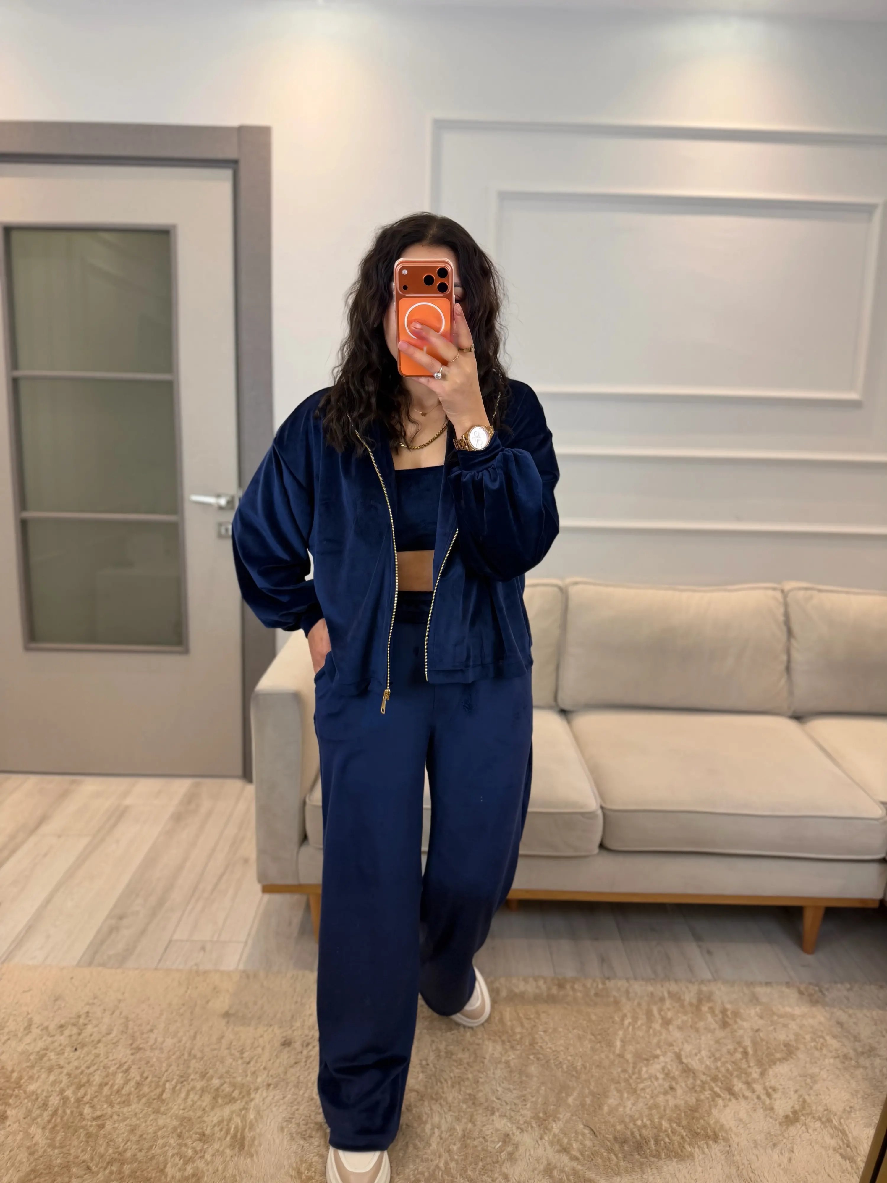Fermuar Detaylı Kadife Üçlü Takım