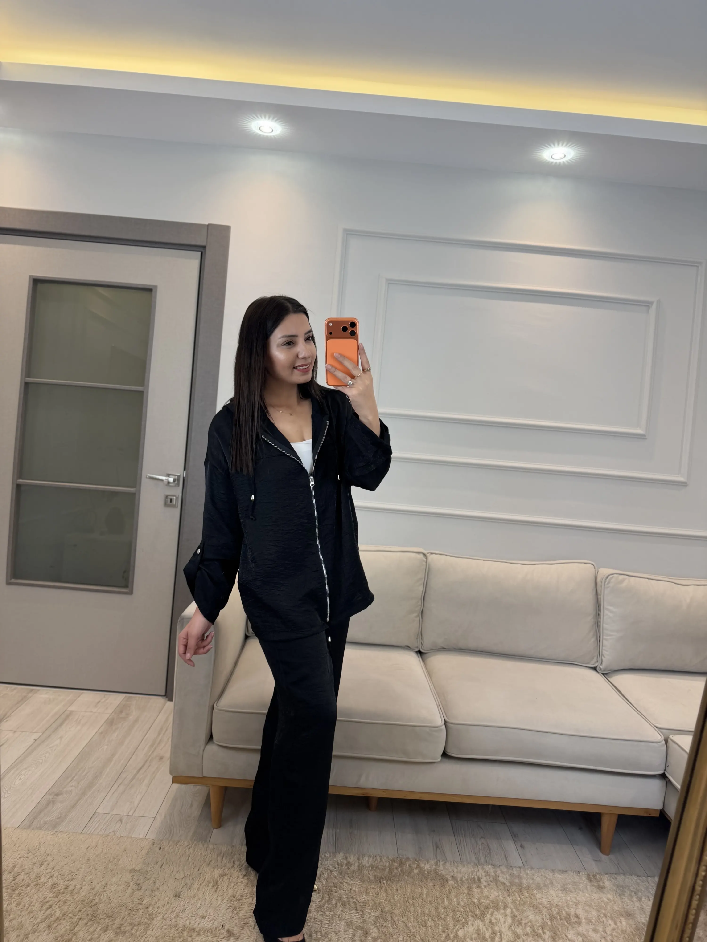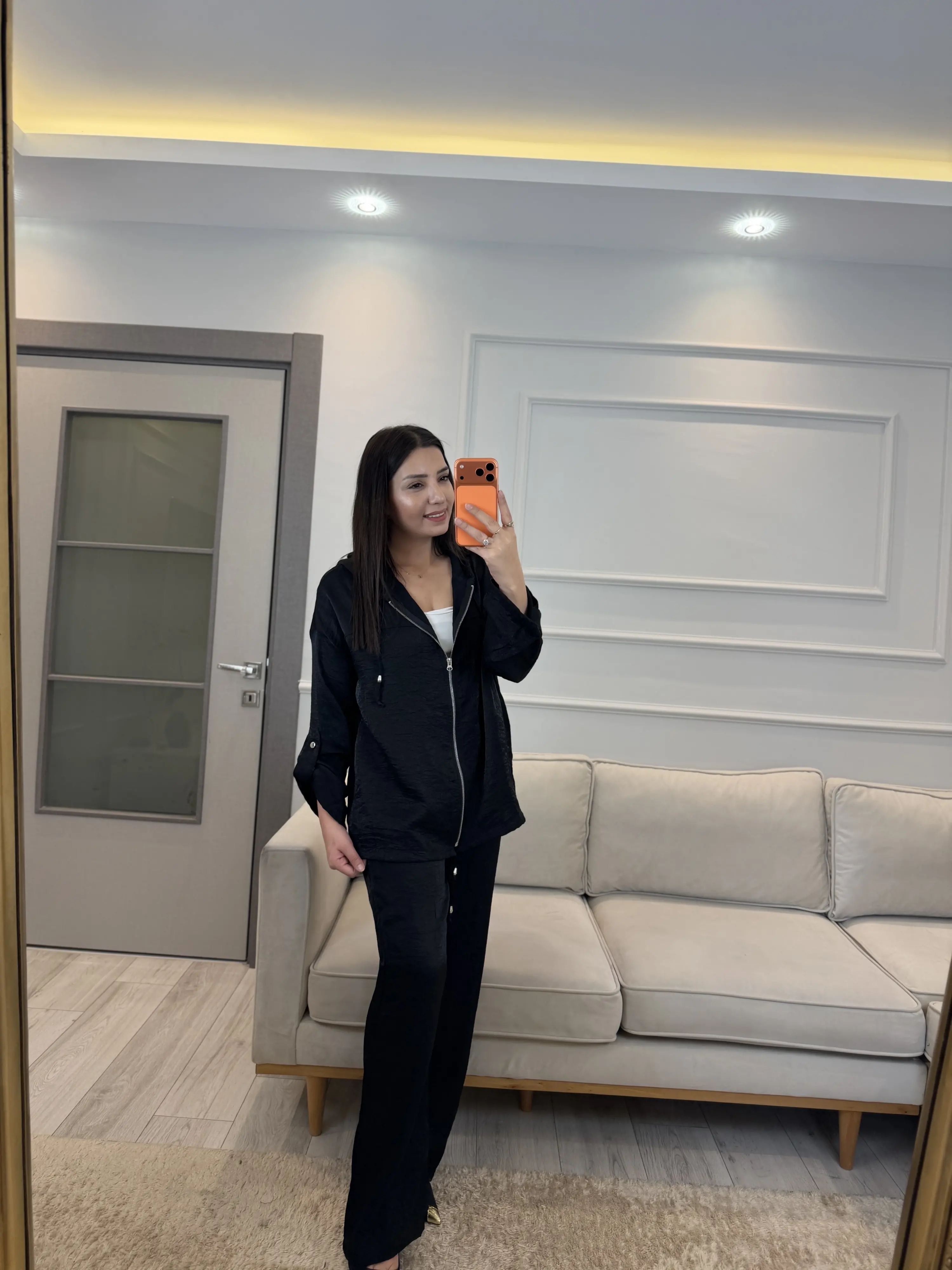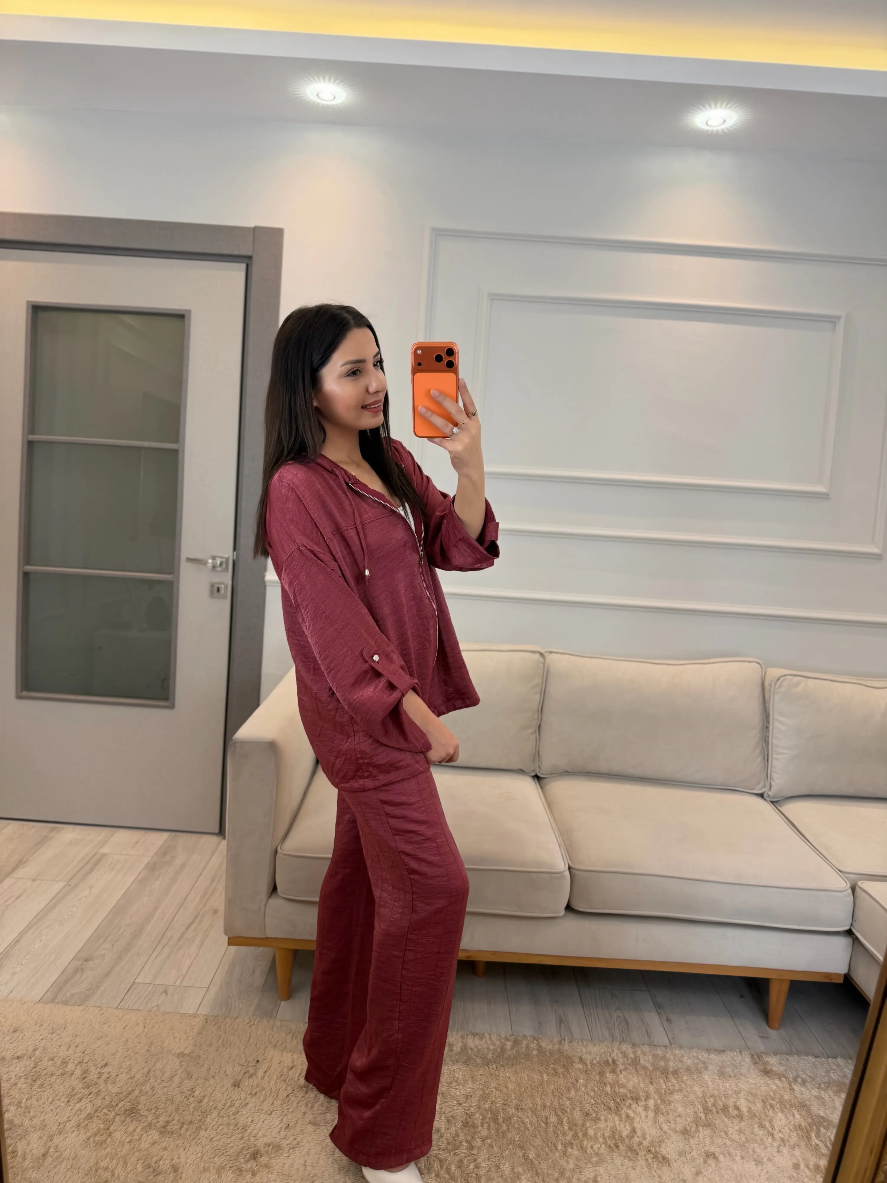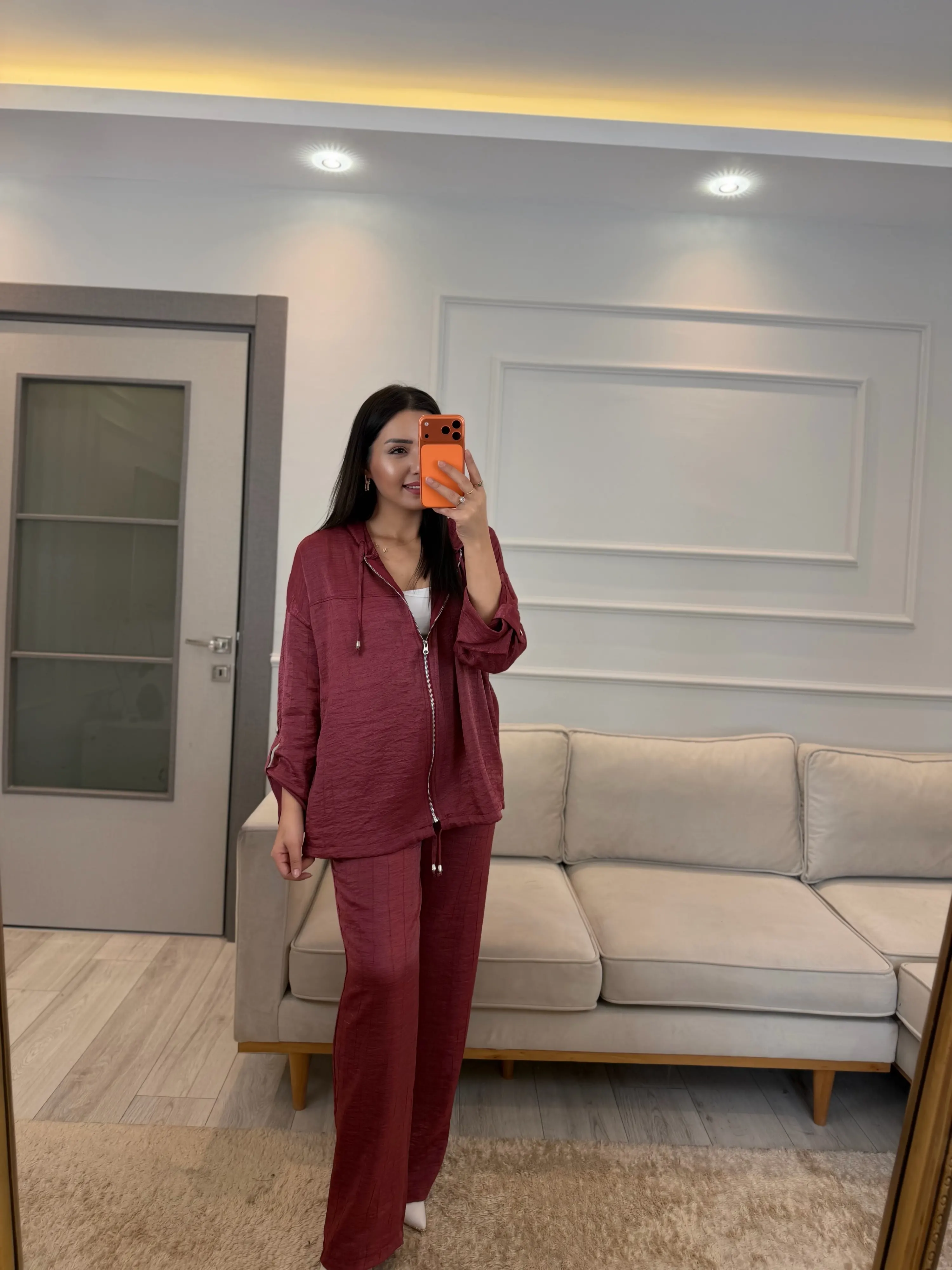 İthal Kumaş Parlak Kapüşonlu Takım