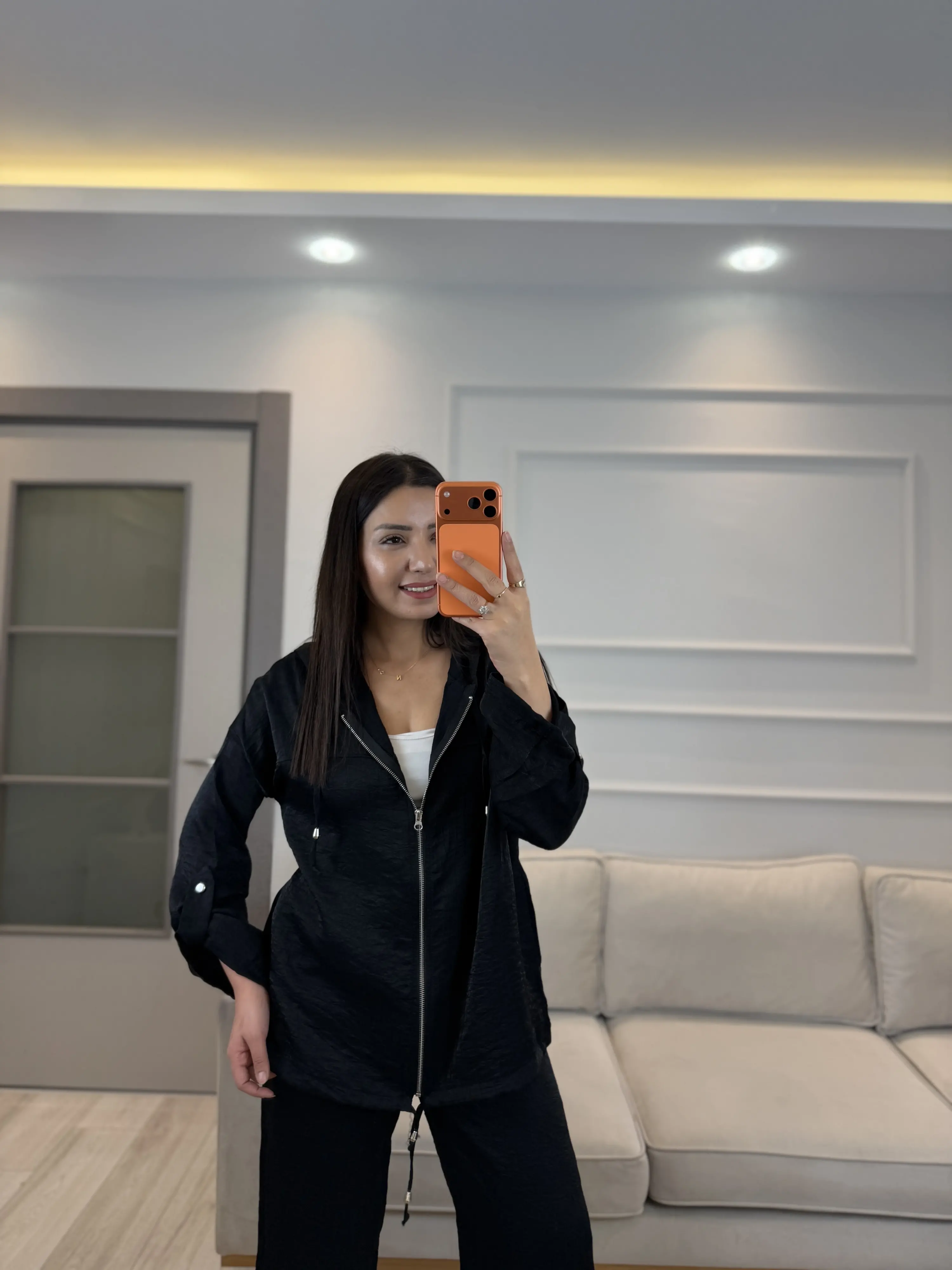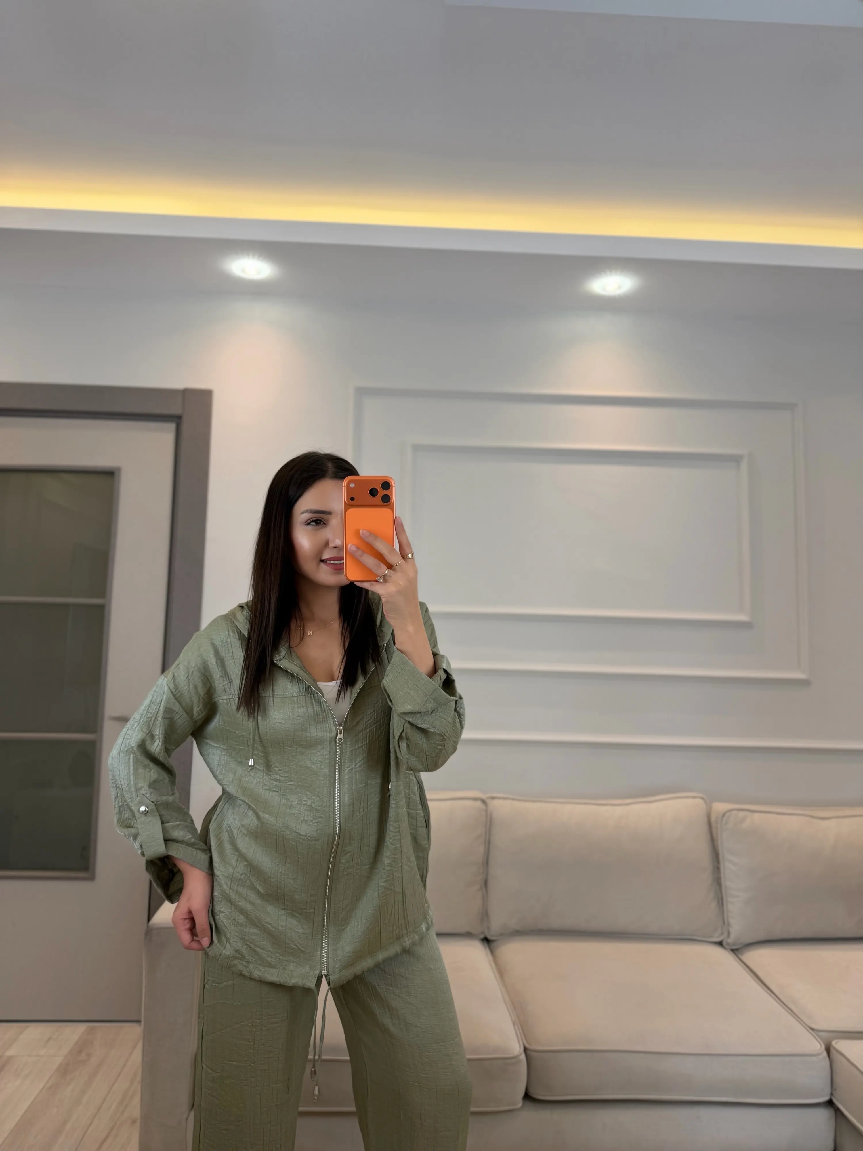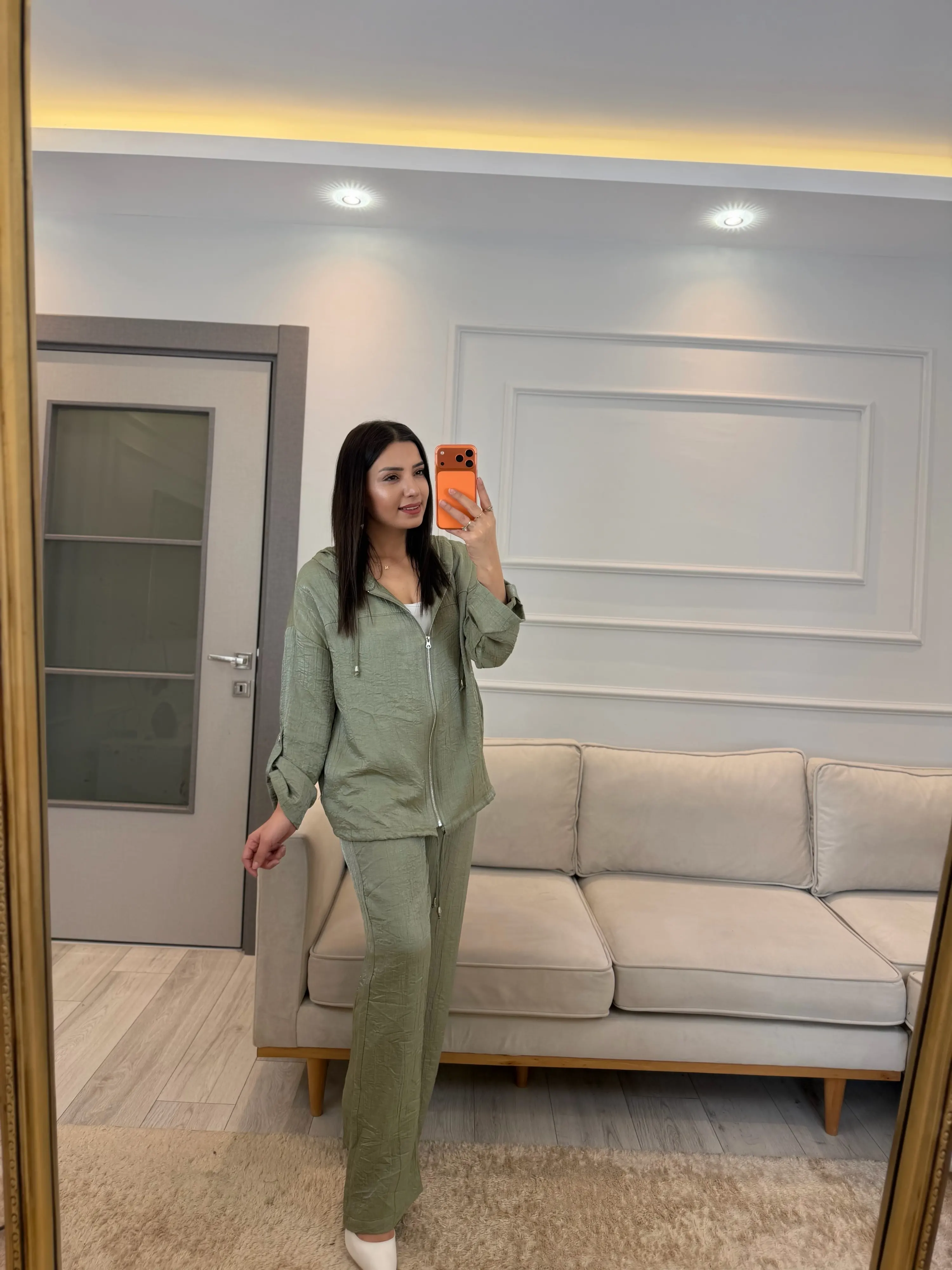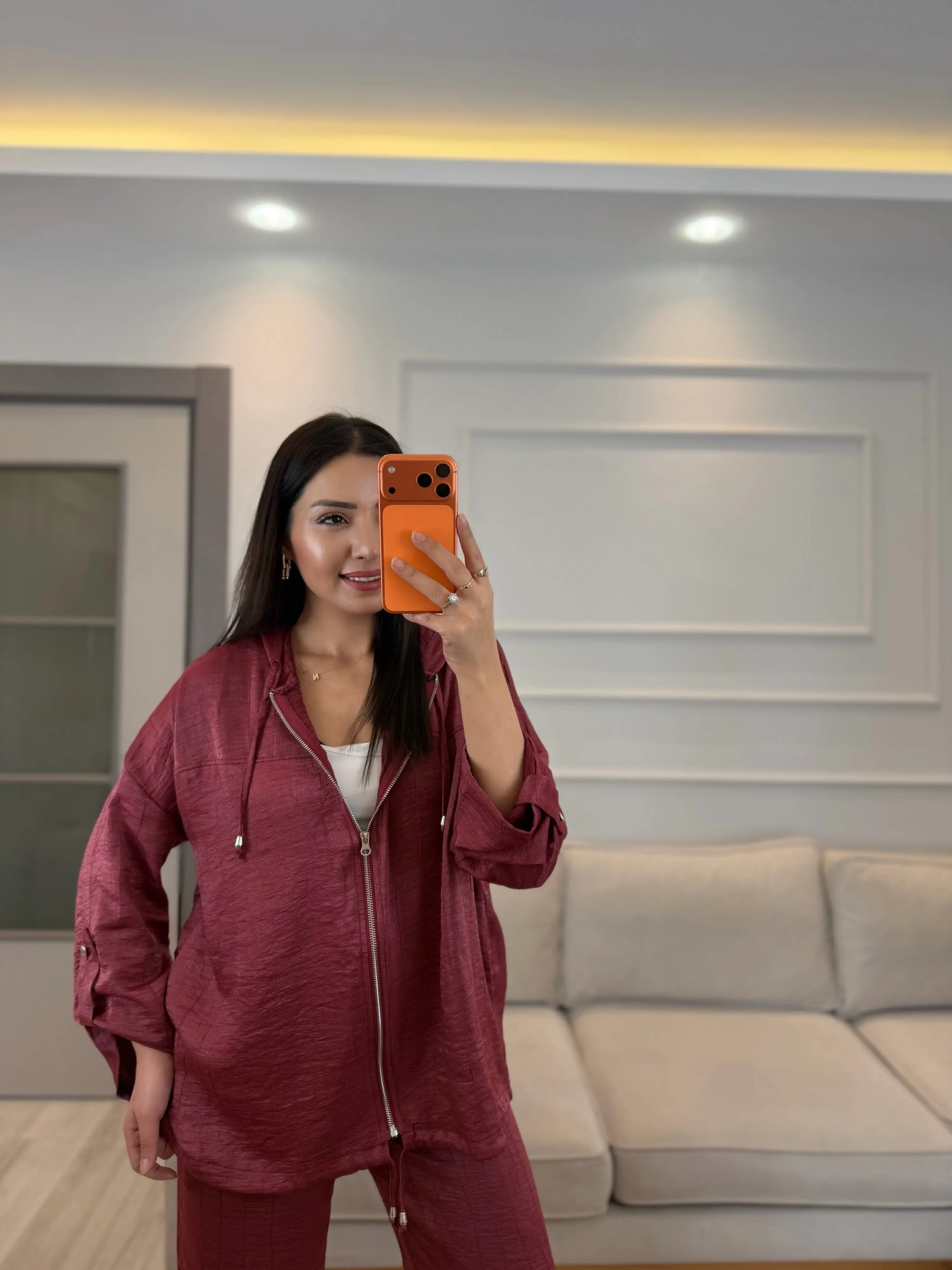 İthal Kumaş Parlak Kapüşonlu Takım