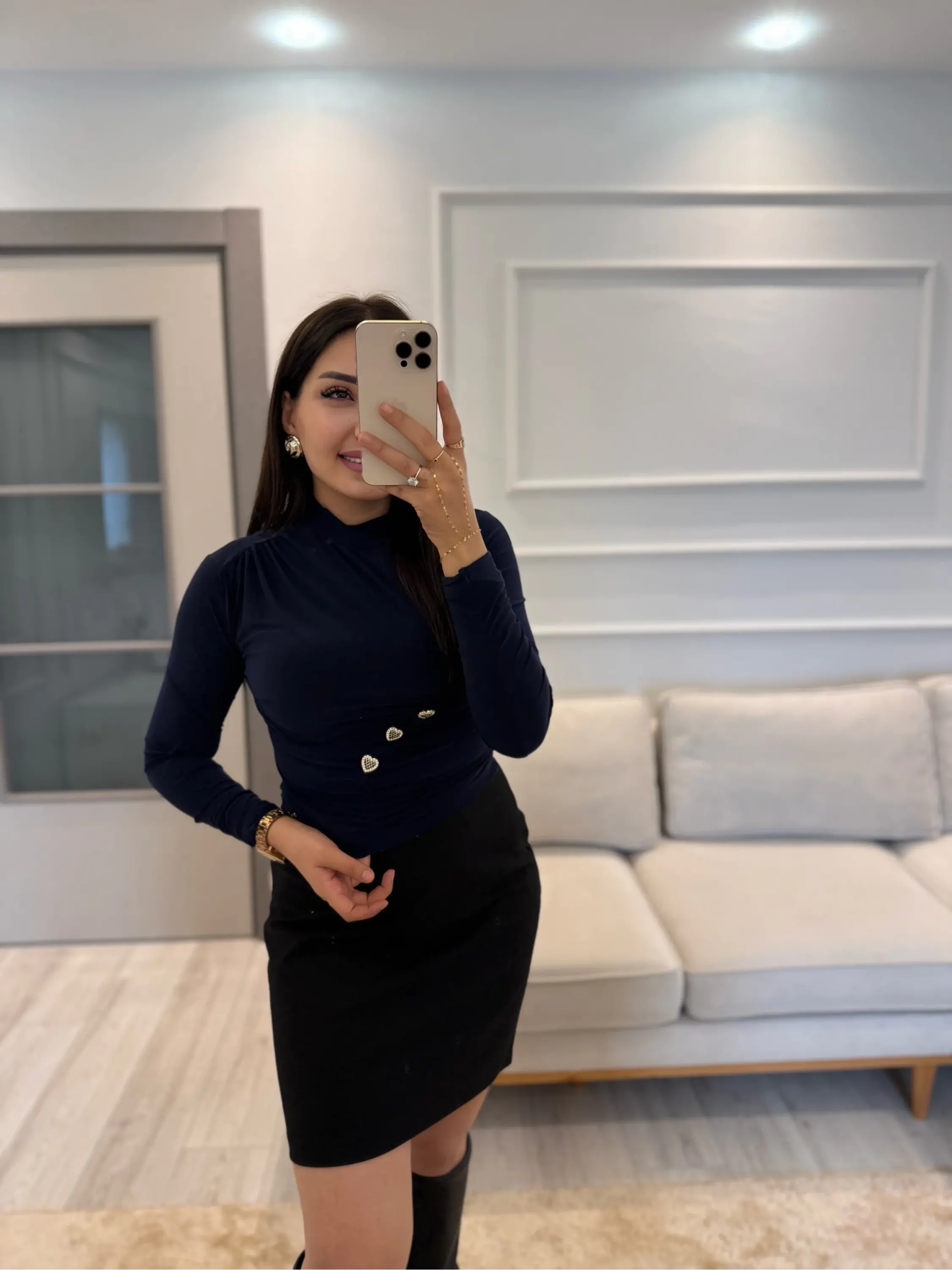 Kalp Düğmeli Büzgü Bantlı Bluz