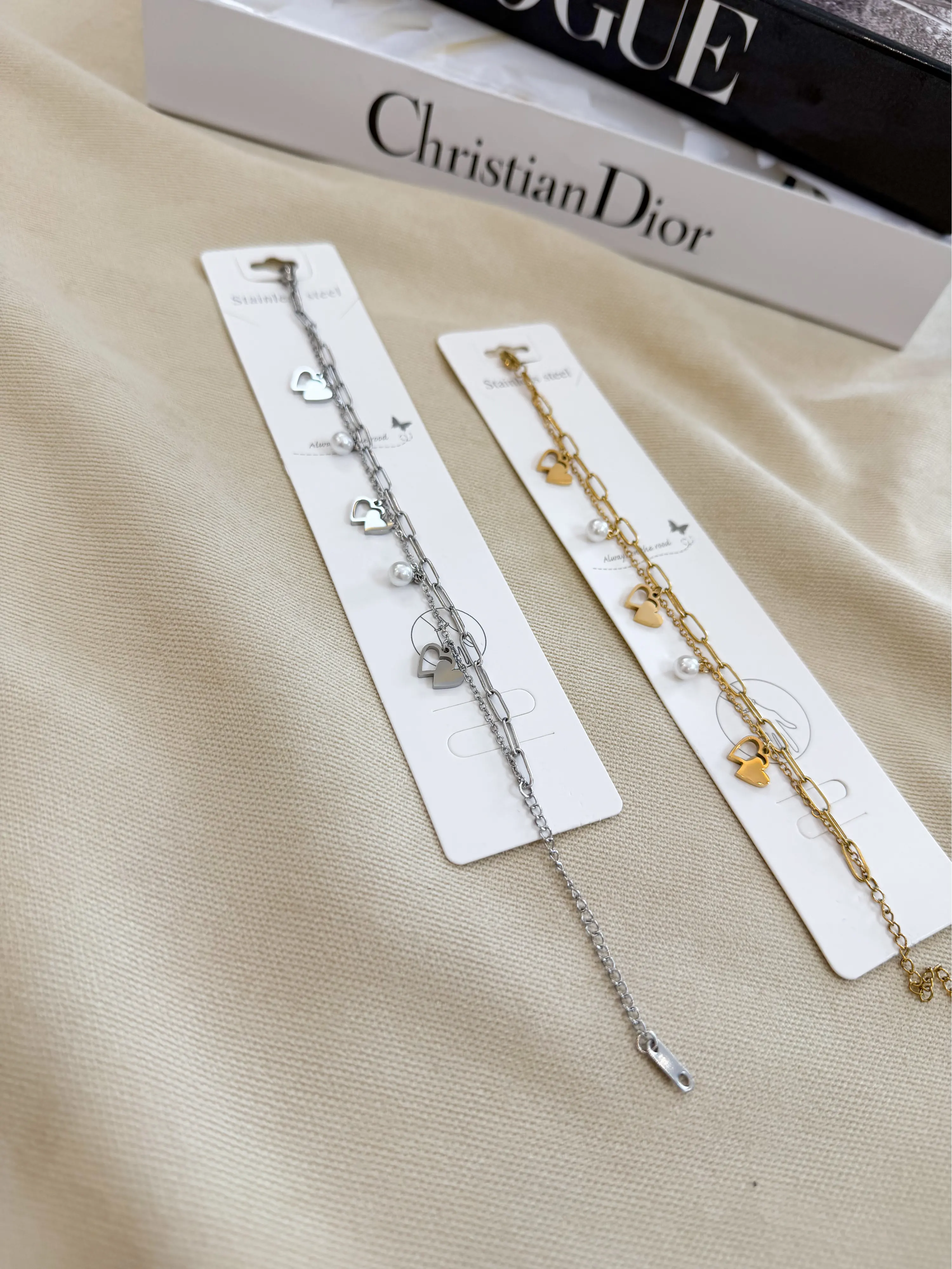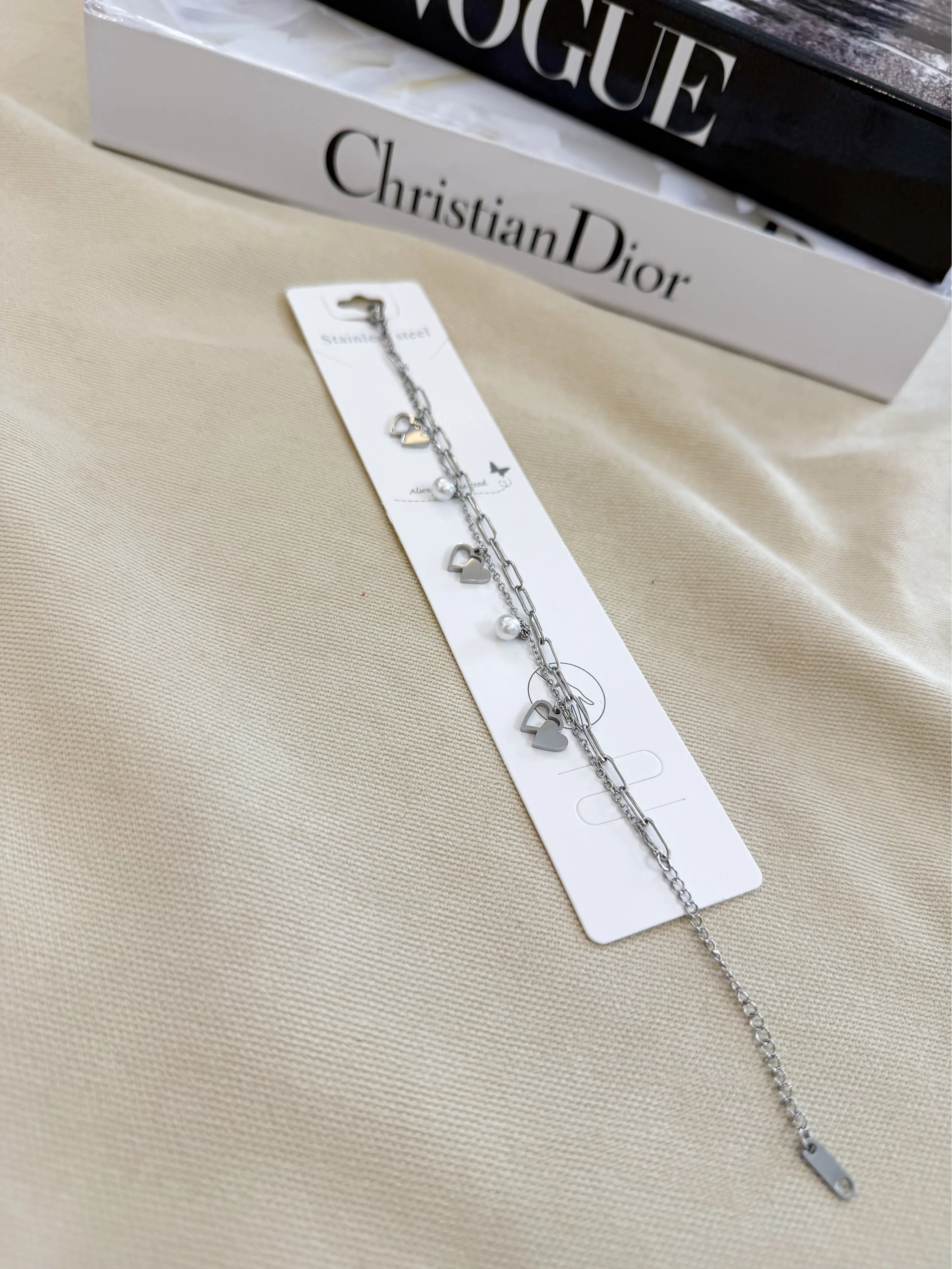 Kalp Figürlü İnci Taş Çelik Bileklik