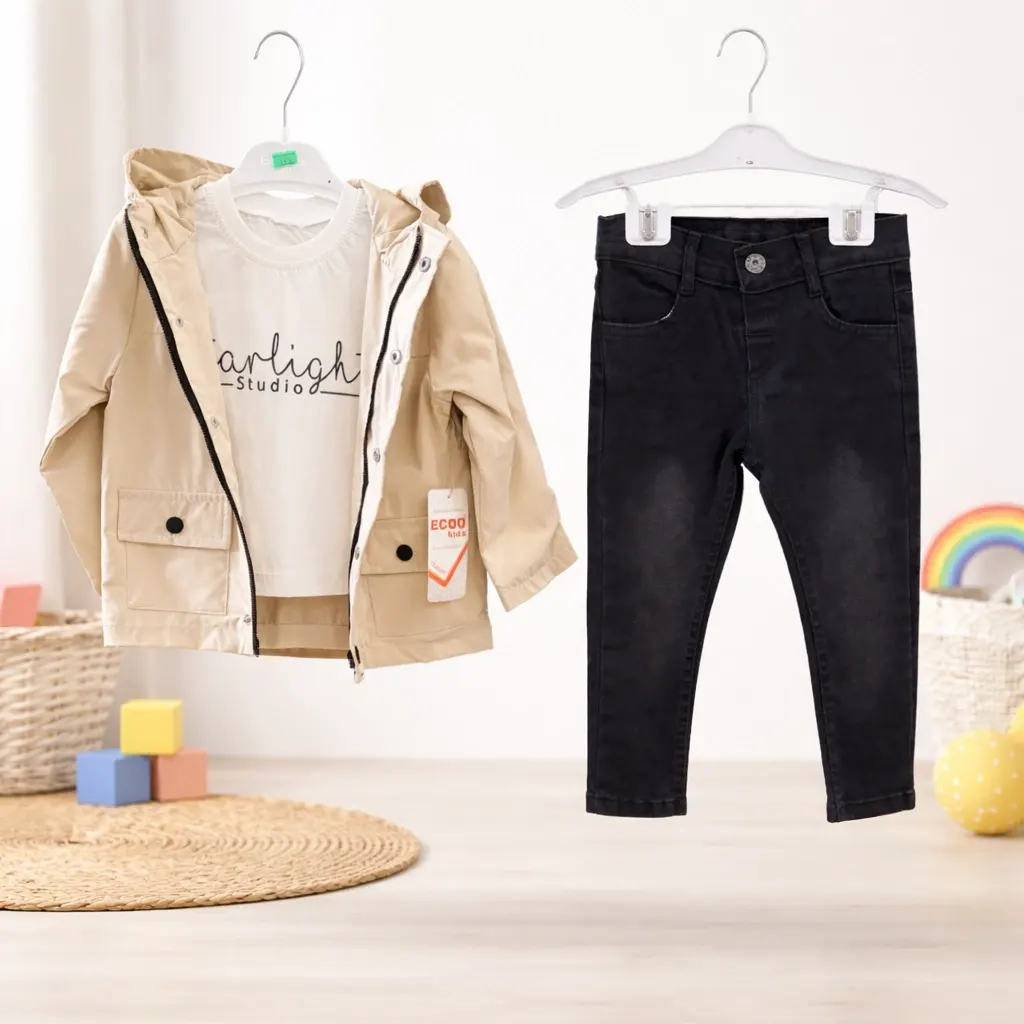 Kapüşonlu Ceket Üçlü Takım 1/4 Yaş
