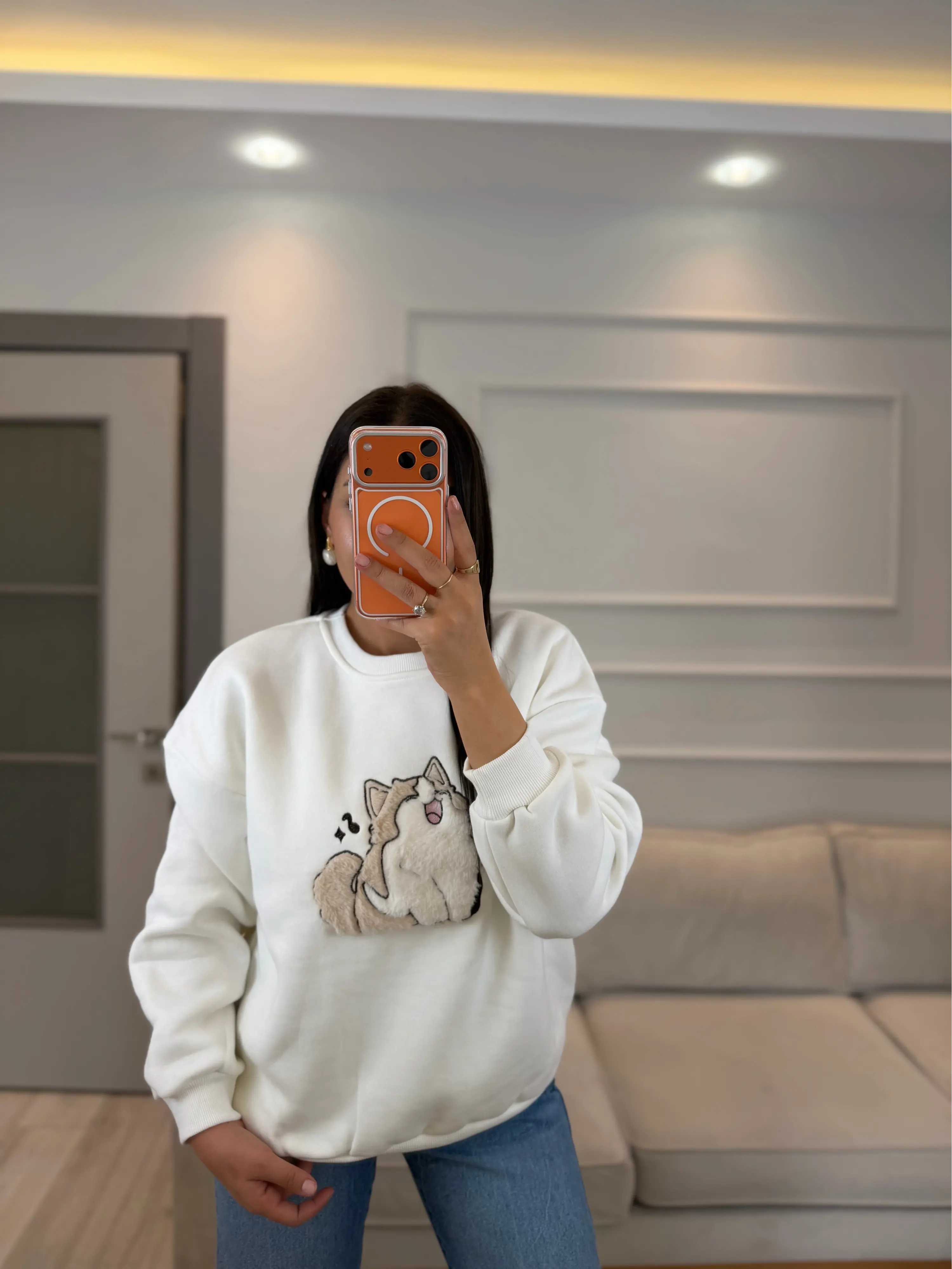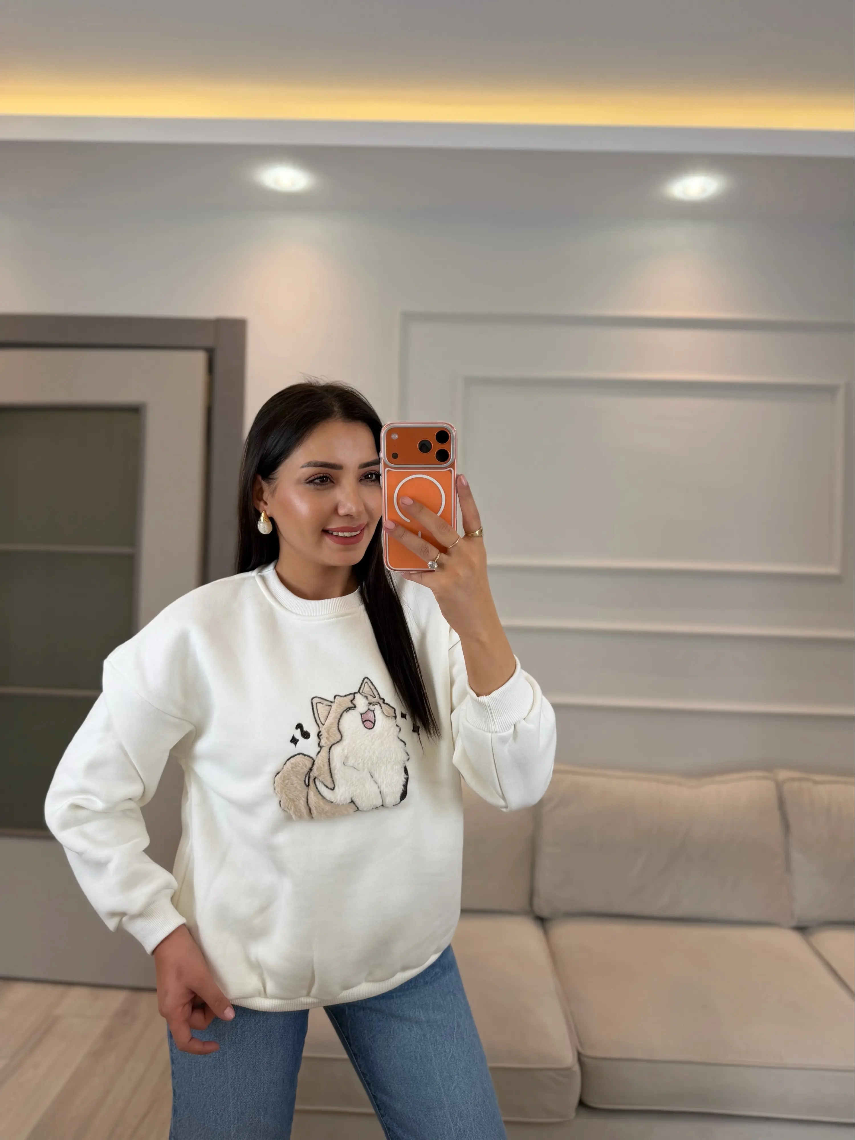 Kedi Baskılı Sweatshirt
