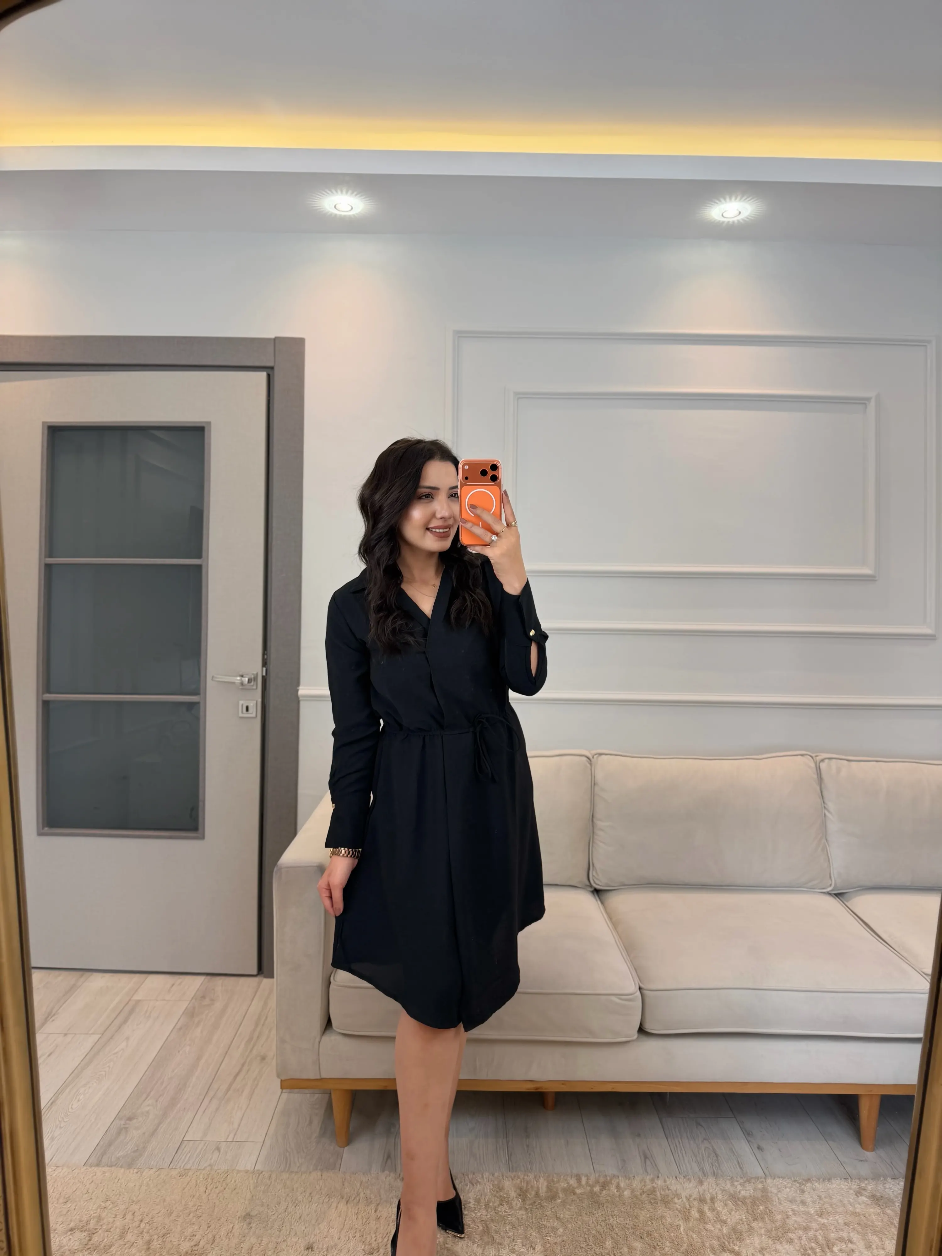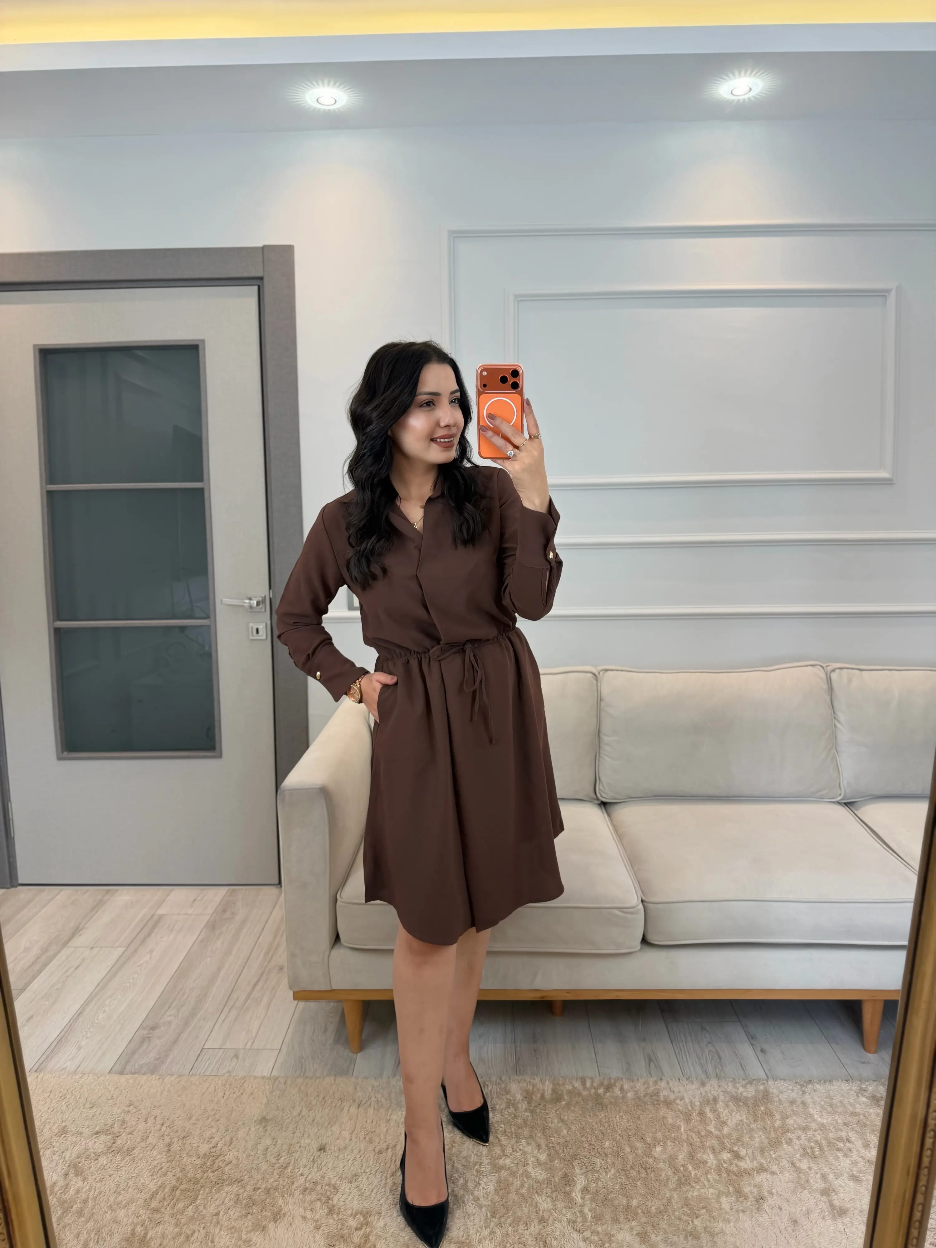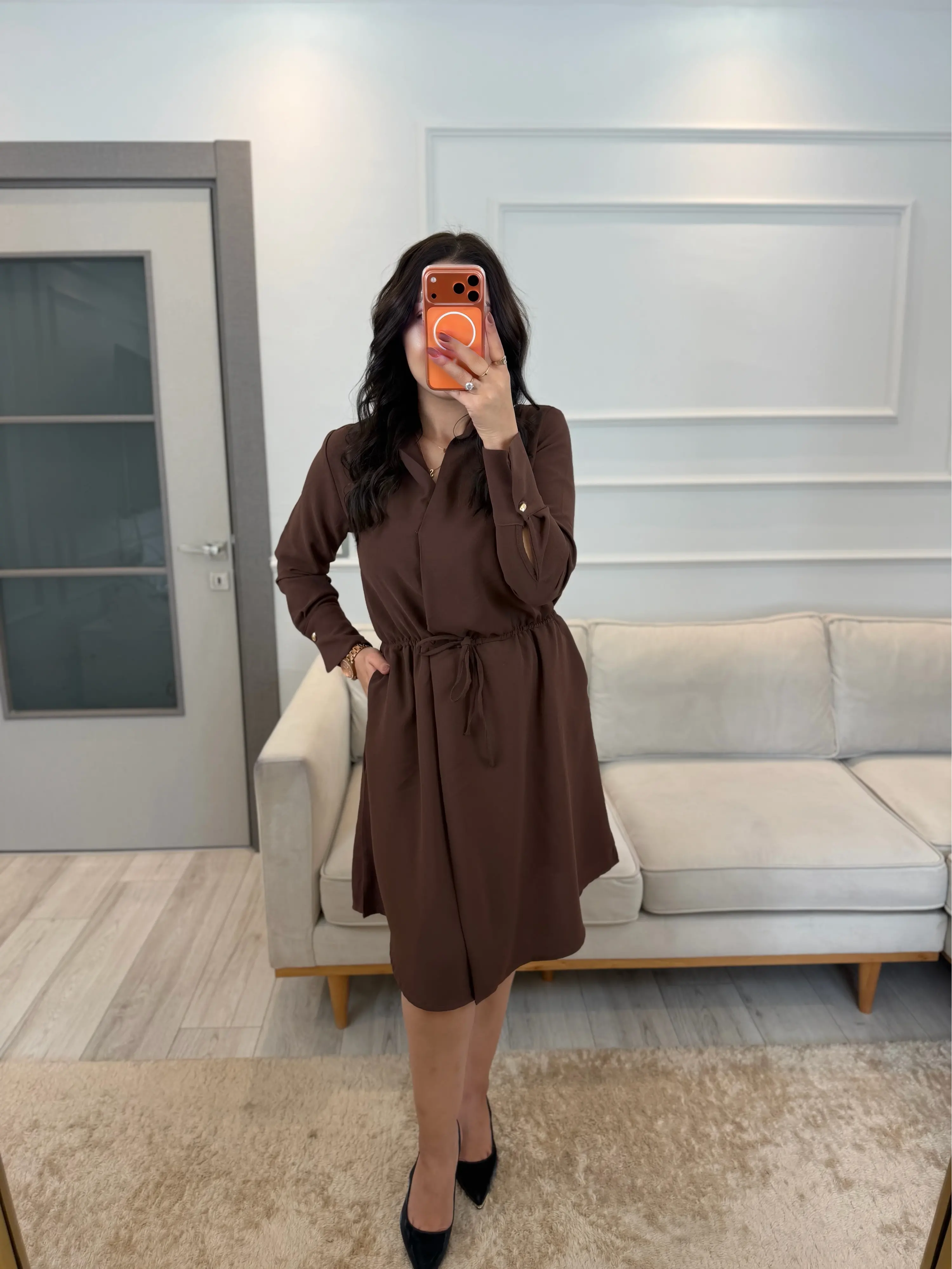 Kruvaze Gömlek Yaka Elbise