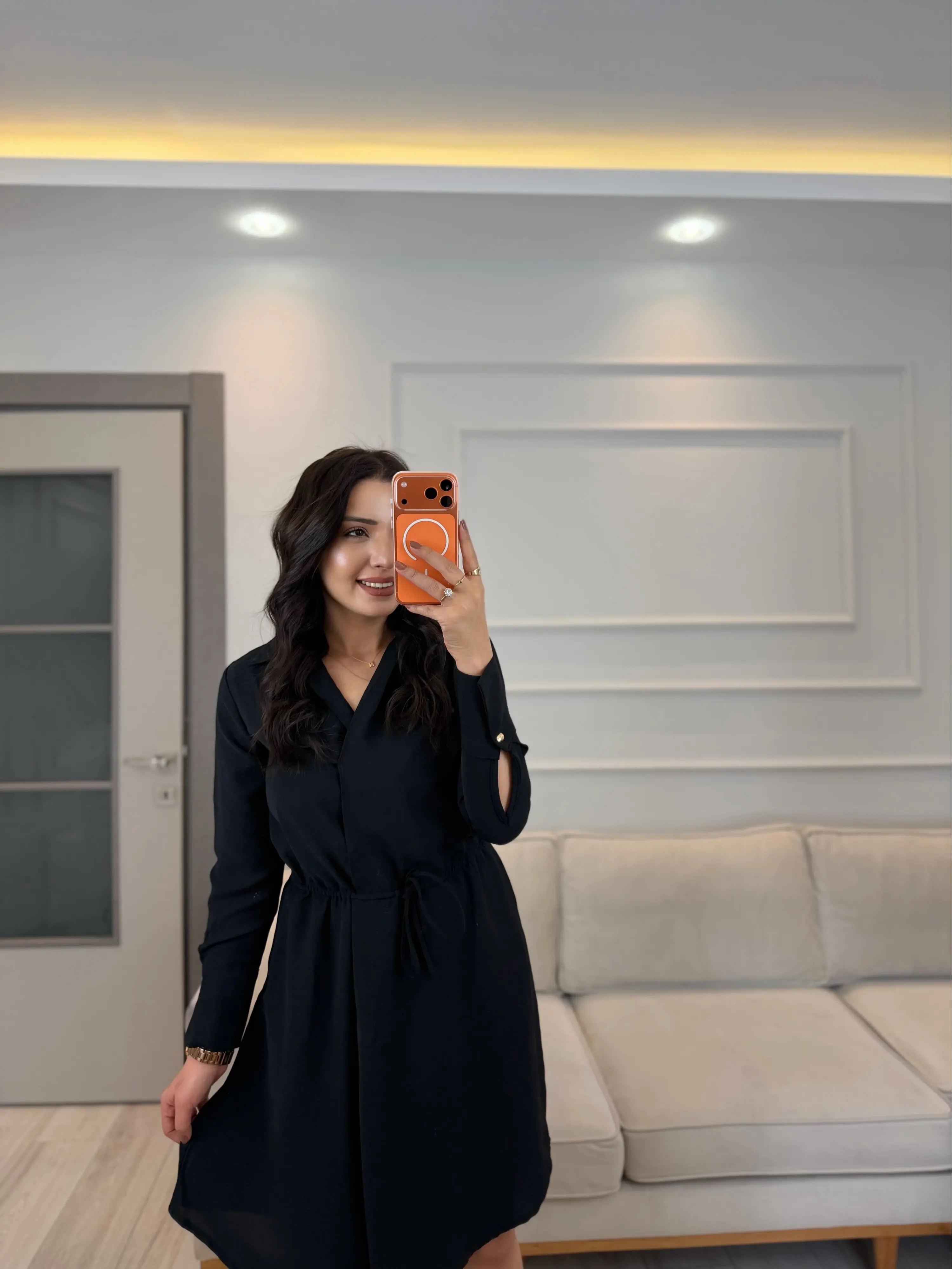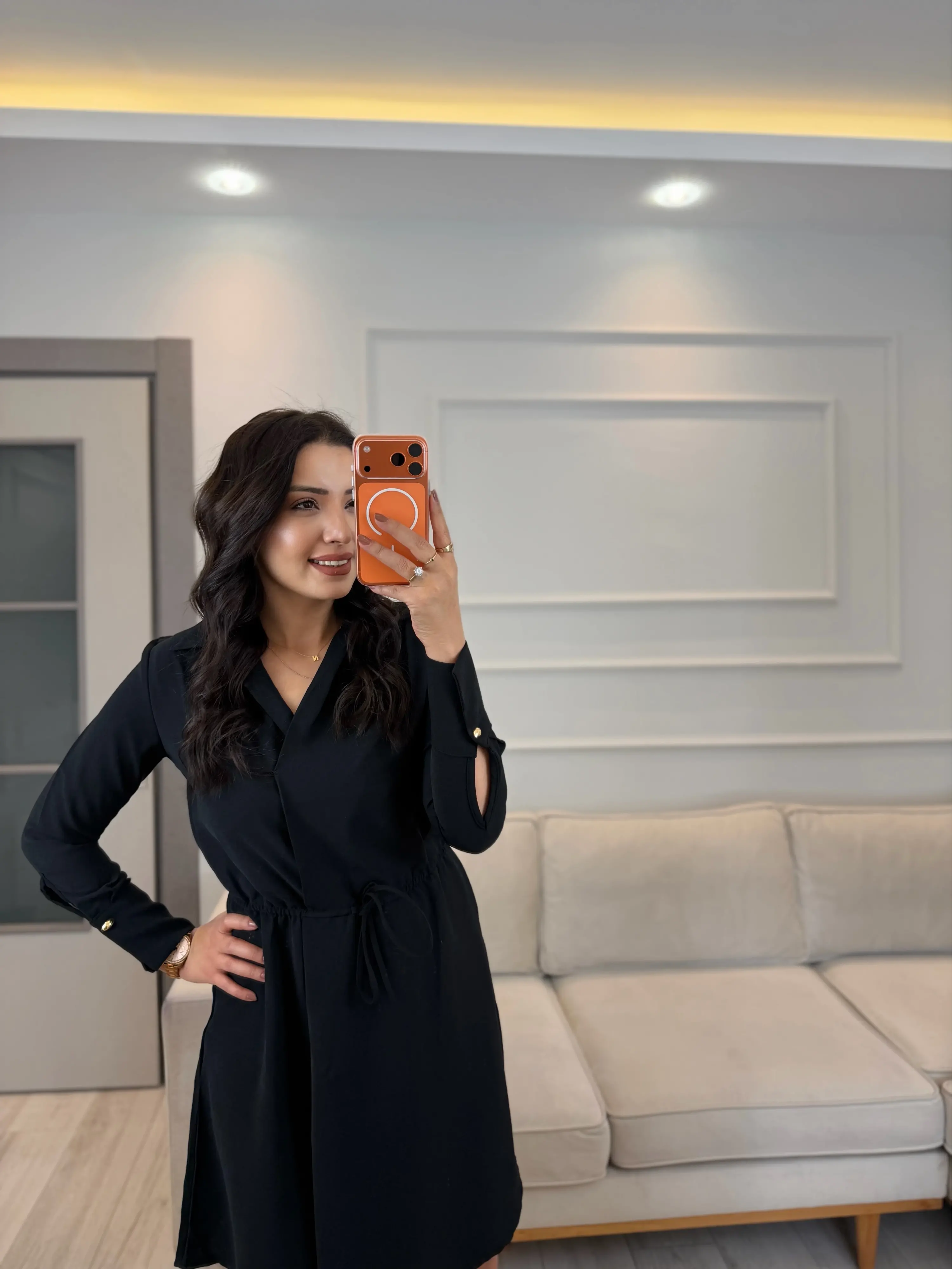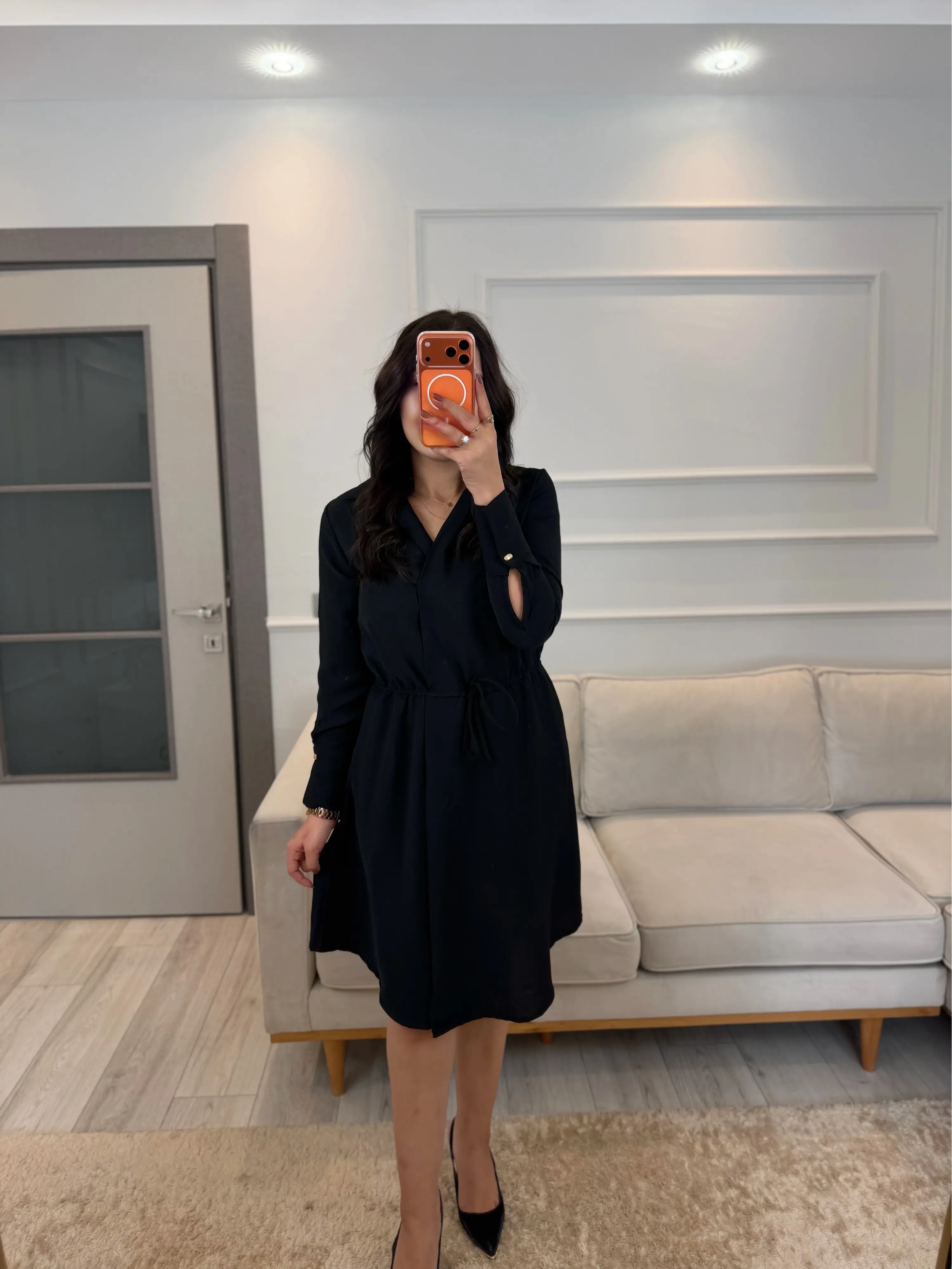 Kruvaze Gömlek Yaka Elbise