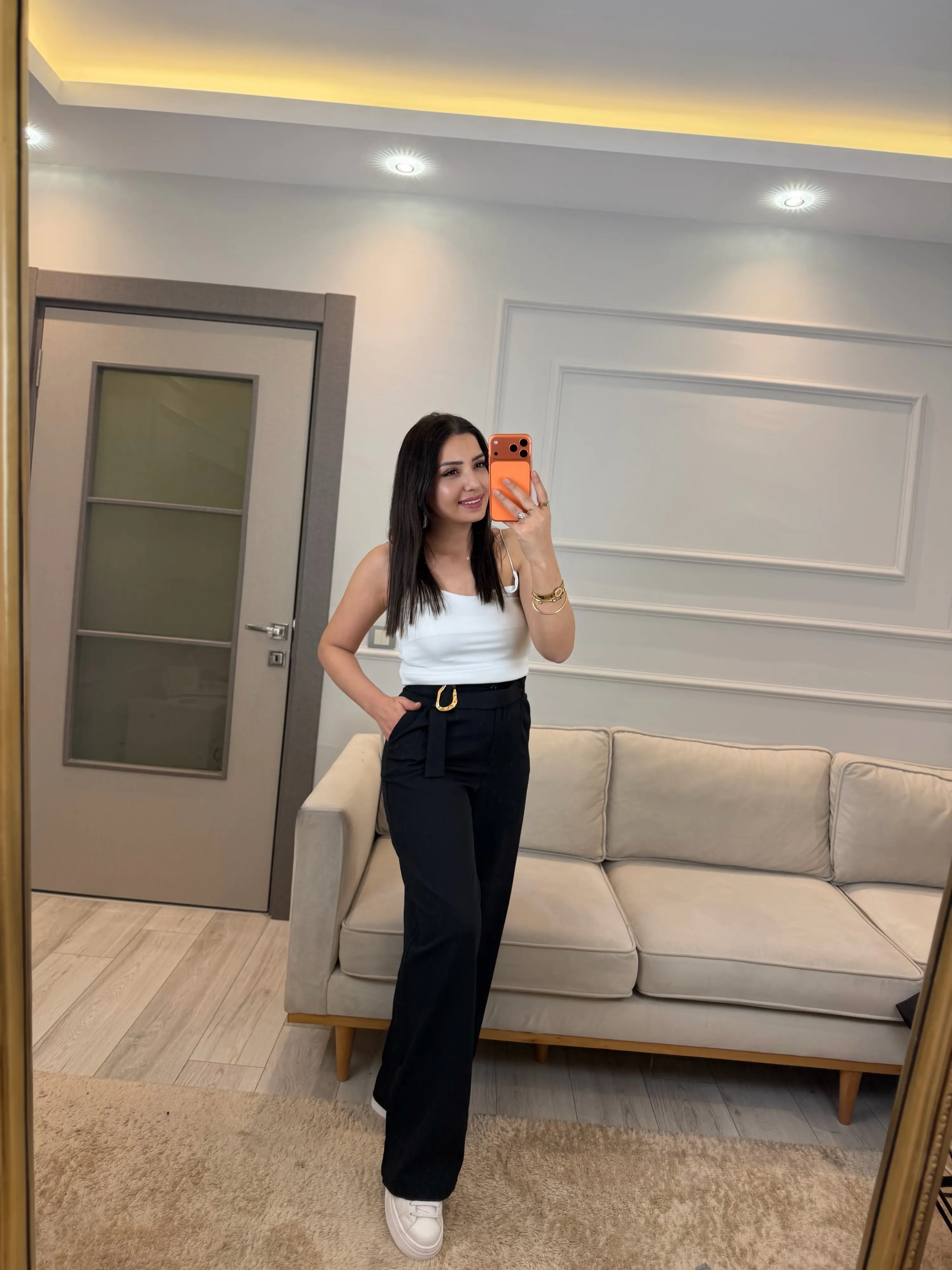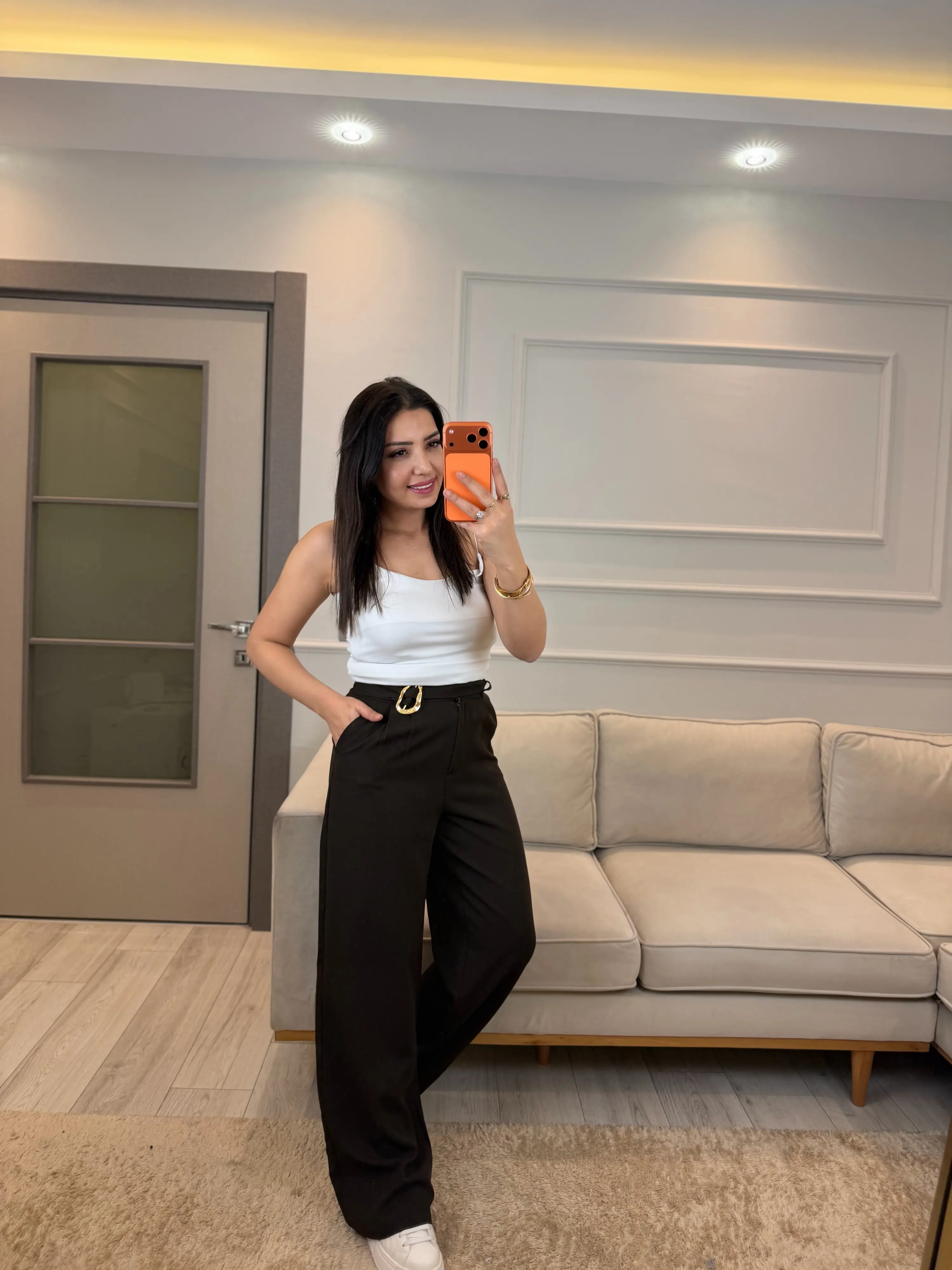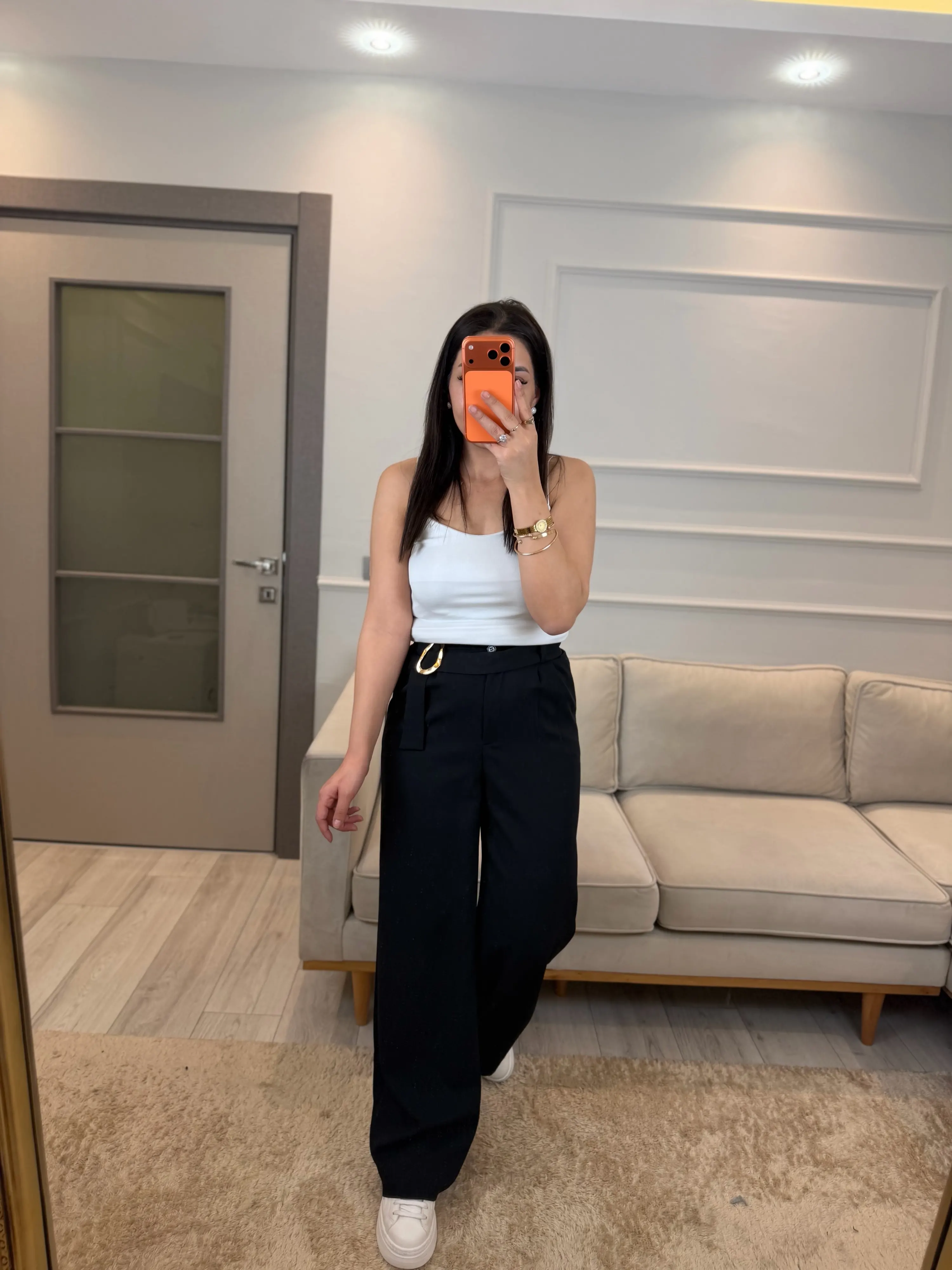 Kuşak Ve Toka Detaylı Palazzo Pantolon