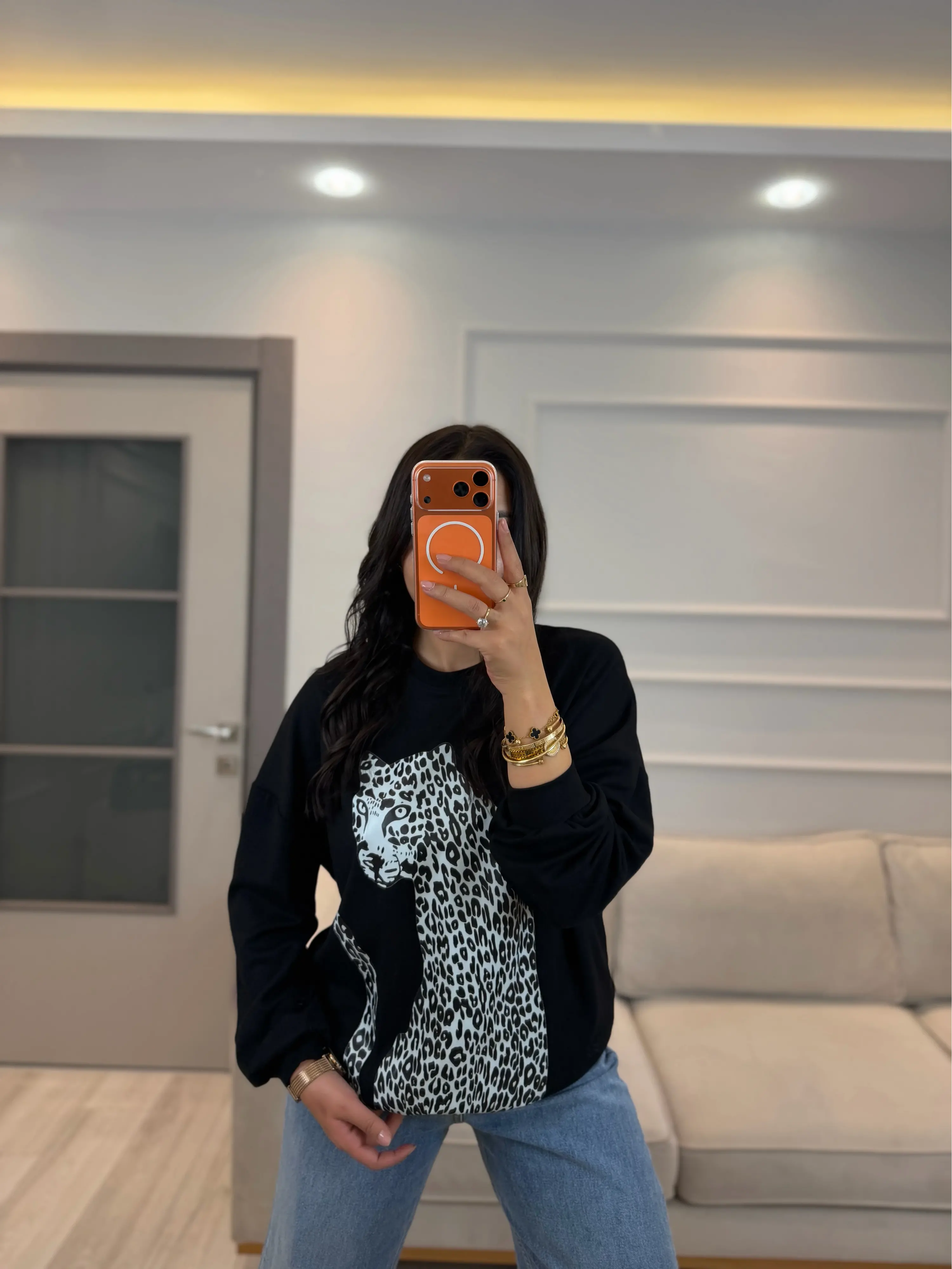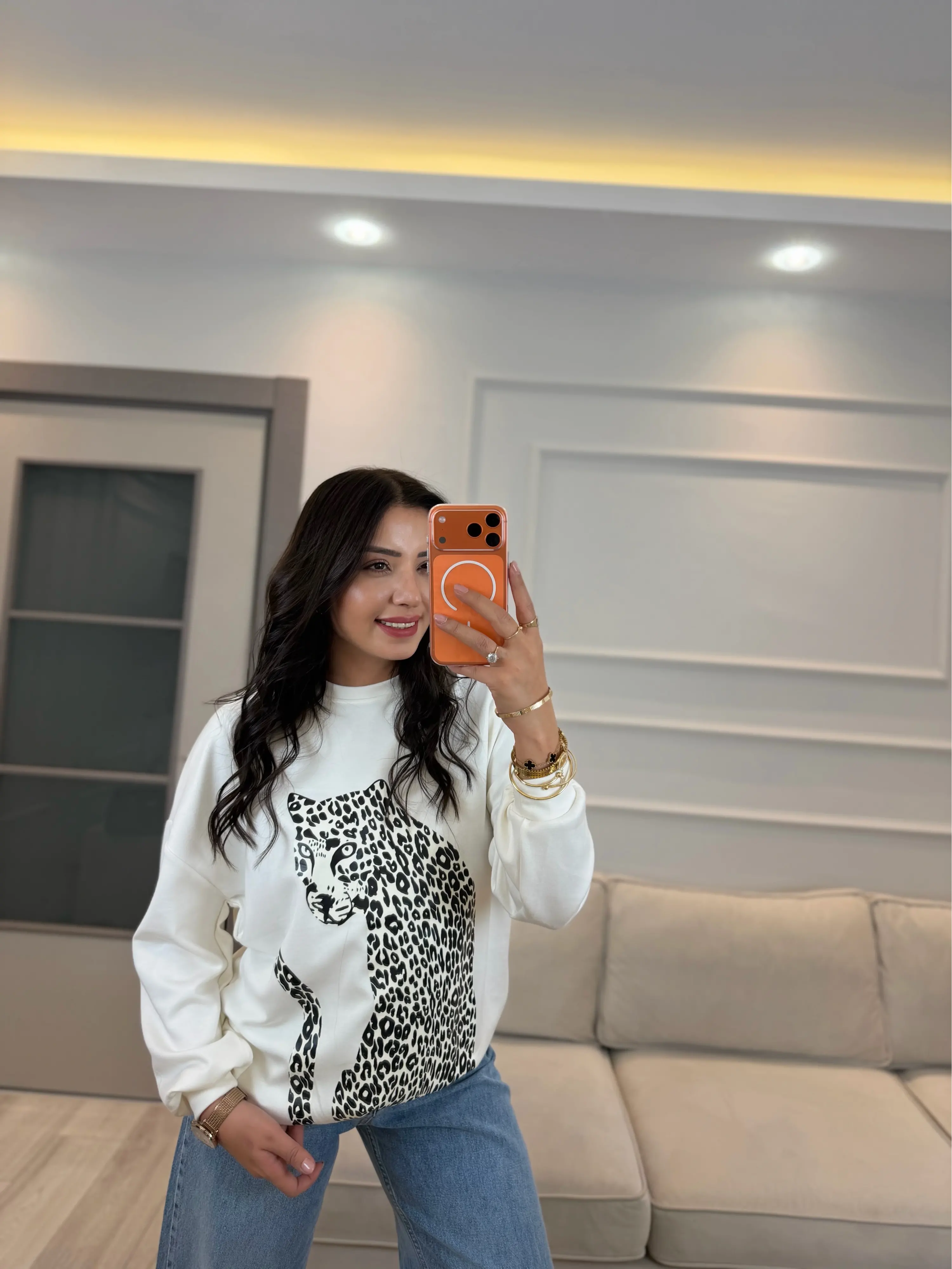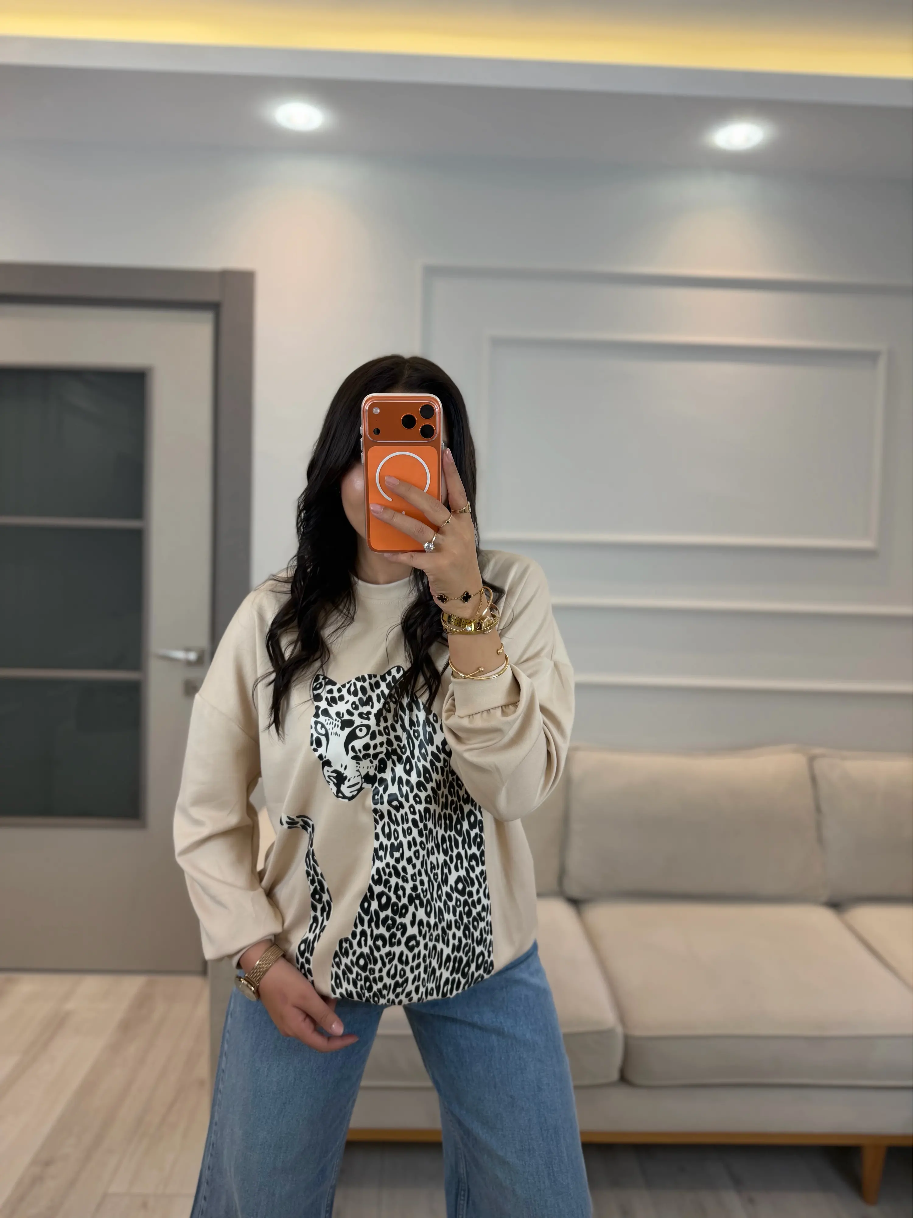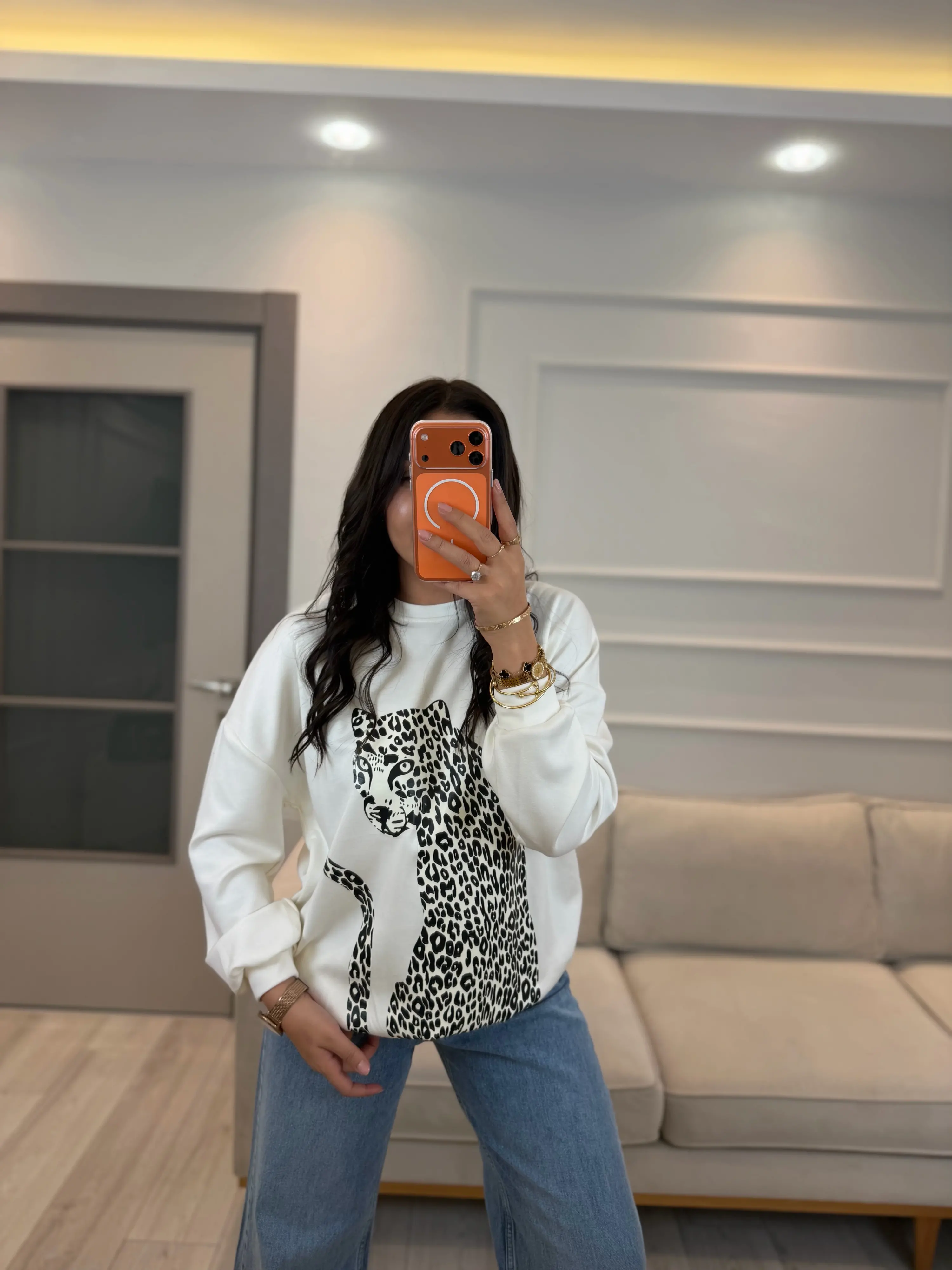 Leopar Baskılı Modal Sweatshirt