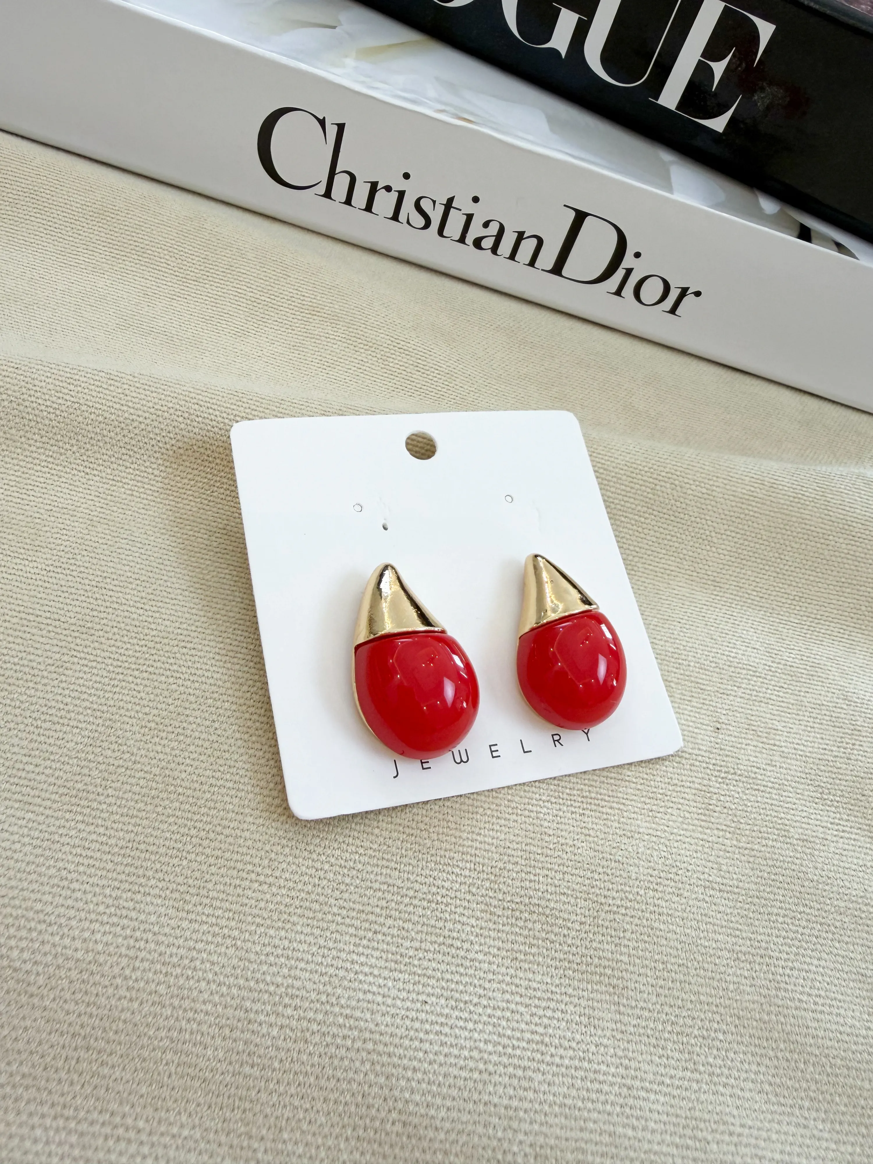 Mineli Çift Renk Damla Küpe