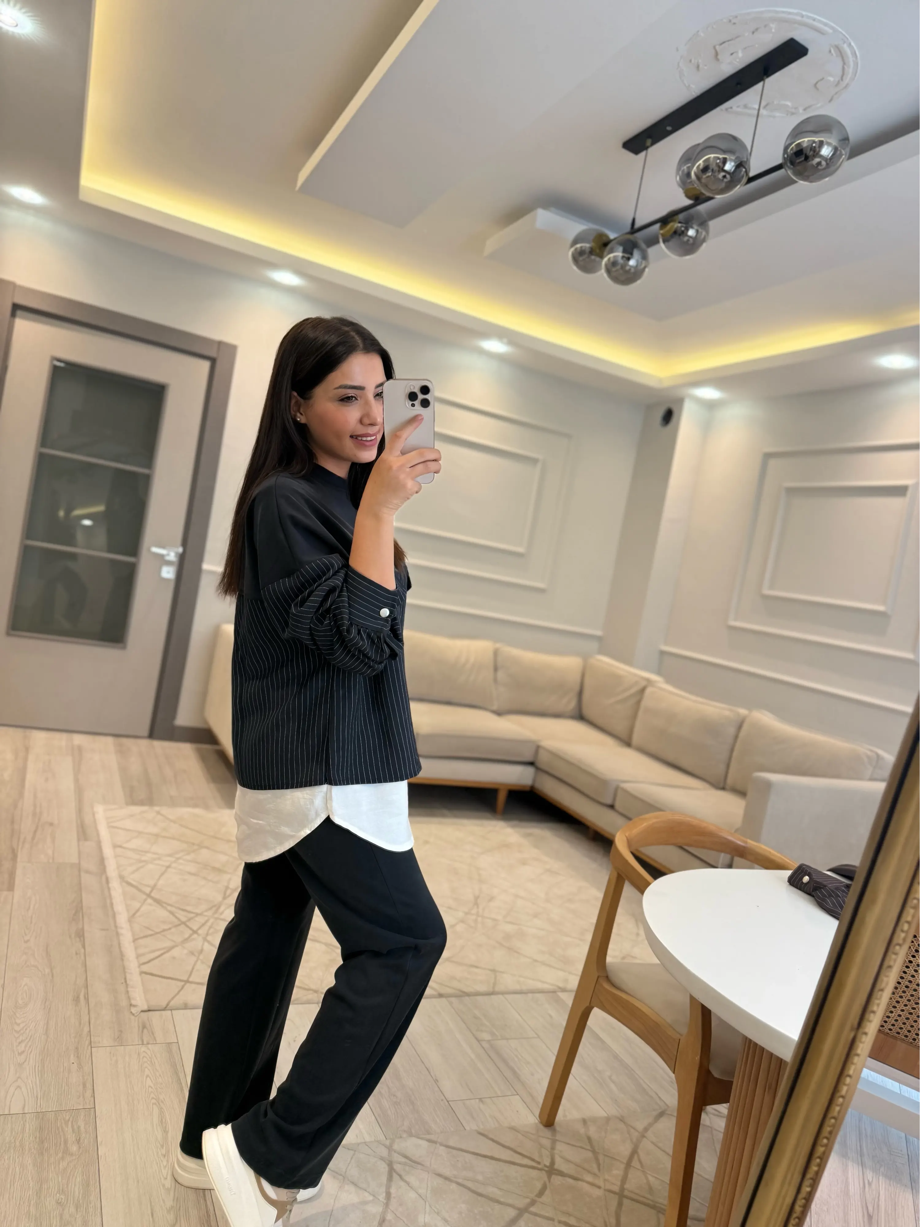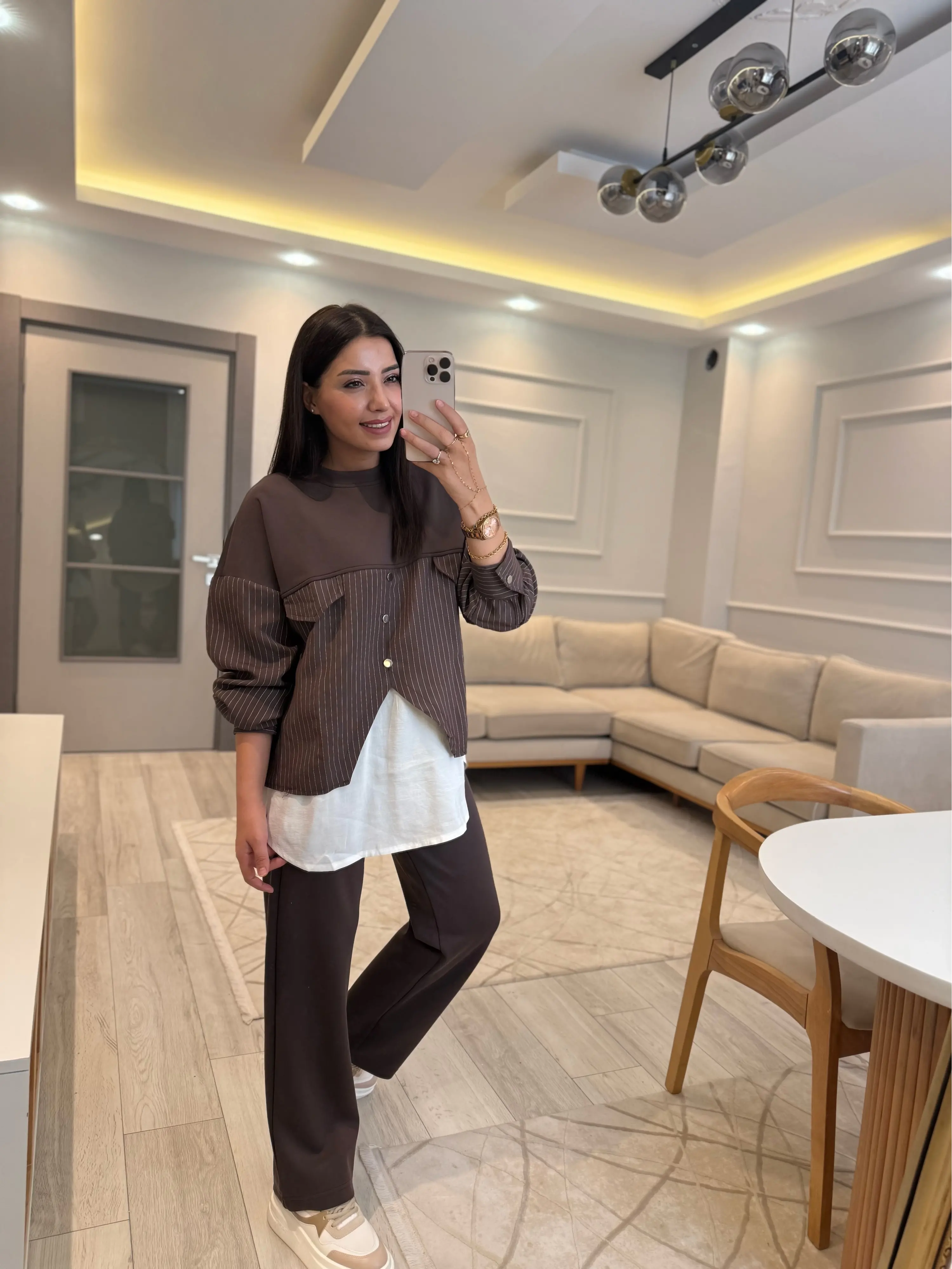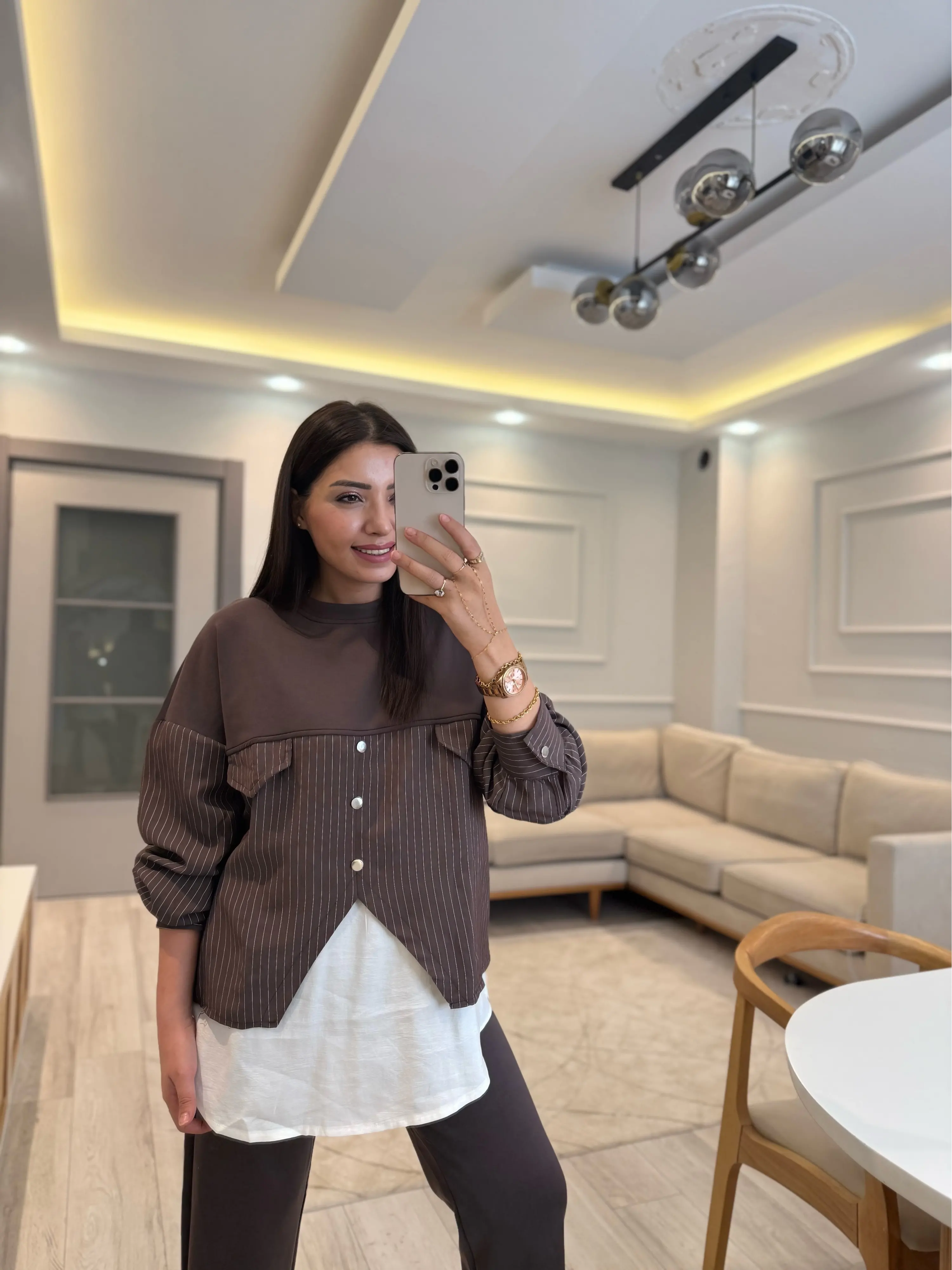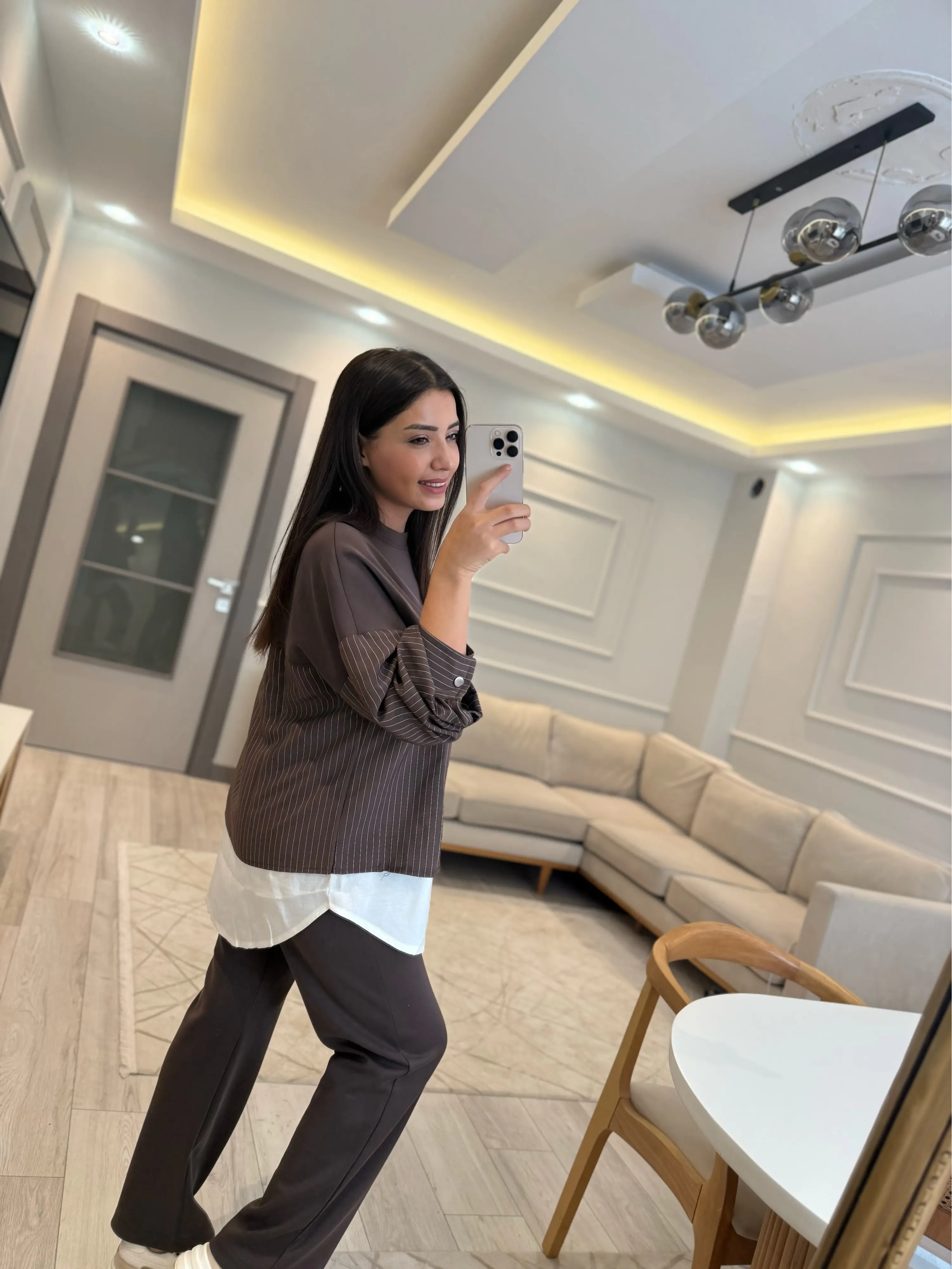 Modal Çizgili Gömlek Detaylı Takım