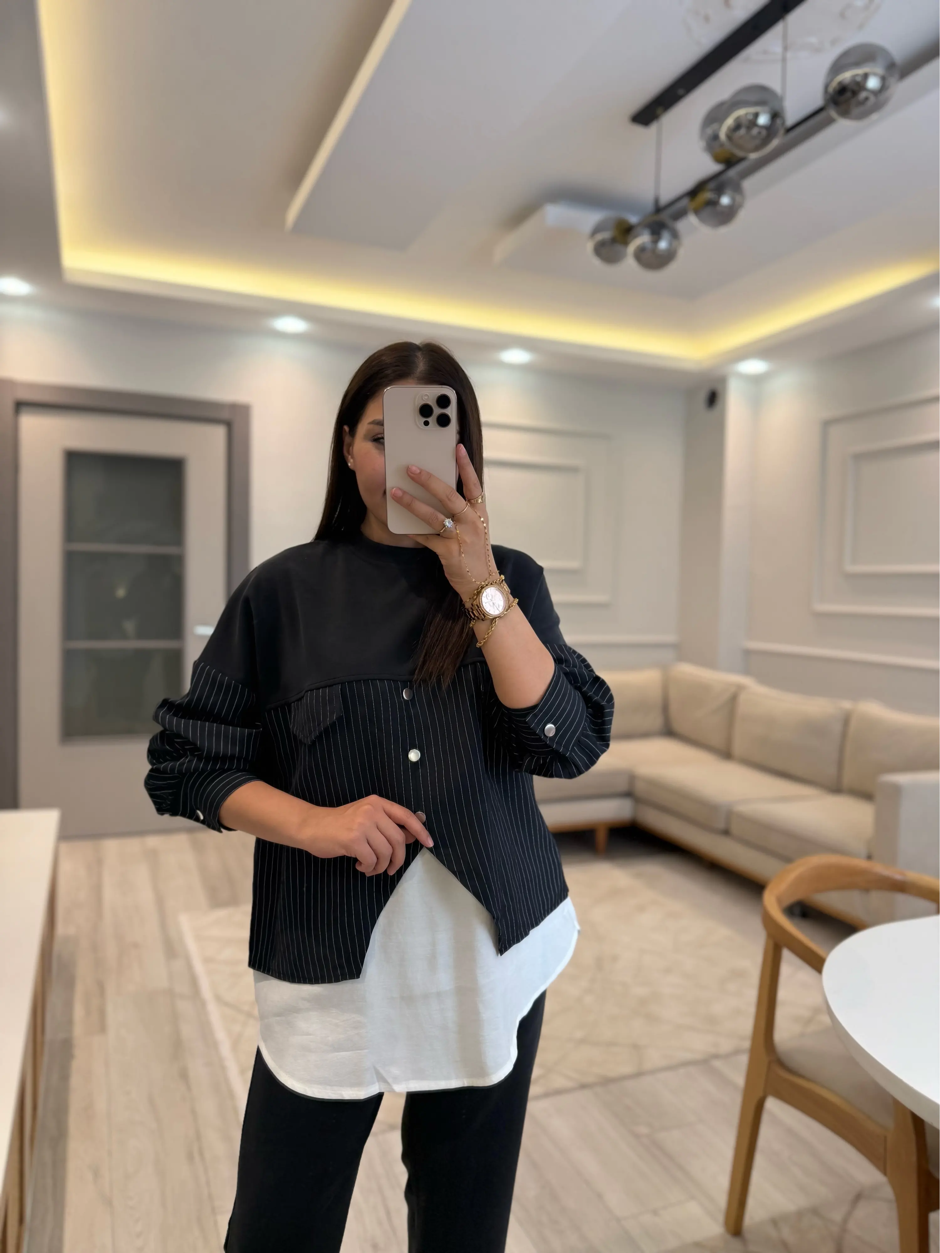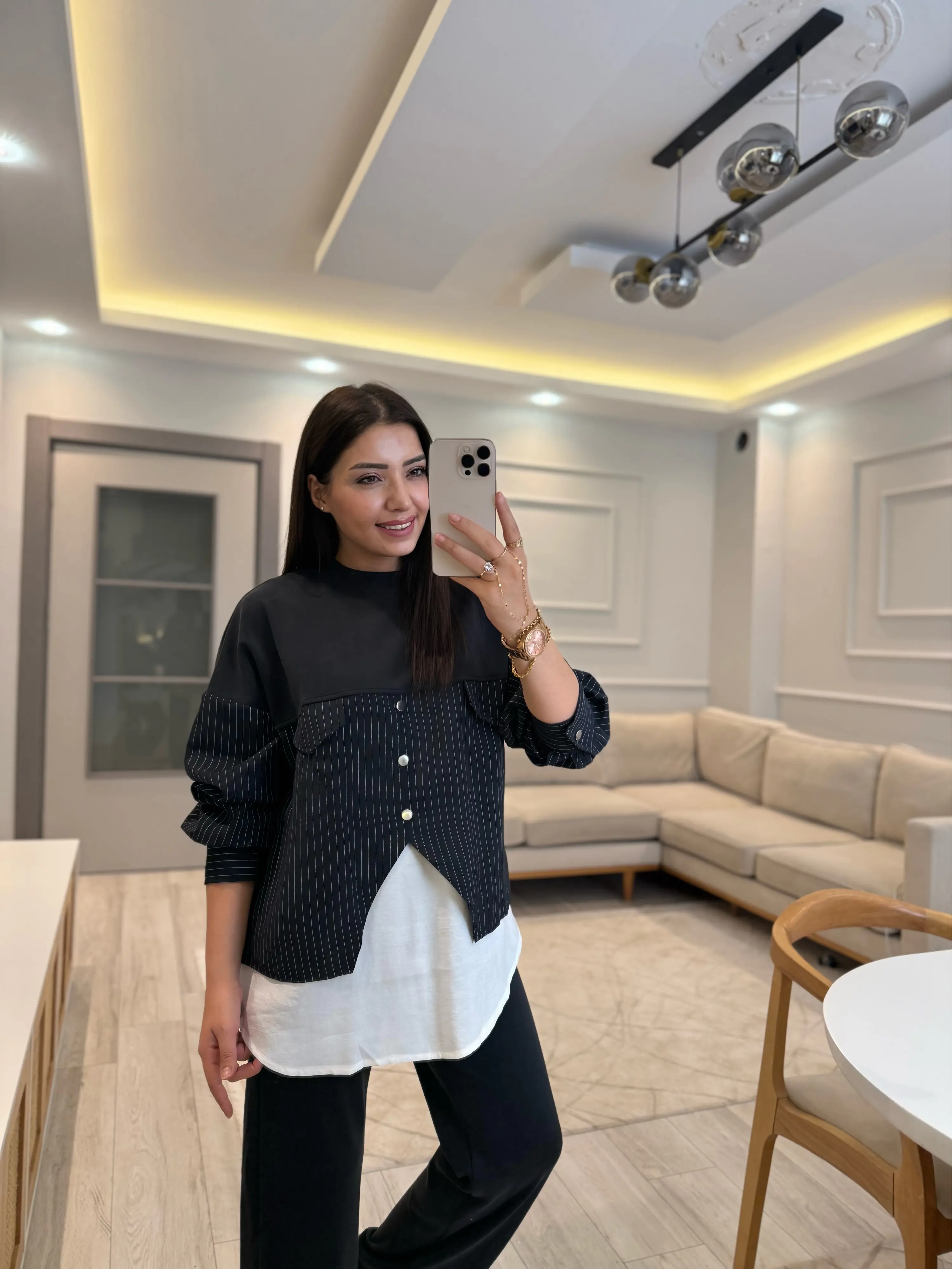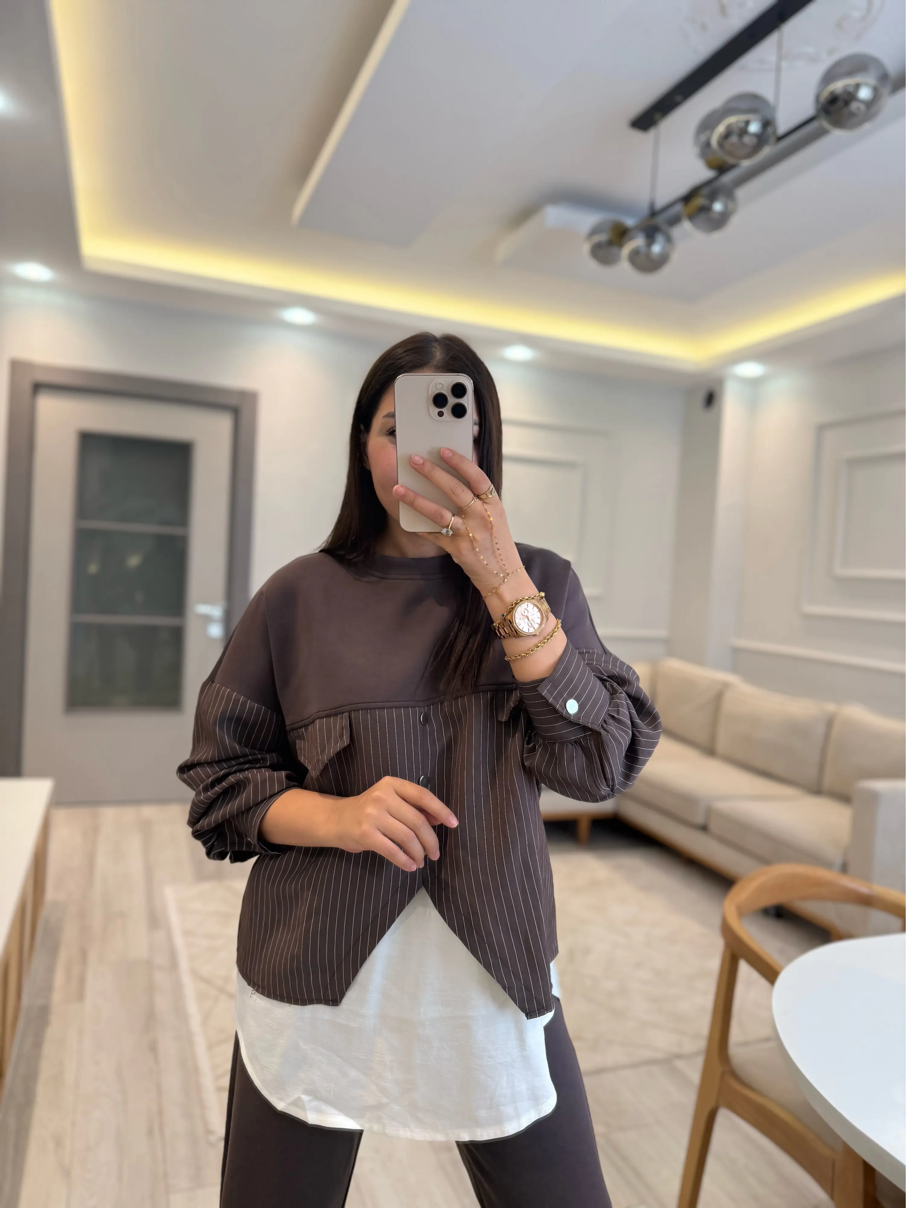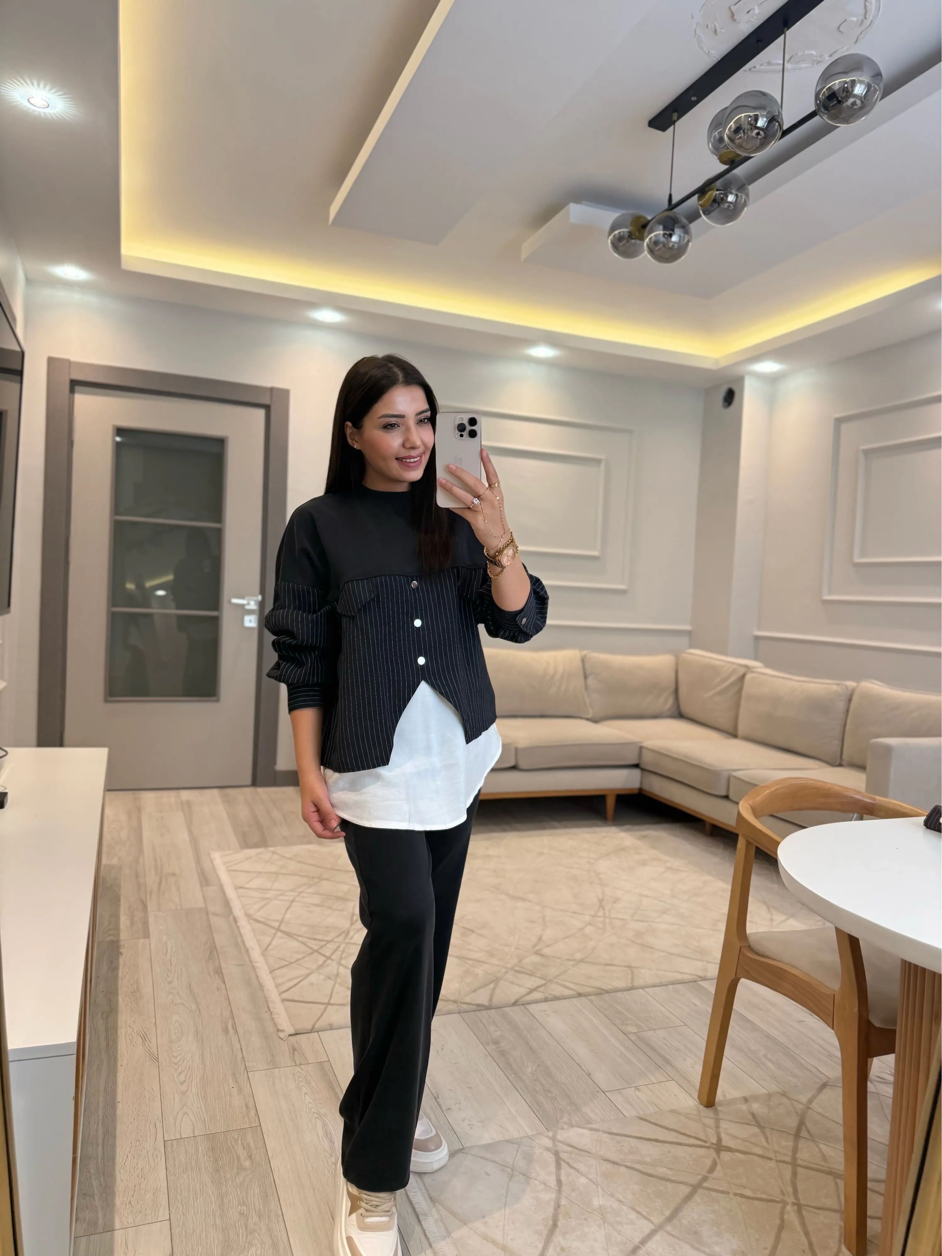 Modal Çizgili Gömlek Detaylı Takım