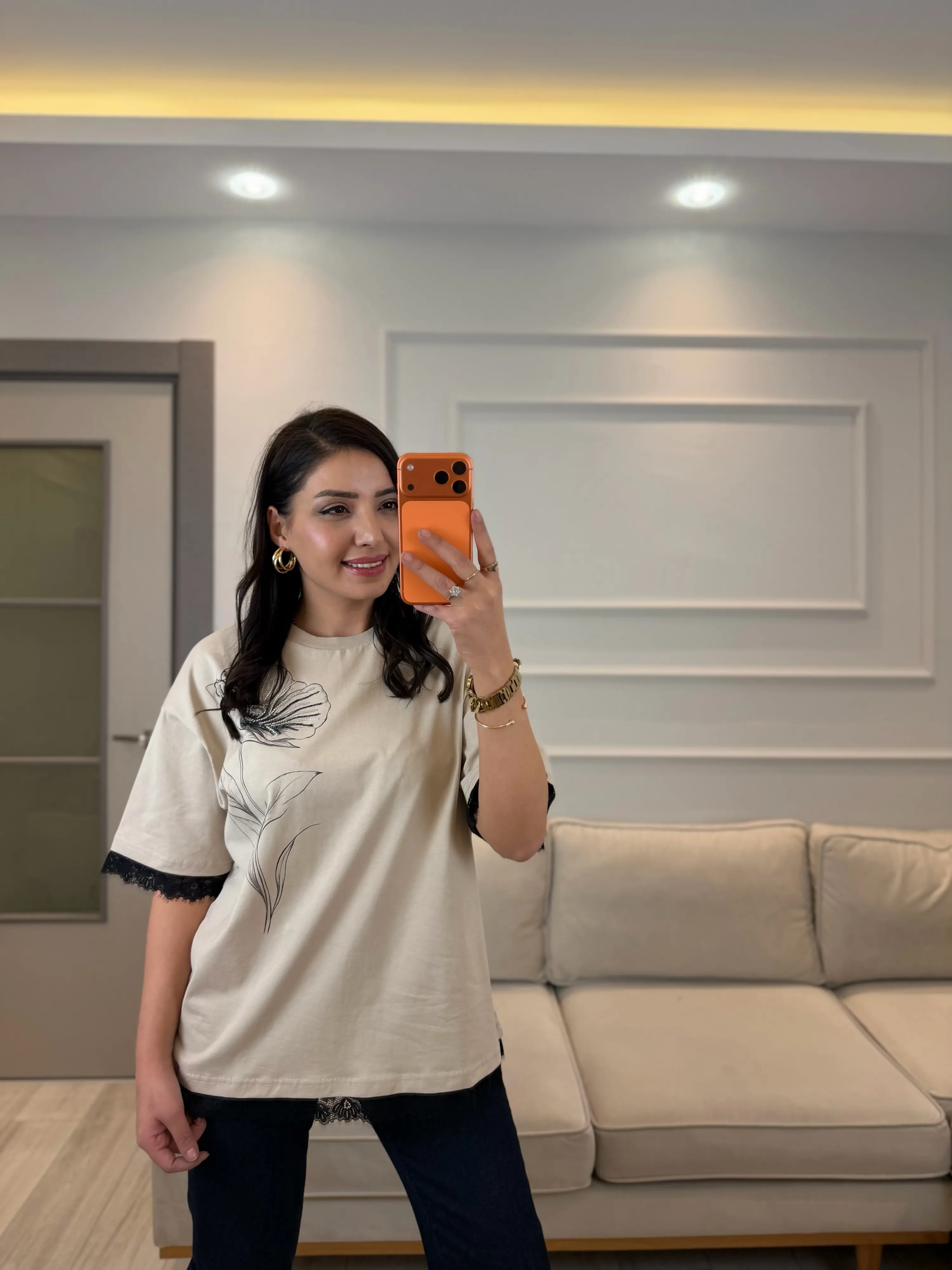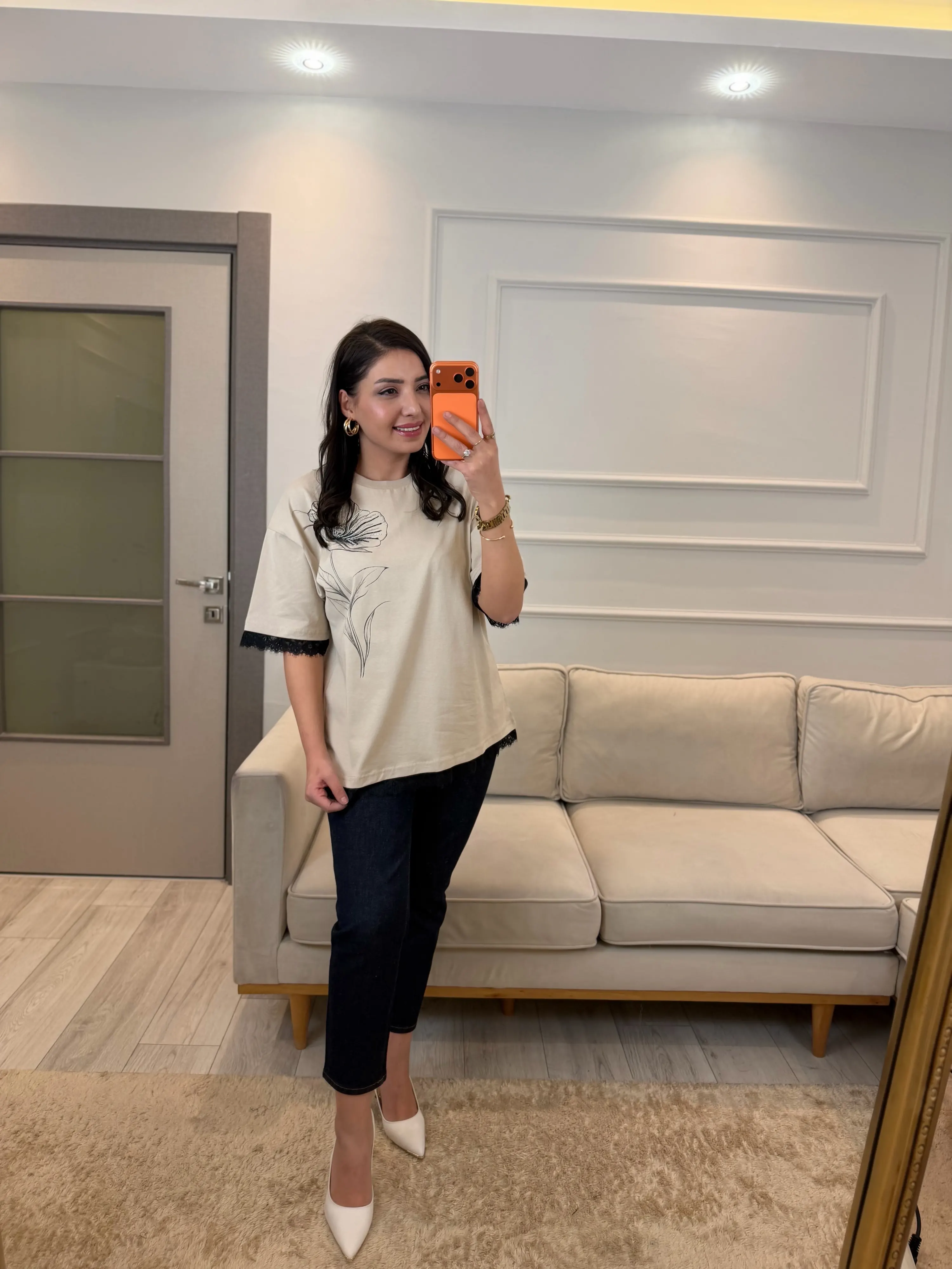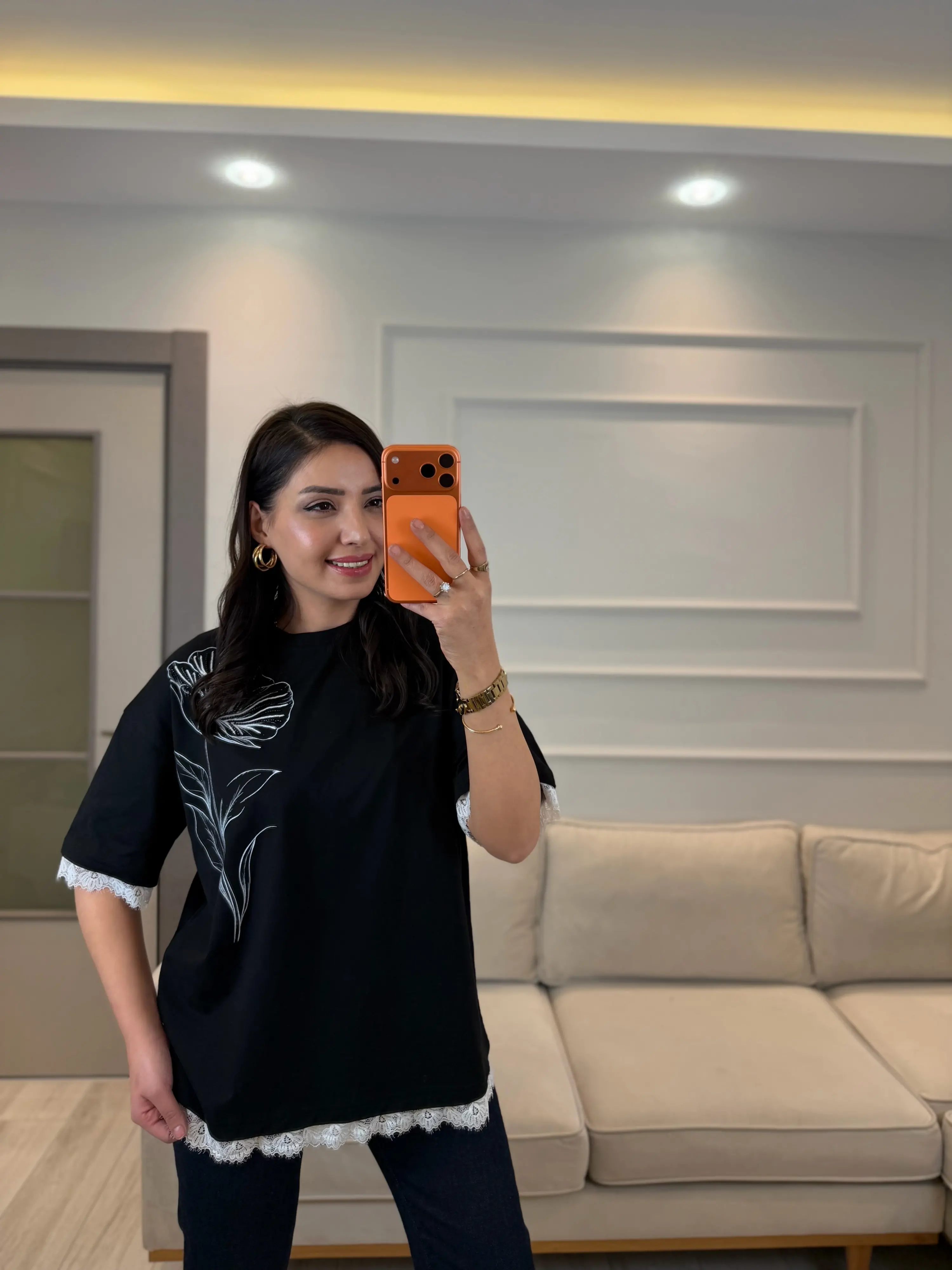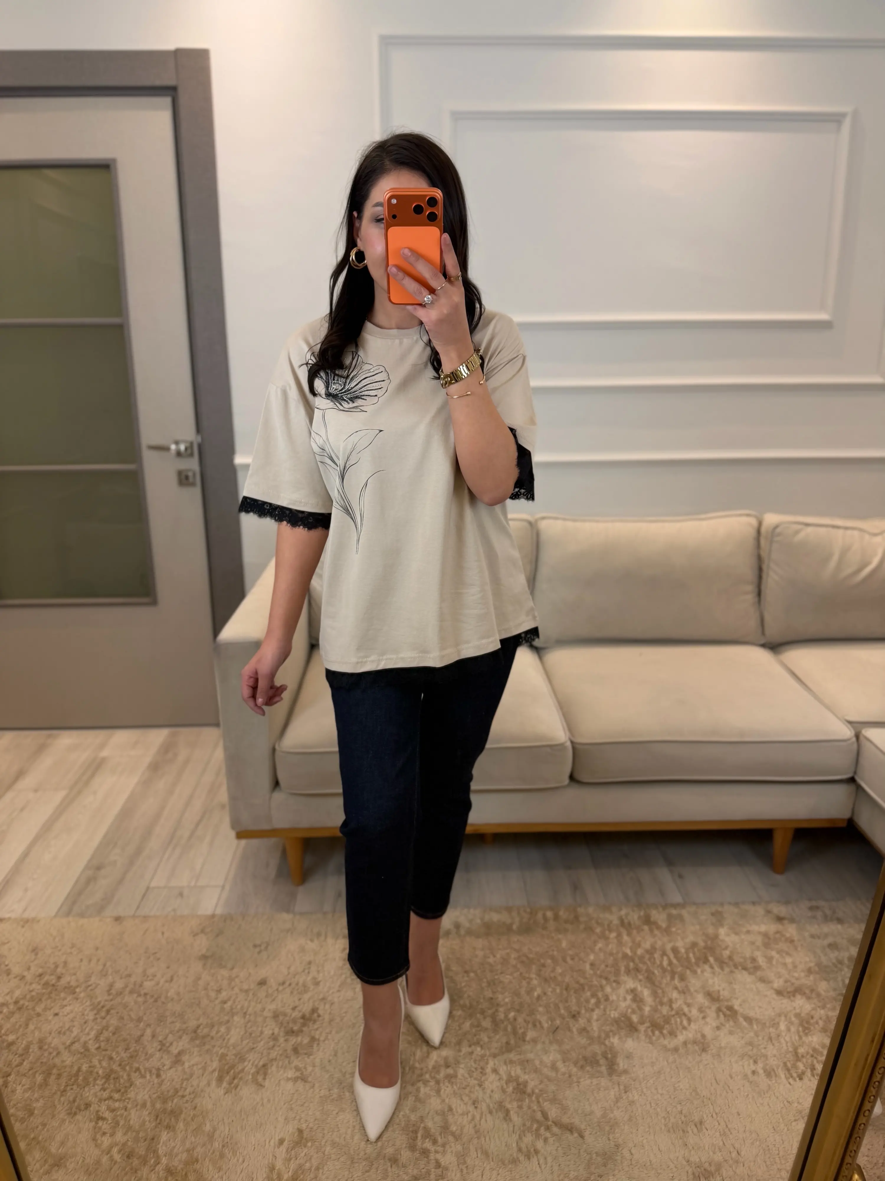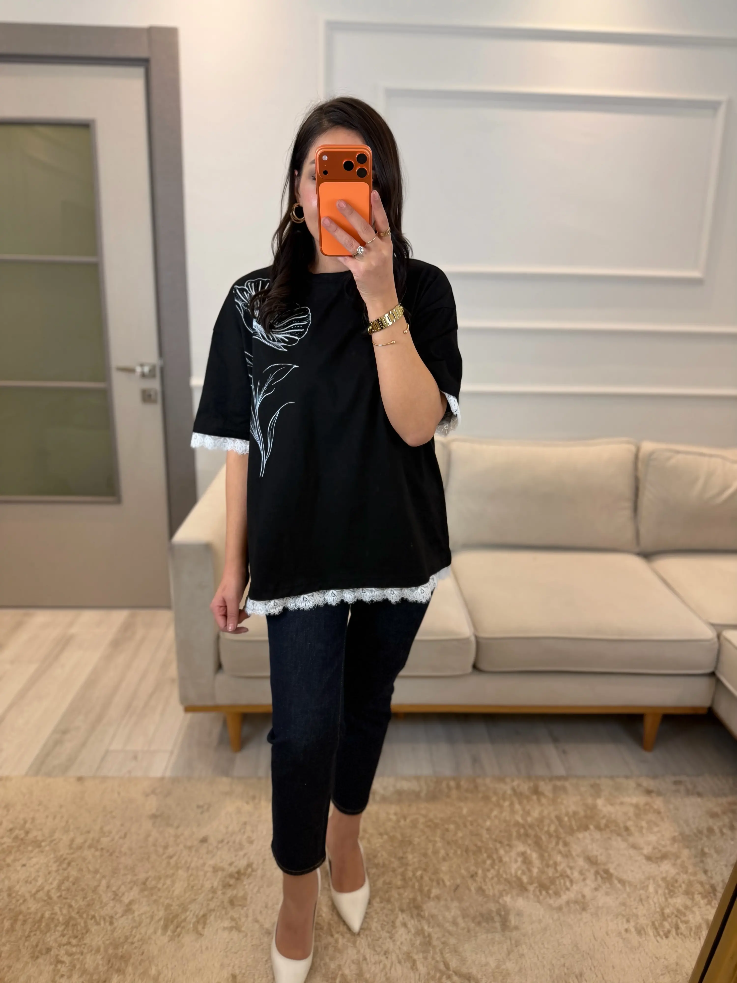 Nofel Dantel Çiçek Detaylı T-Shirt