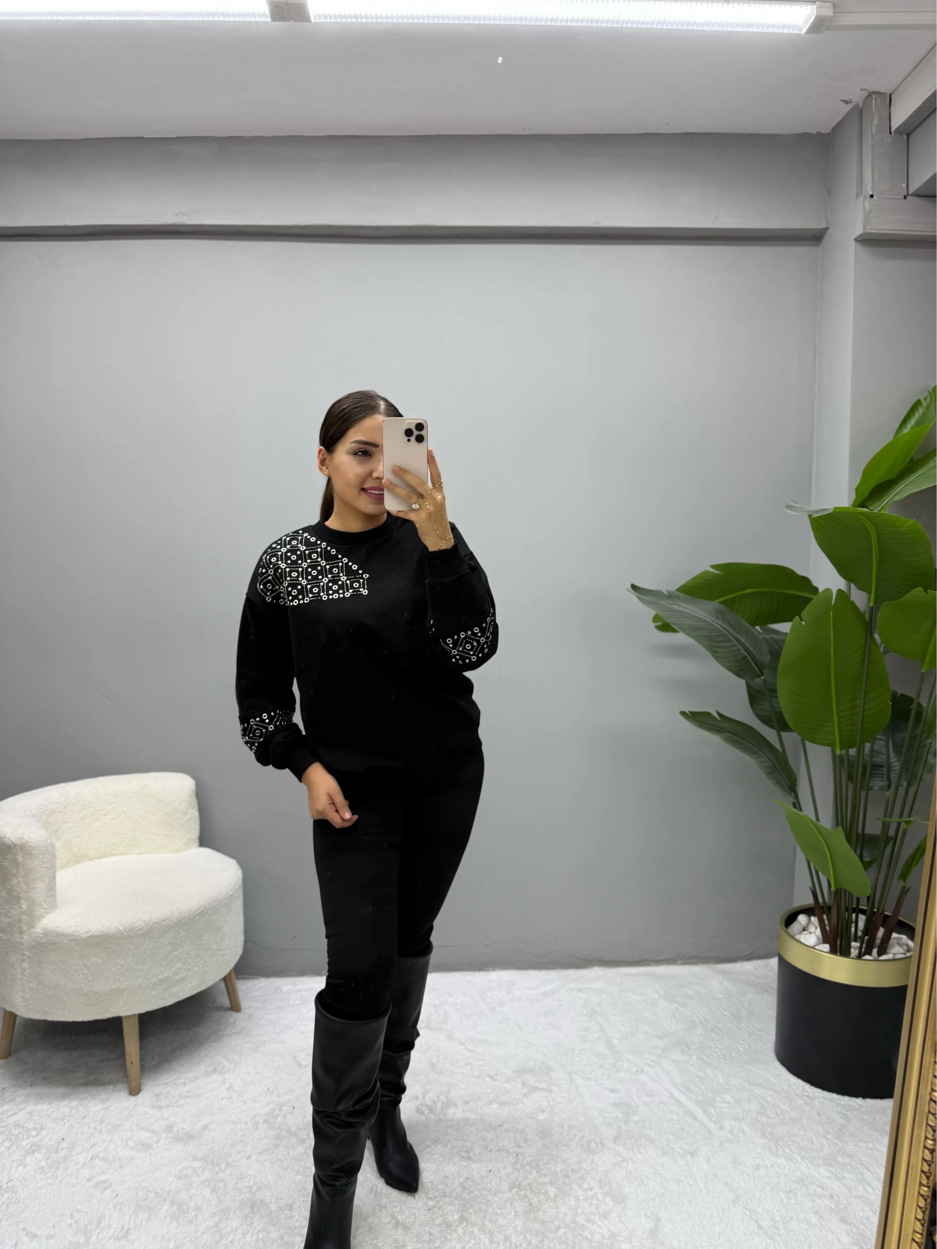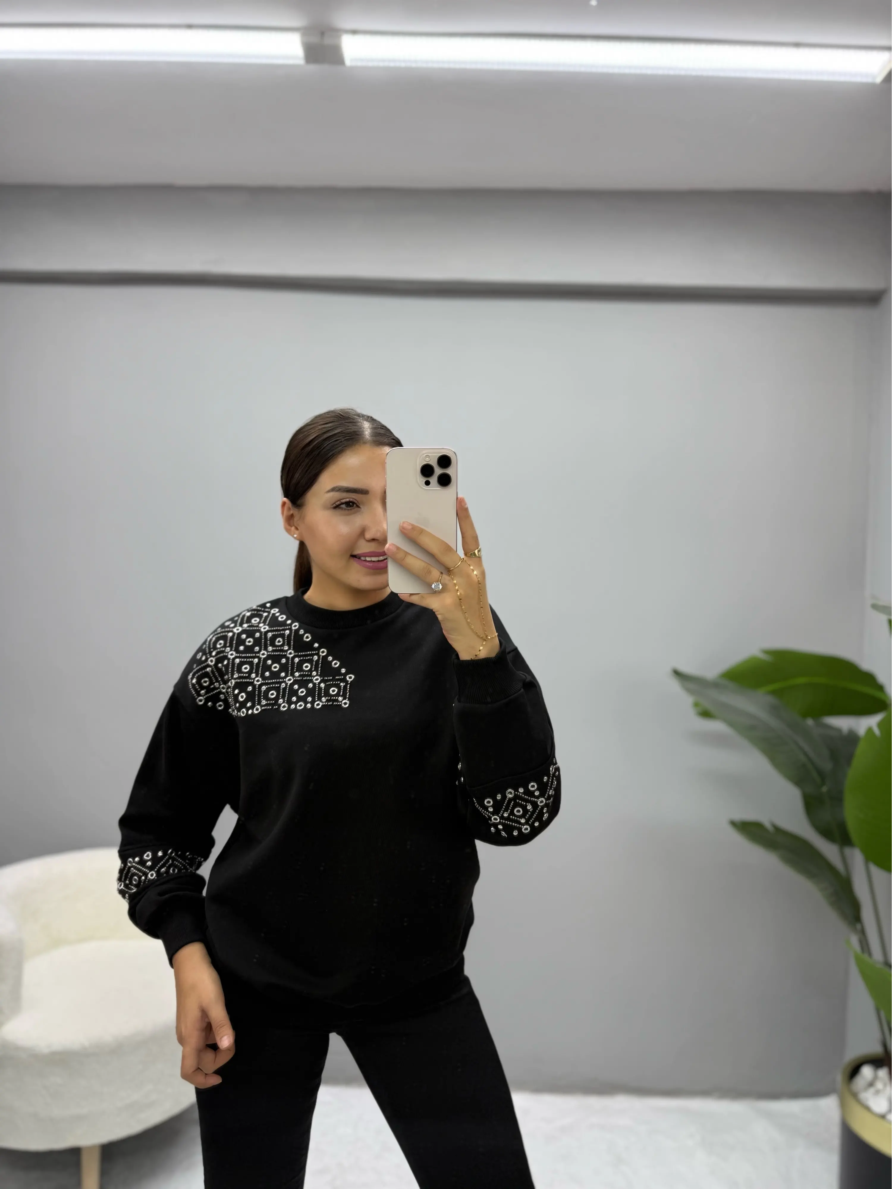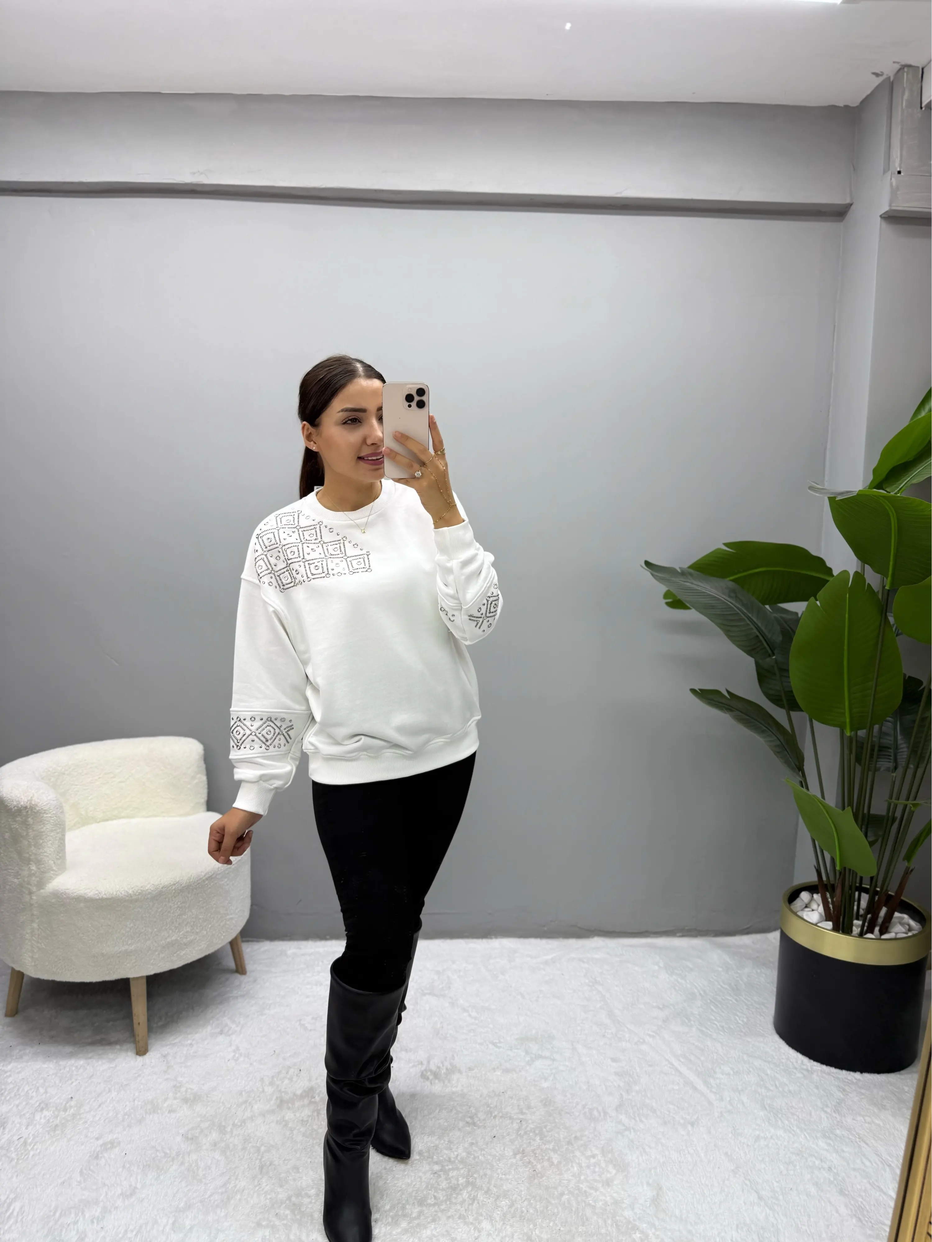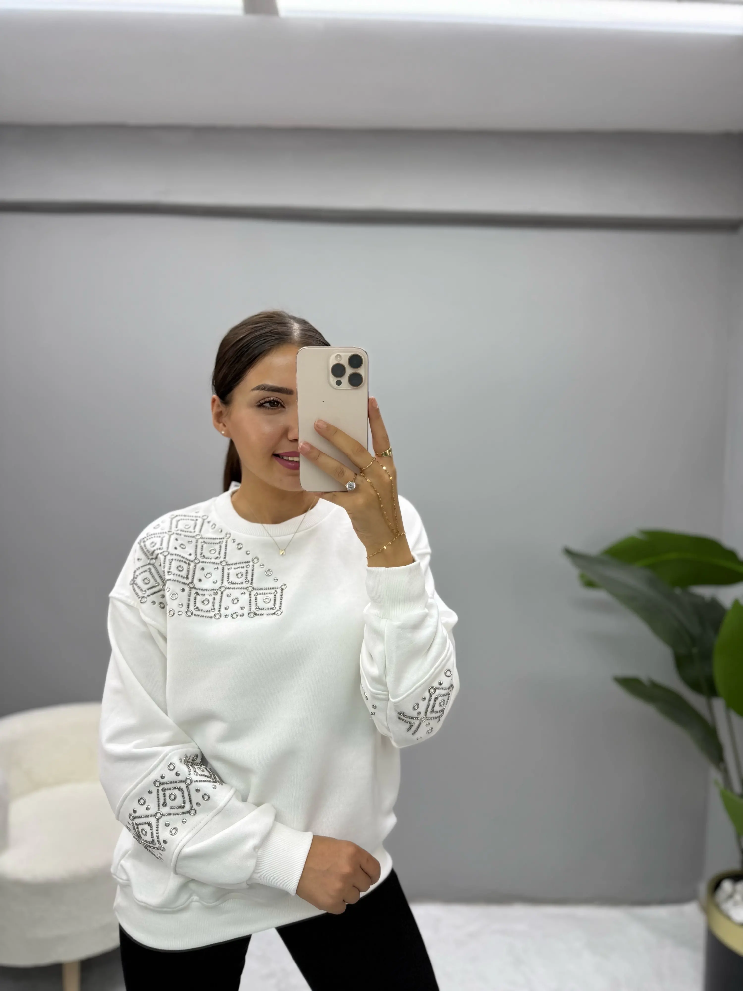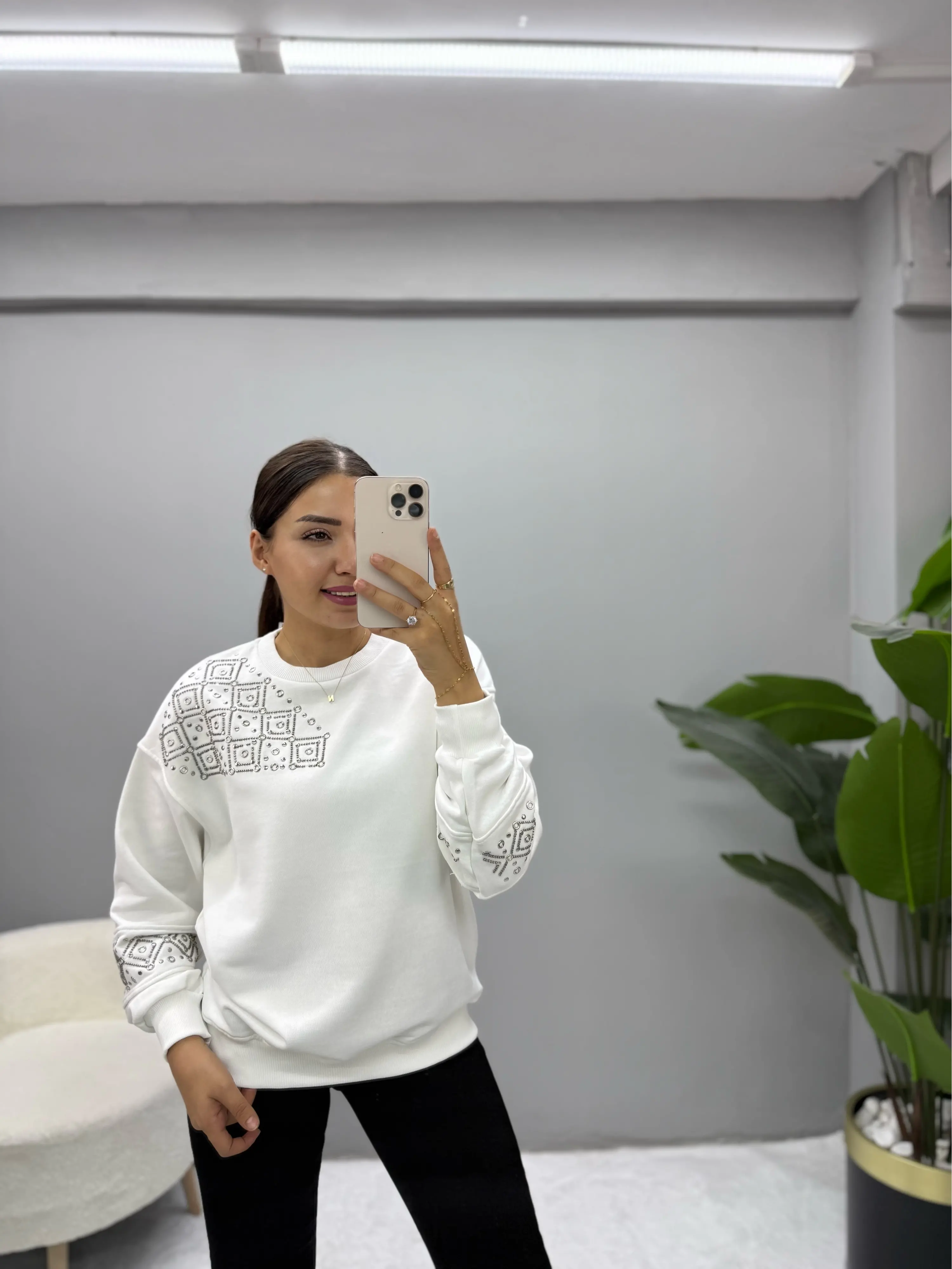 Omuz Ve Kol İşleme Detaylı Sweatshirt