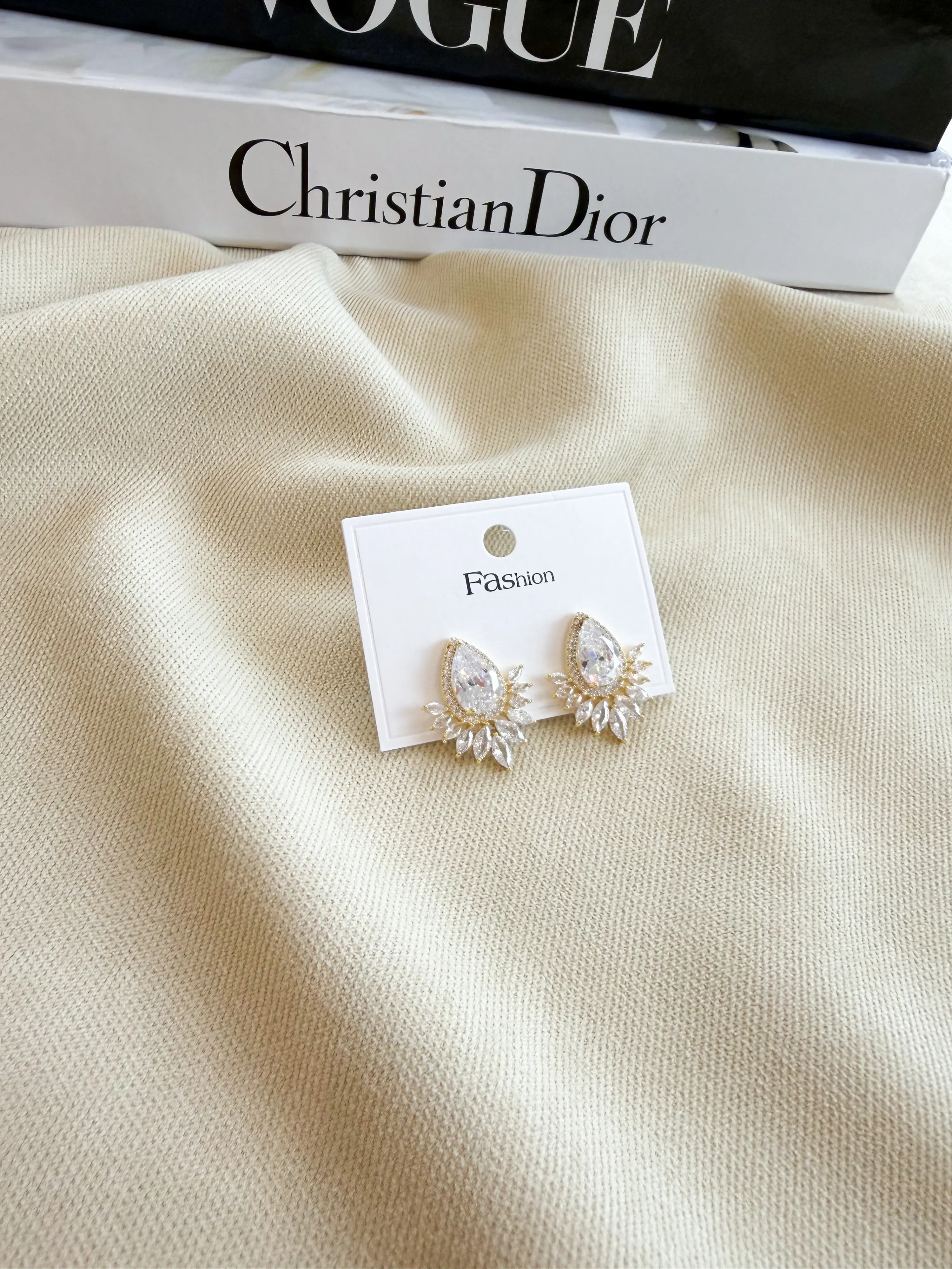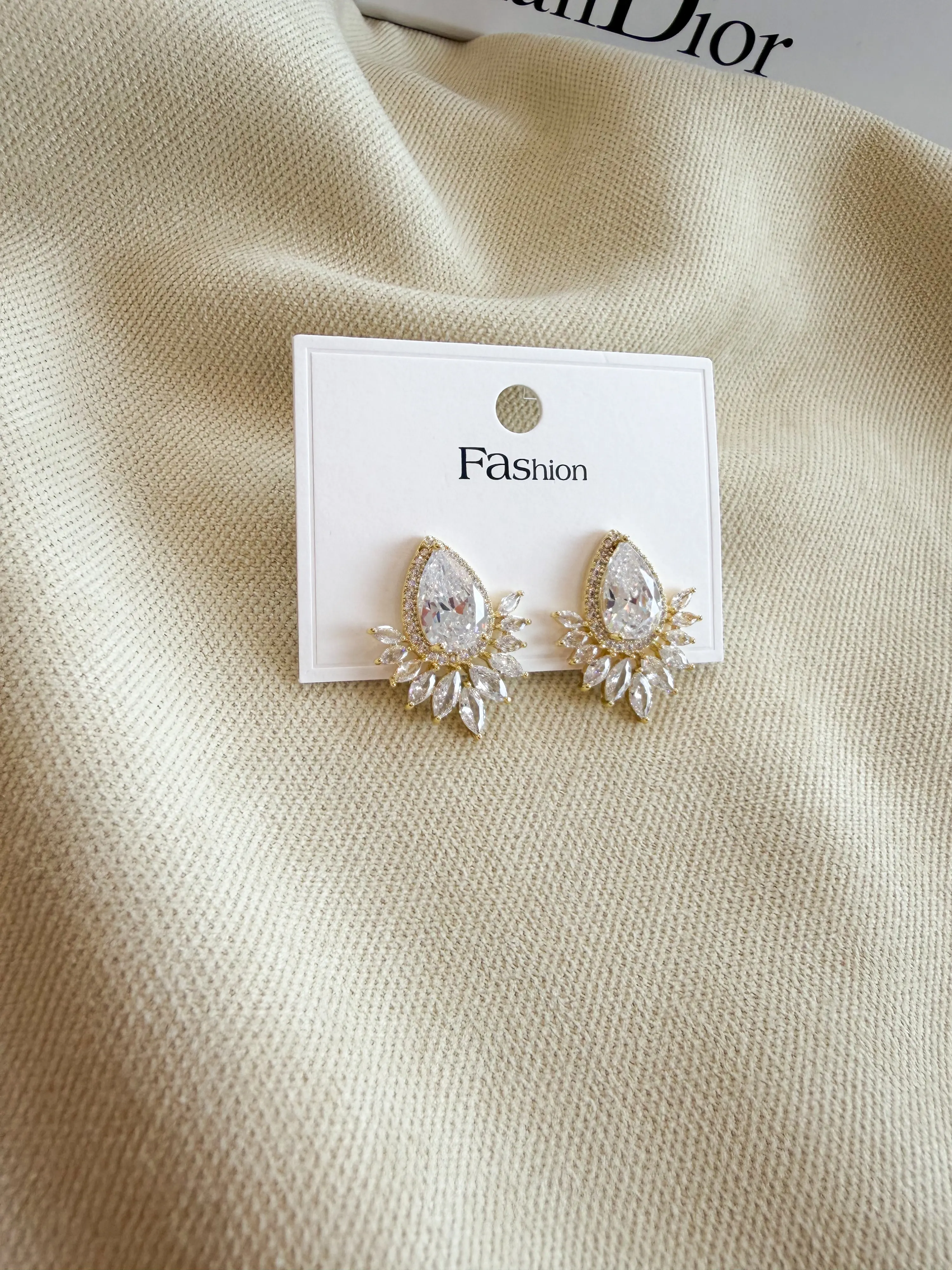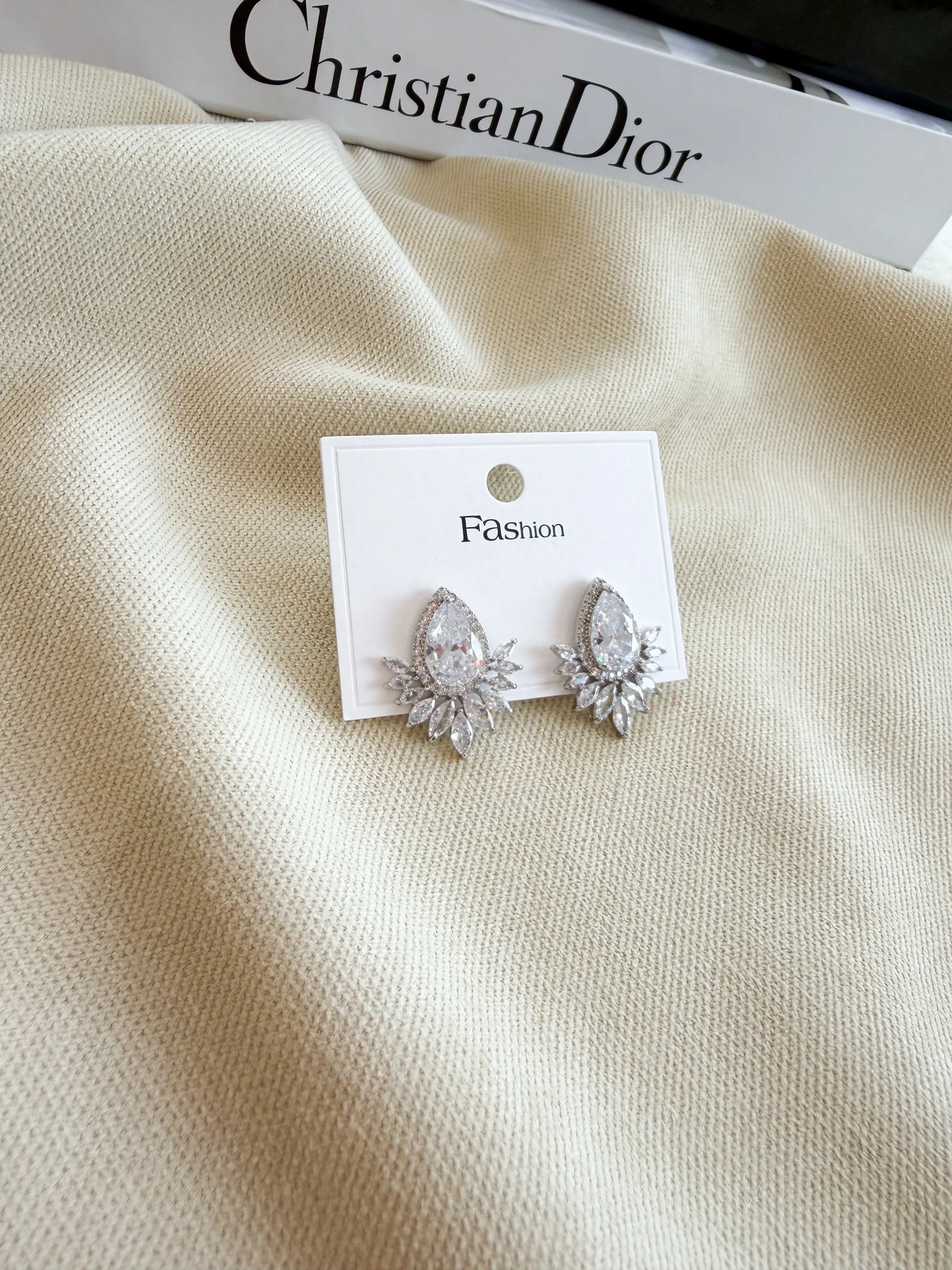 Yelpaze Model Zirkon Taşlı Çelik Küpe