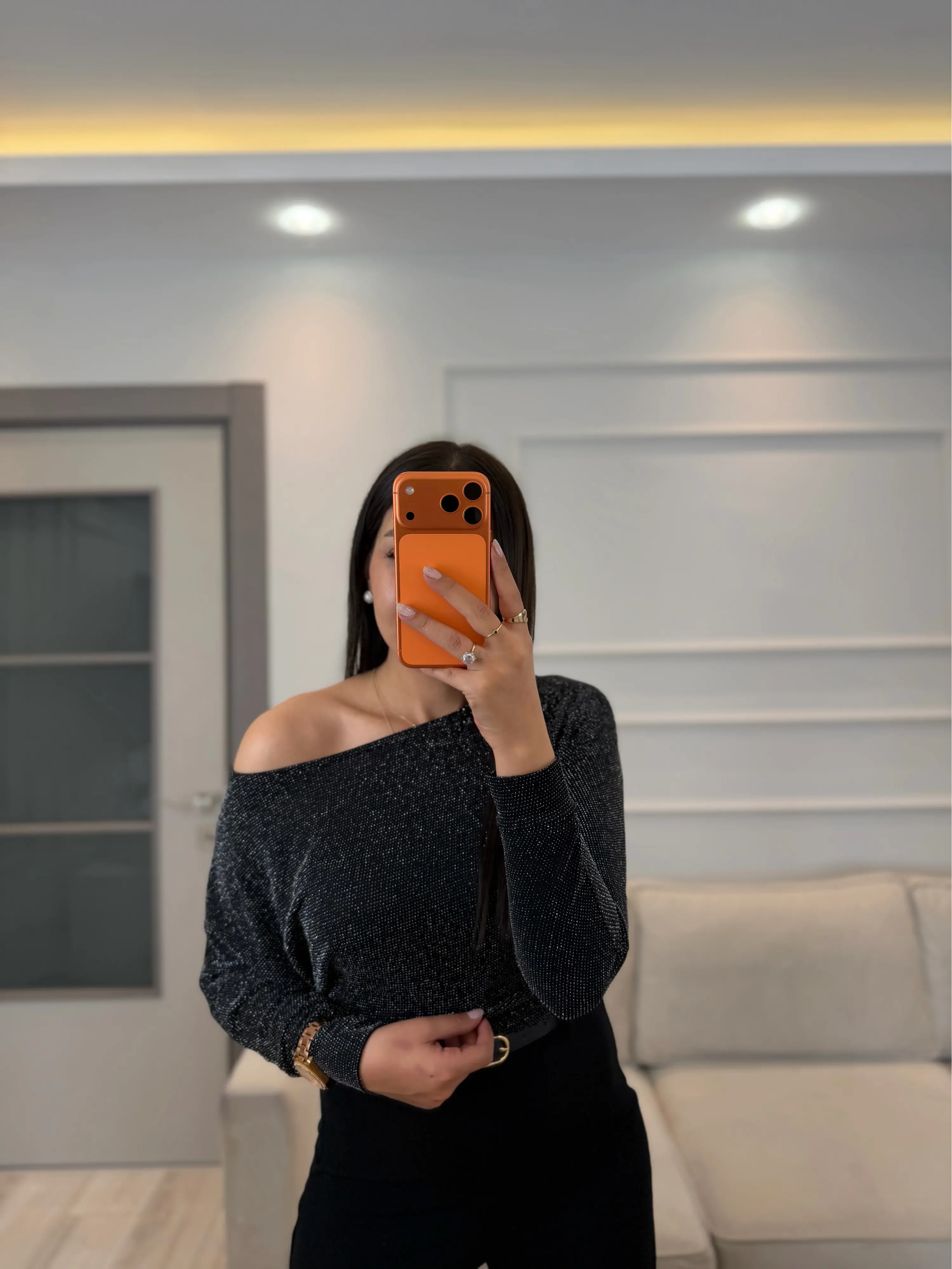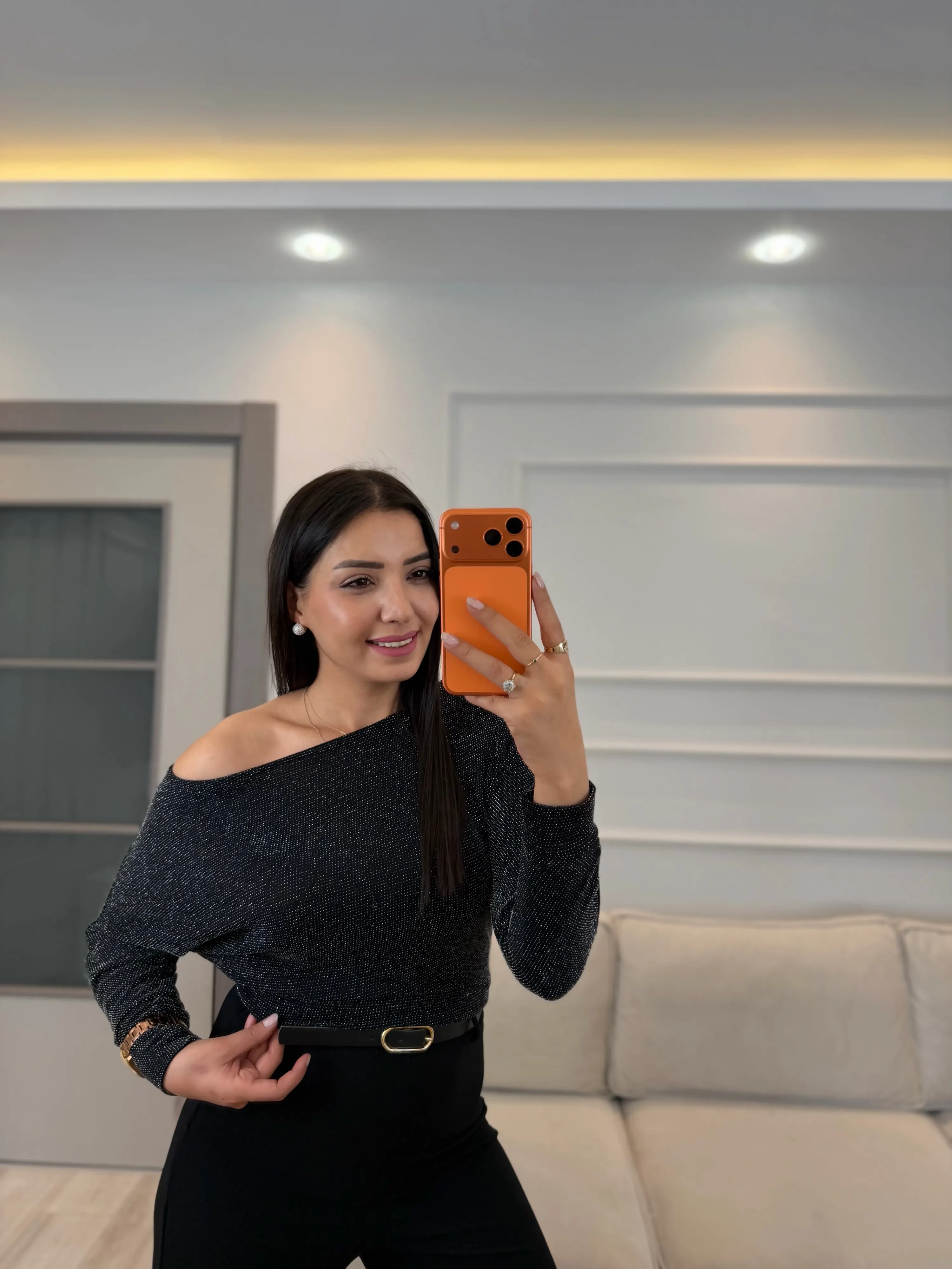Simli Kayık Yaka Bluz