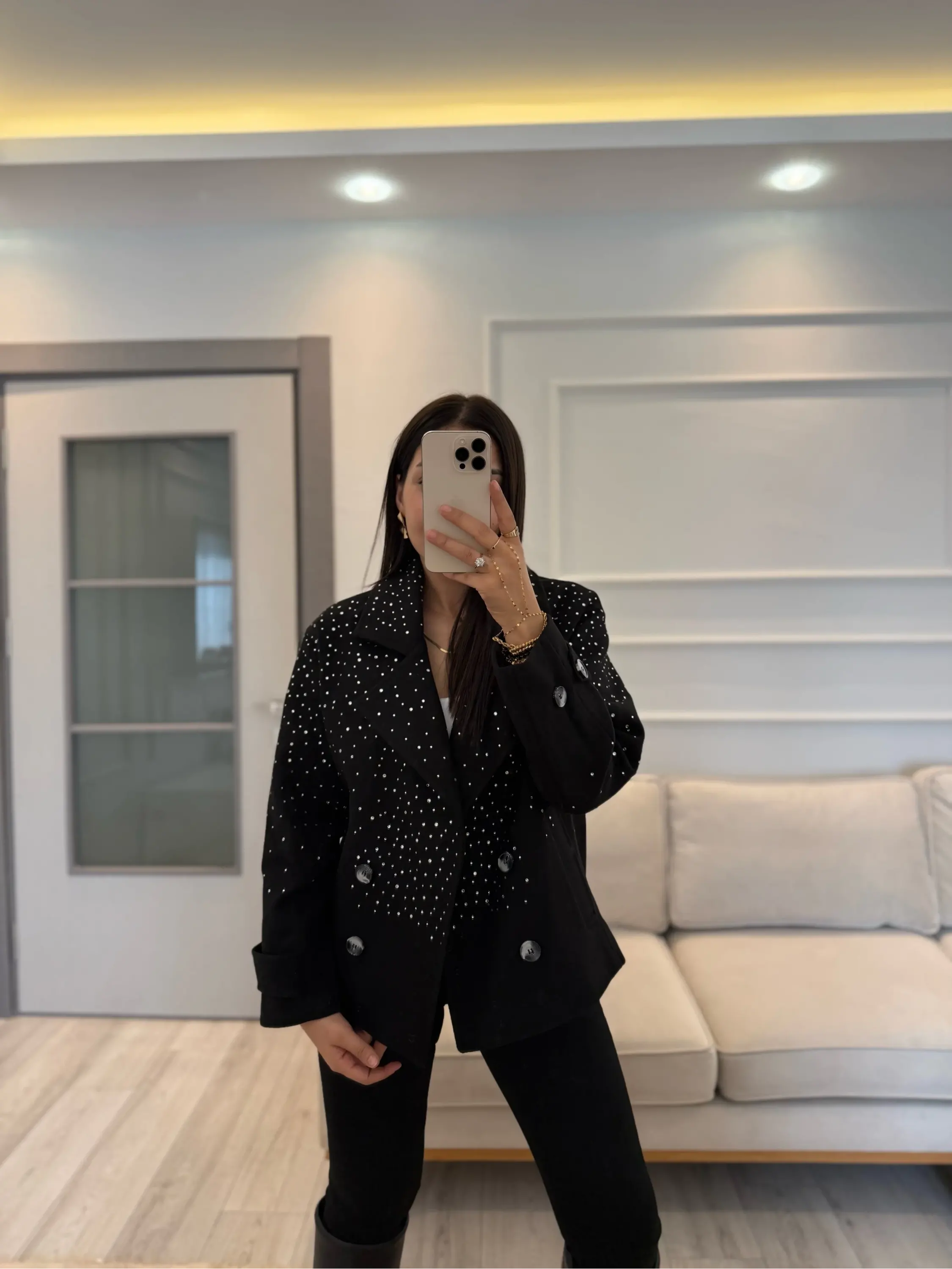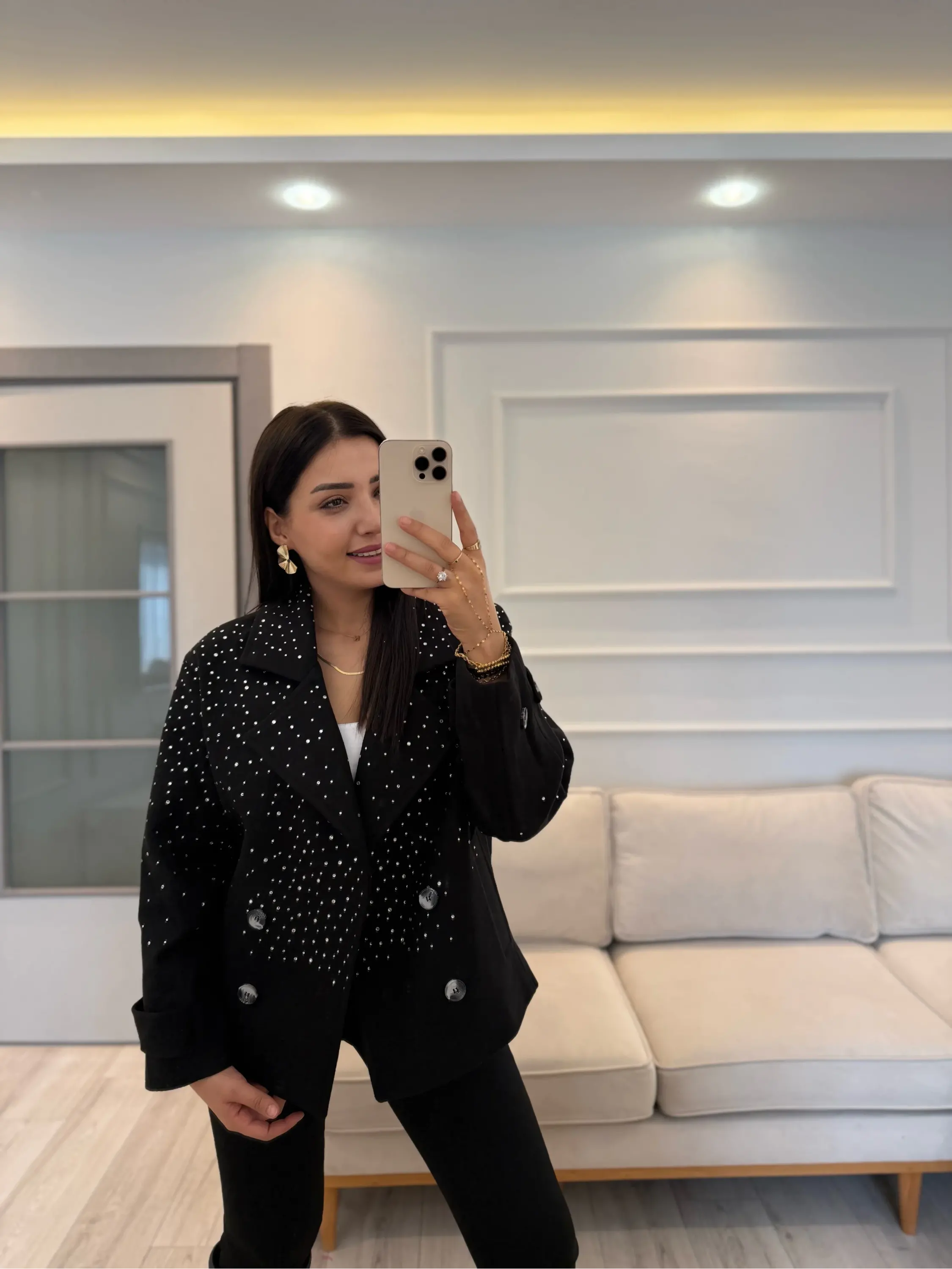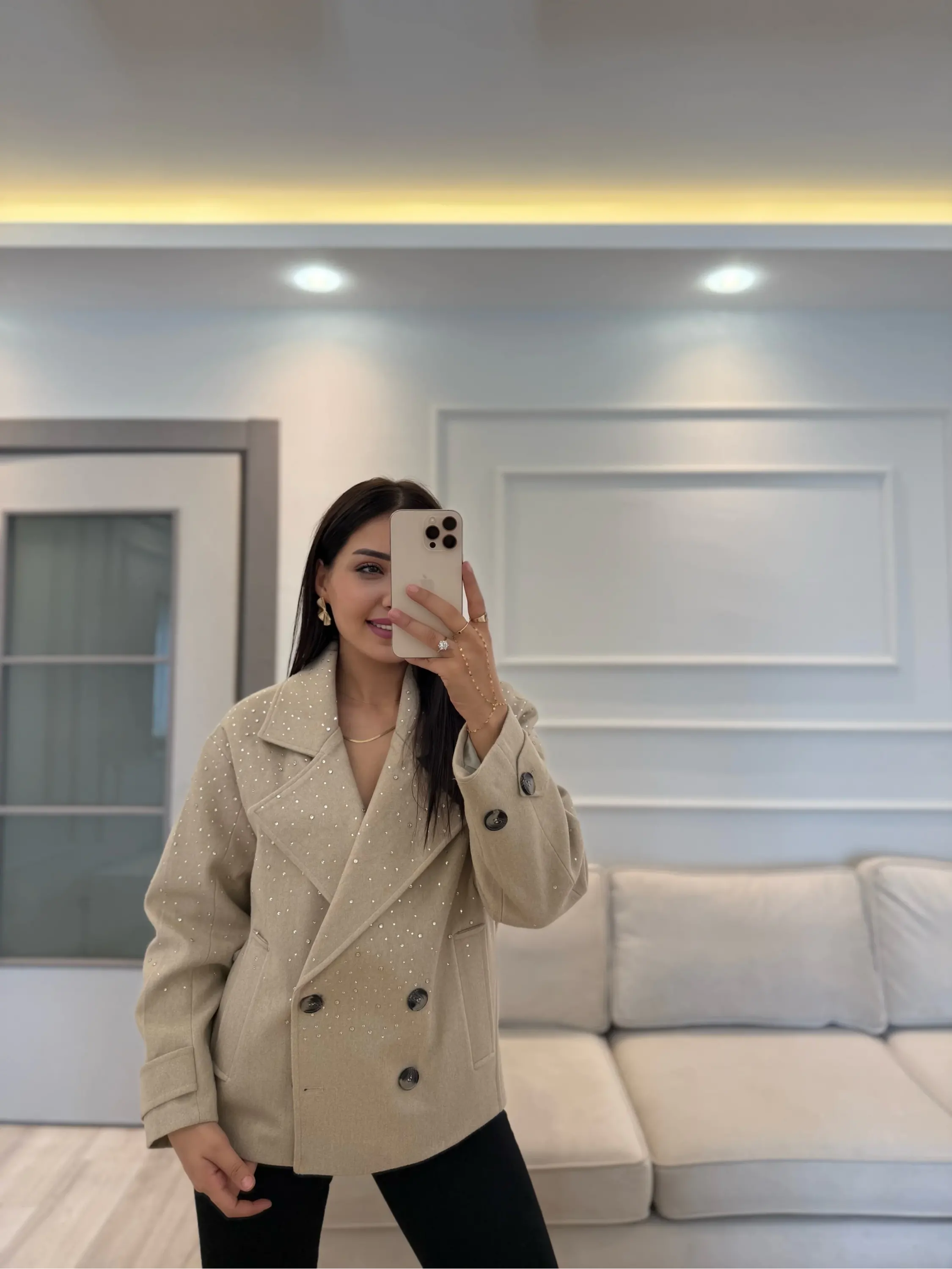 Tasarım Taşlı Kaşe Kaban