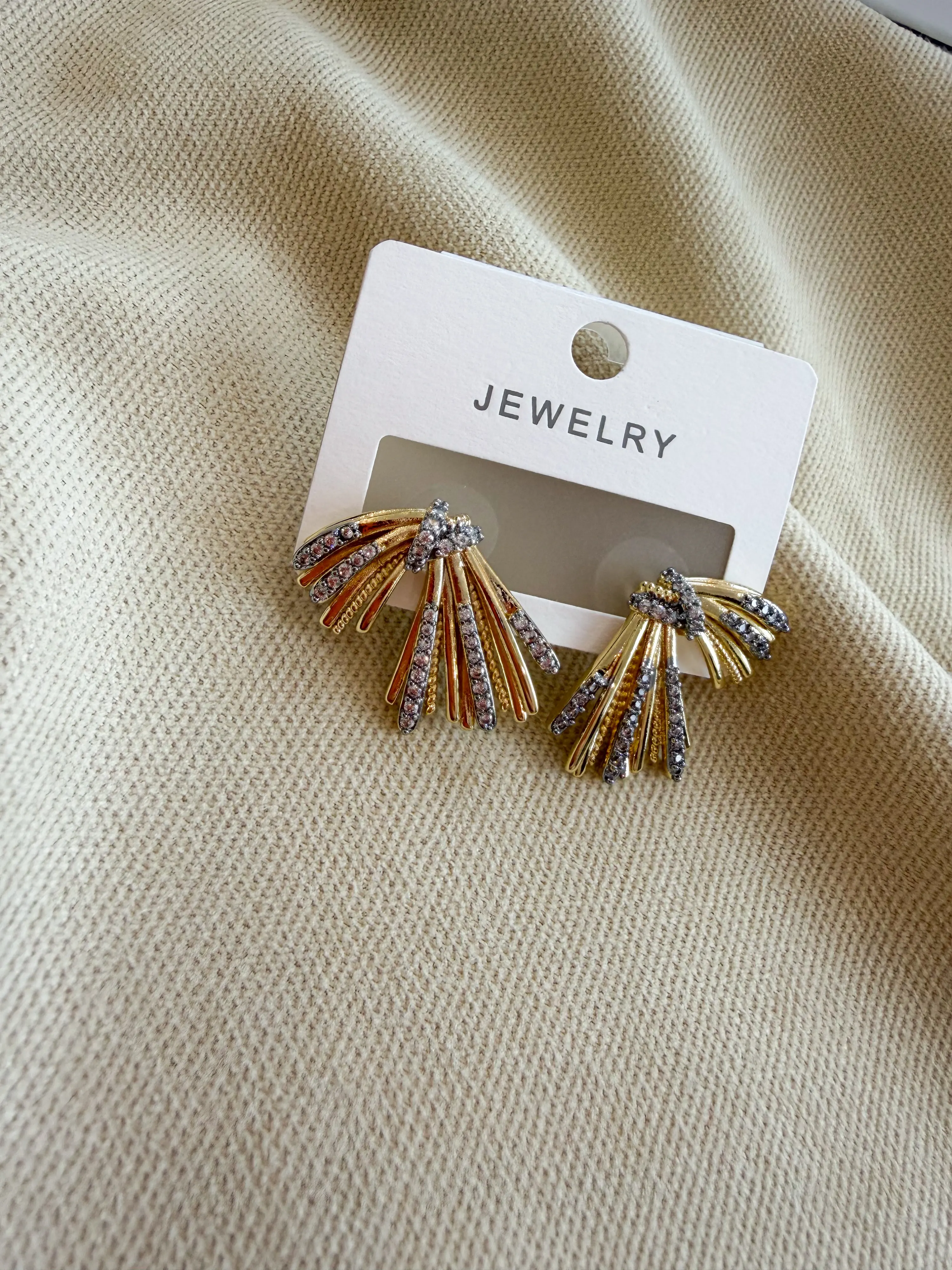 Yelpaze Model Zirkon Taşlı Çelik Küpe