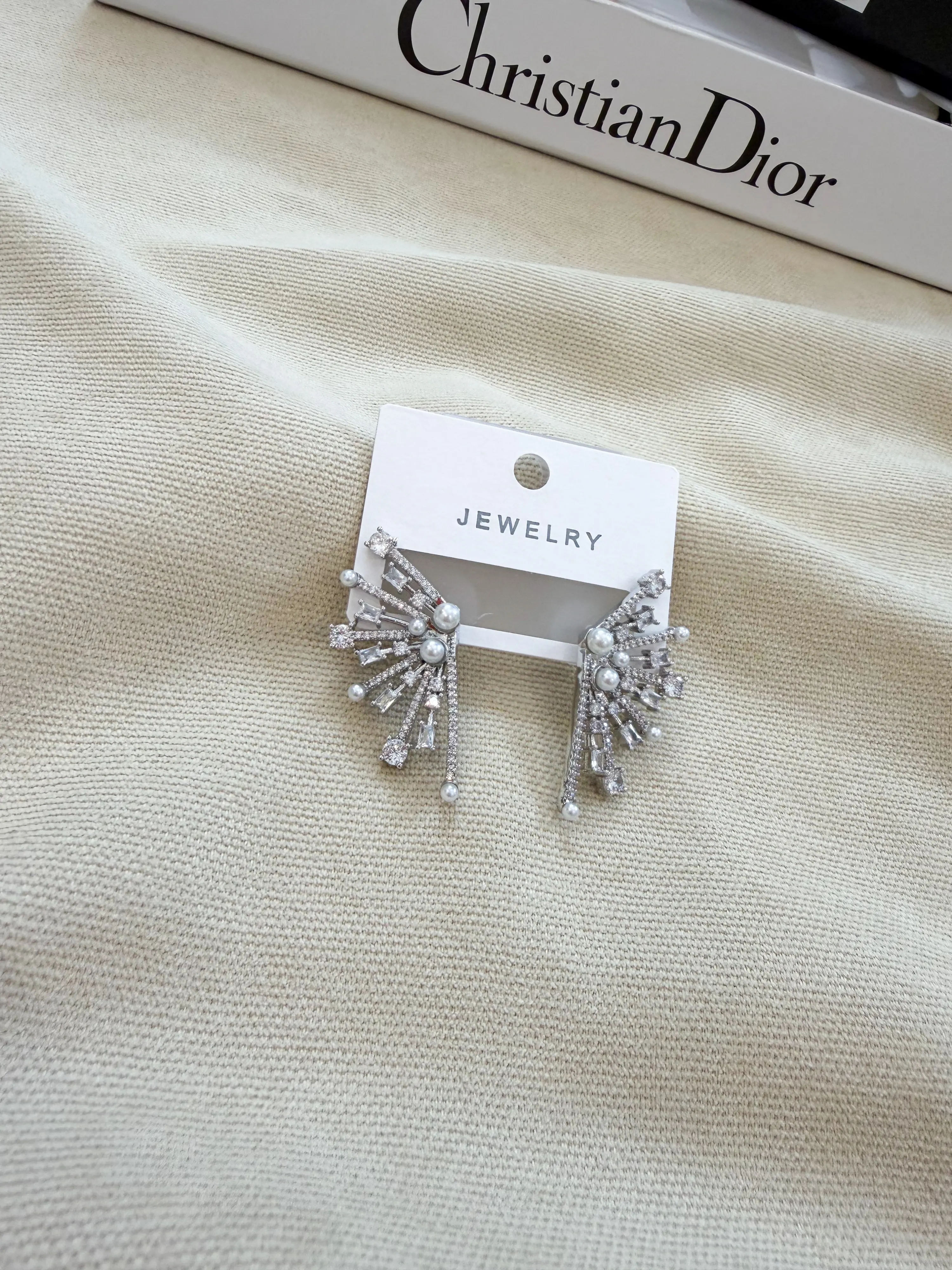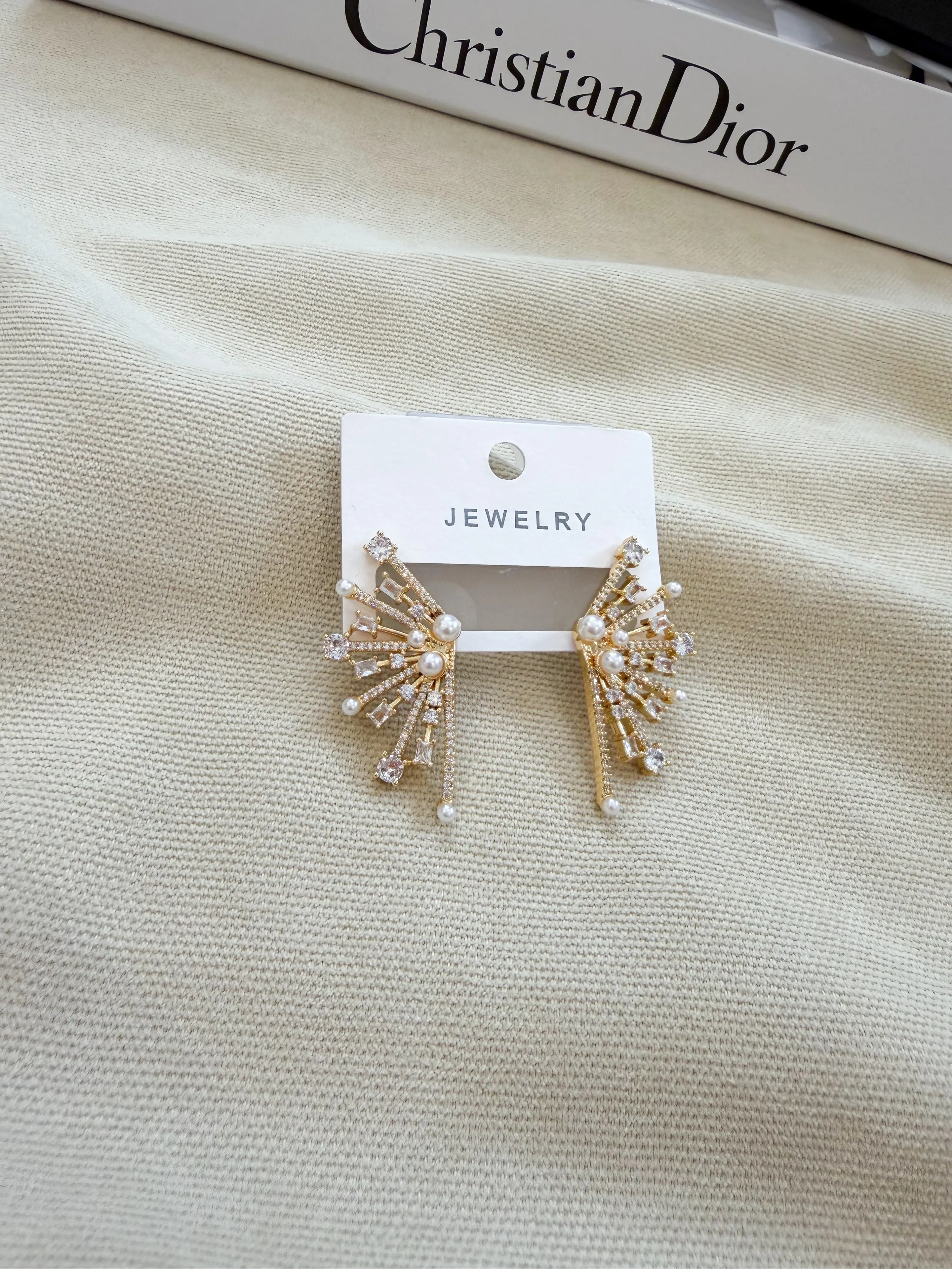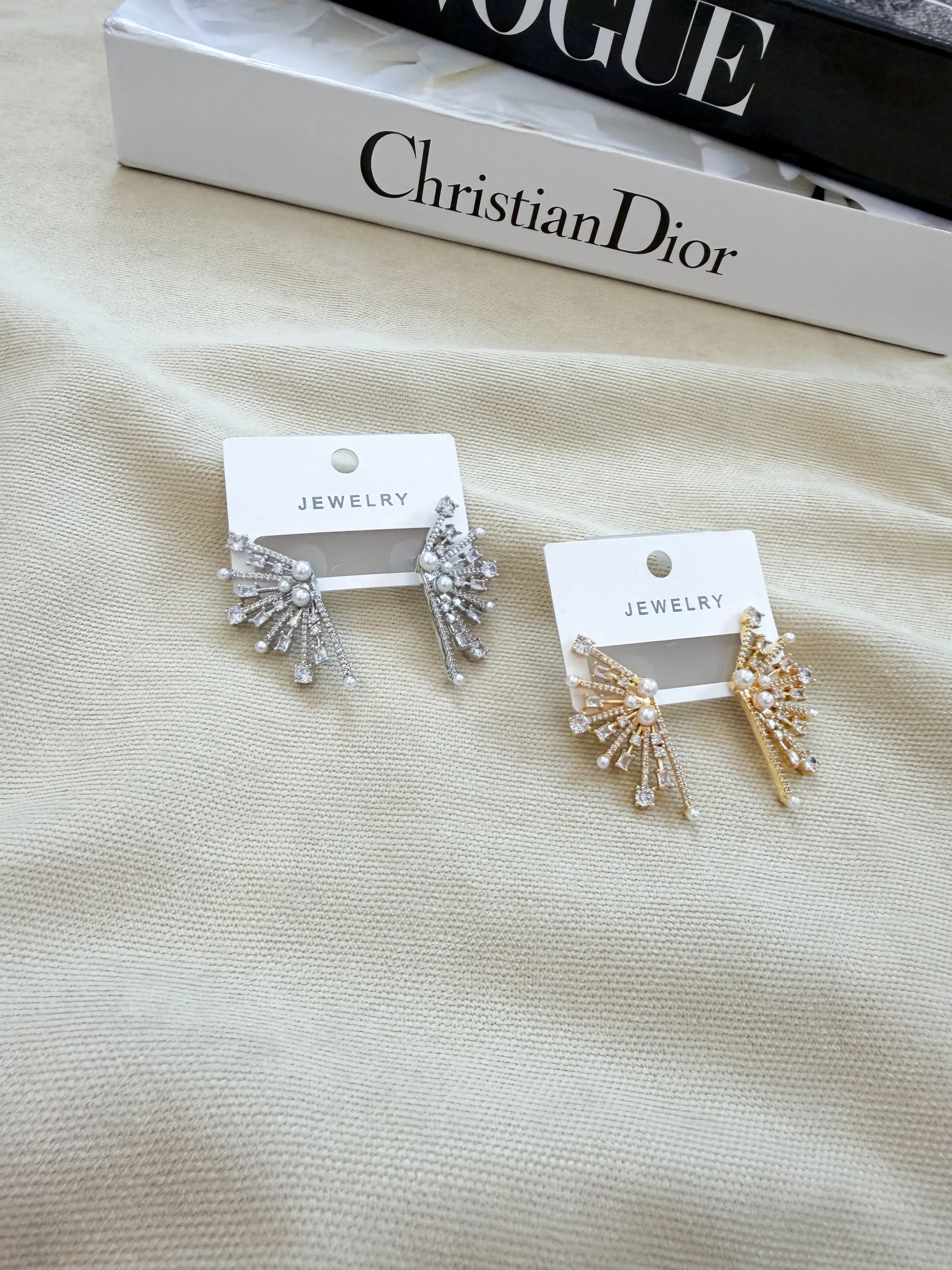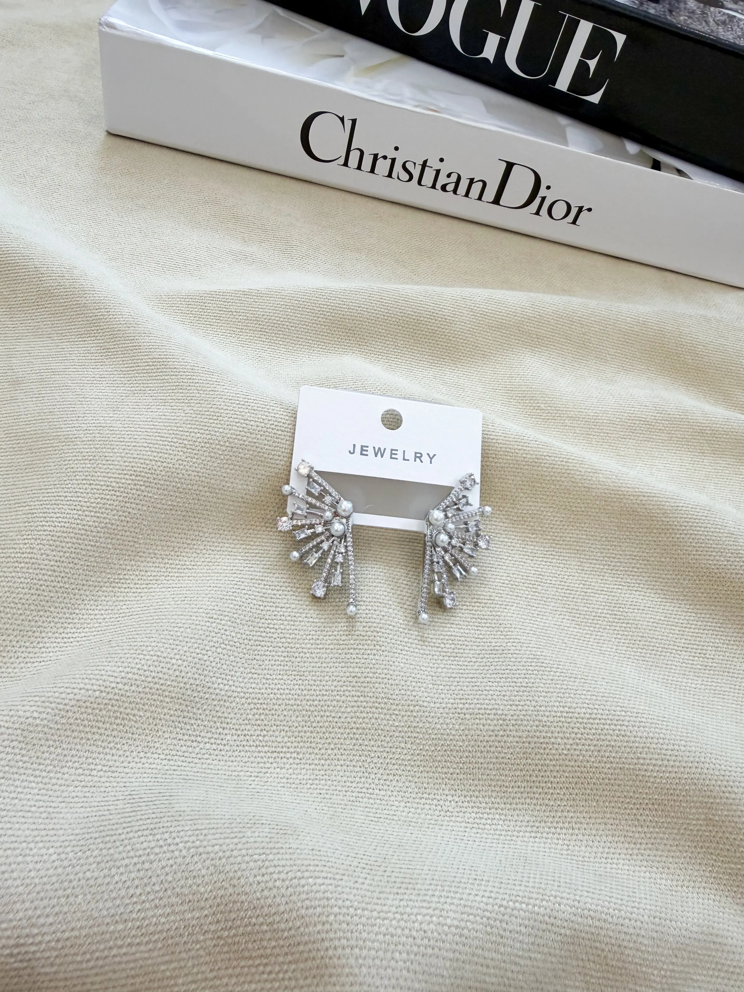 Yelpaze Model Zirkon Taşlı Çelik Küpe